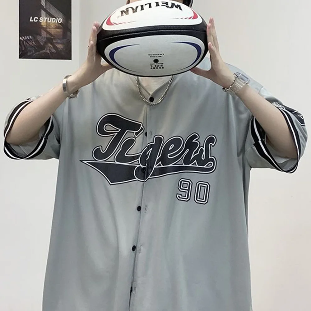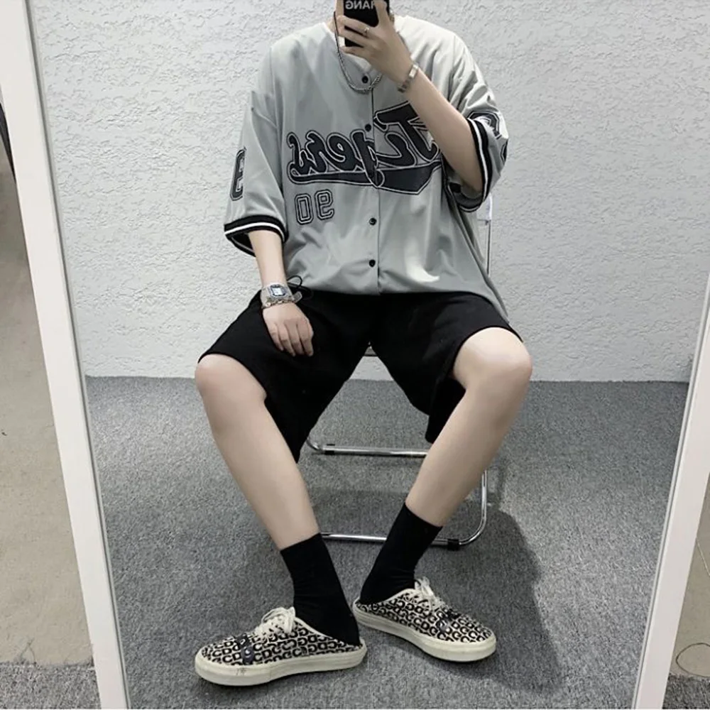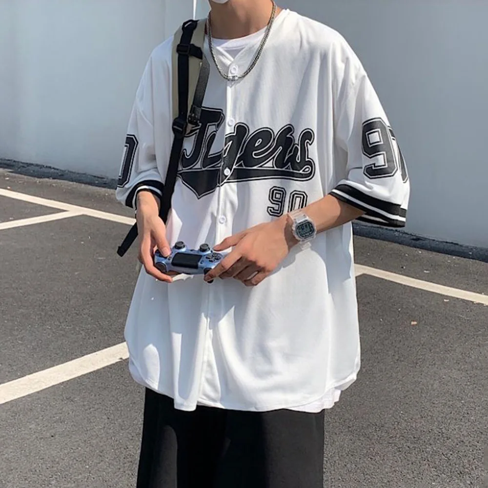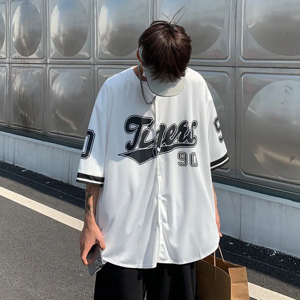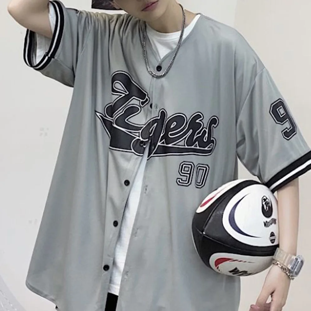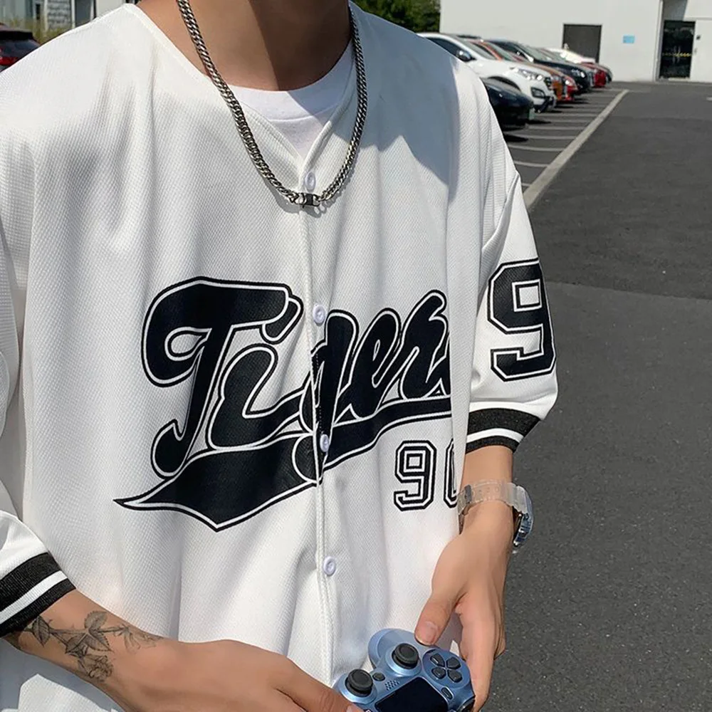 WIAOFELLAS  -  Jersey Shirt Mens West Coast Vibrant Street American Hip-Hop Tops Baseball Short Sleeve All-Match Youthful Men's Clothing