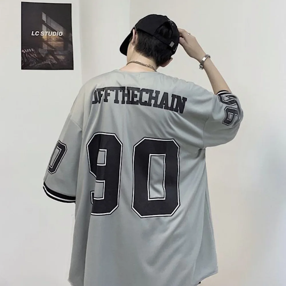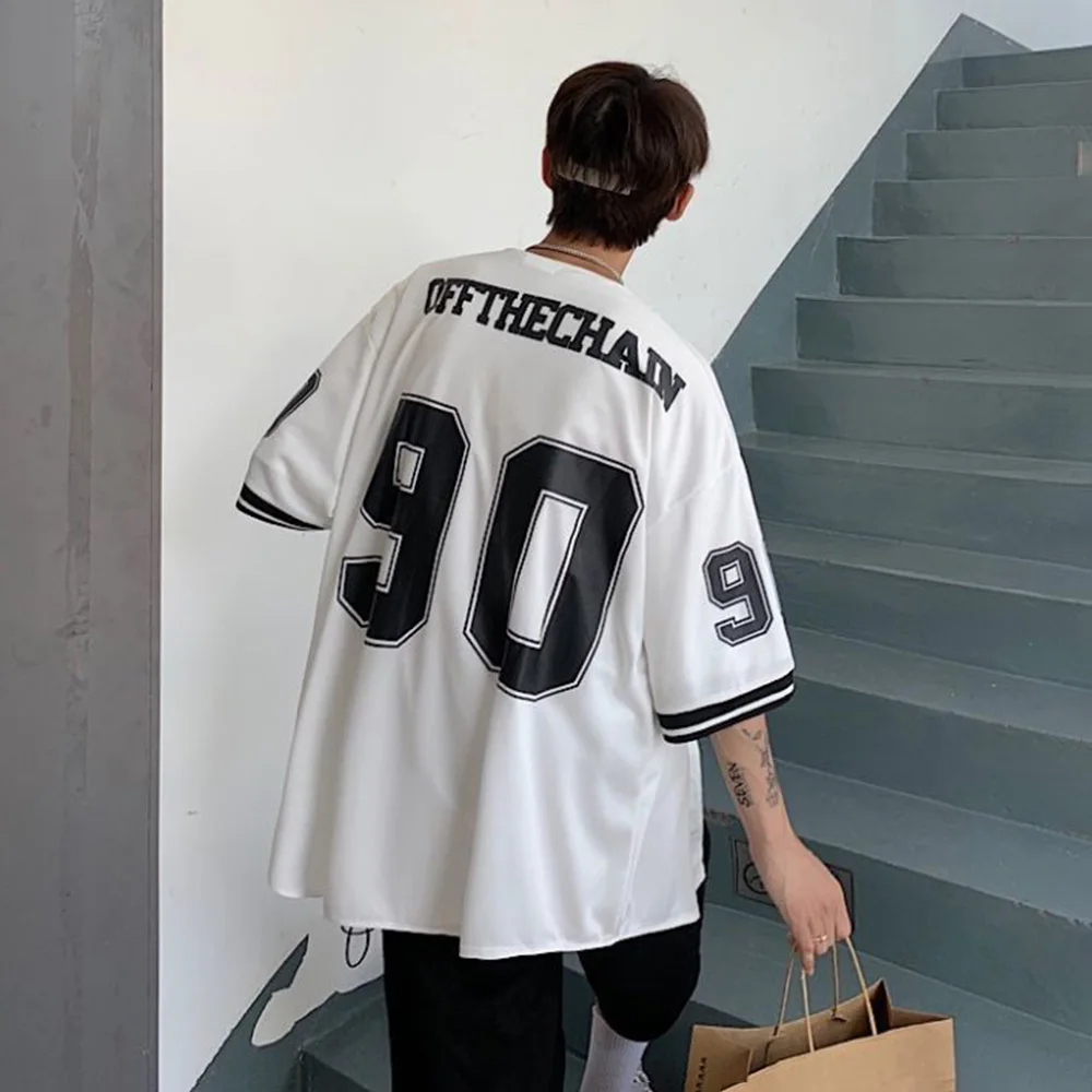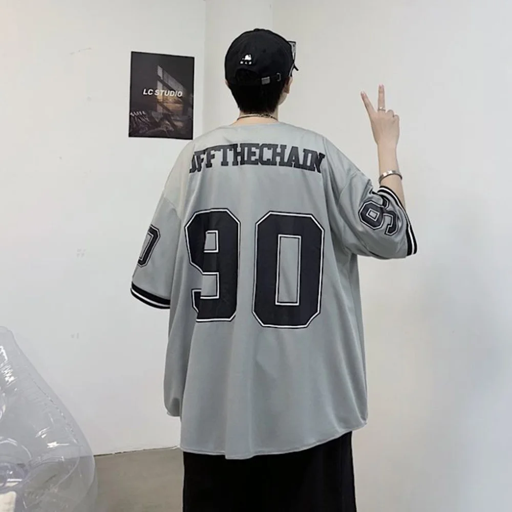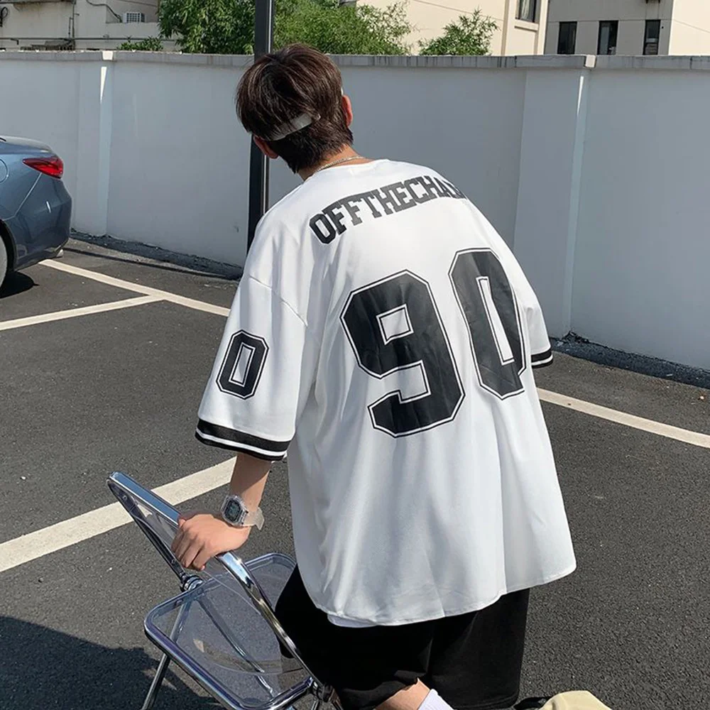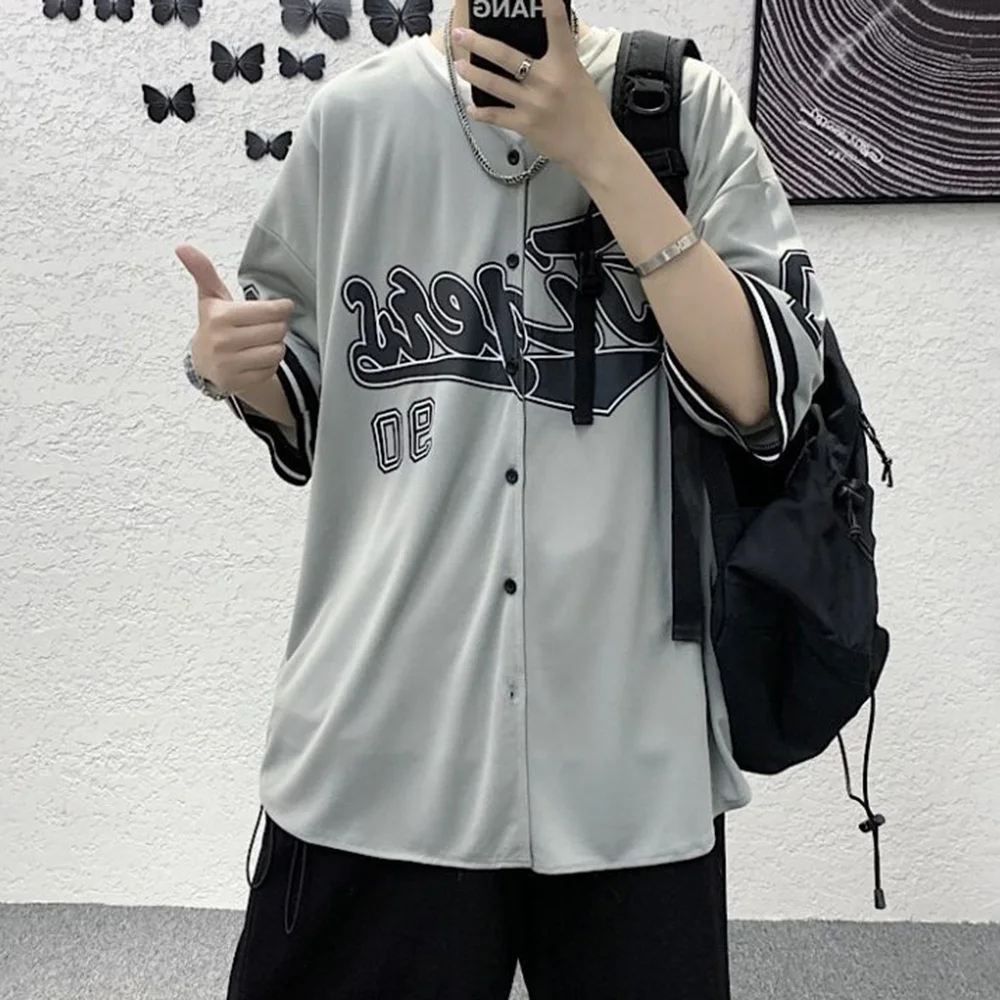 WIAOFELLAS  -  Jersey Shirt Mens West Coast Vibrant Street American Hip-Hop Tops Baseball Short Sleeve All-Match Youthful Men's Clothing