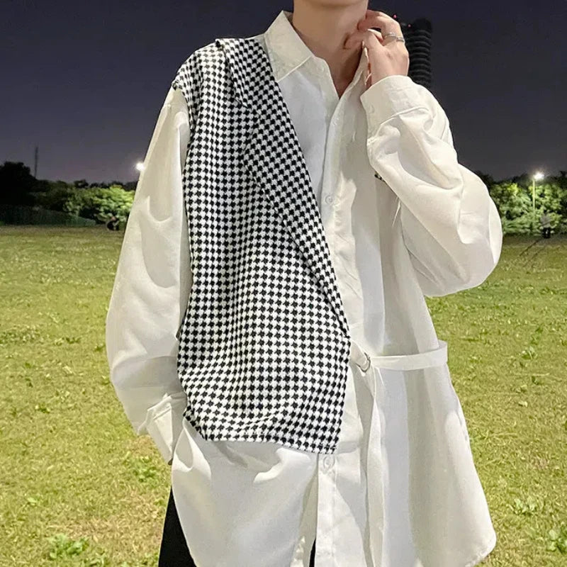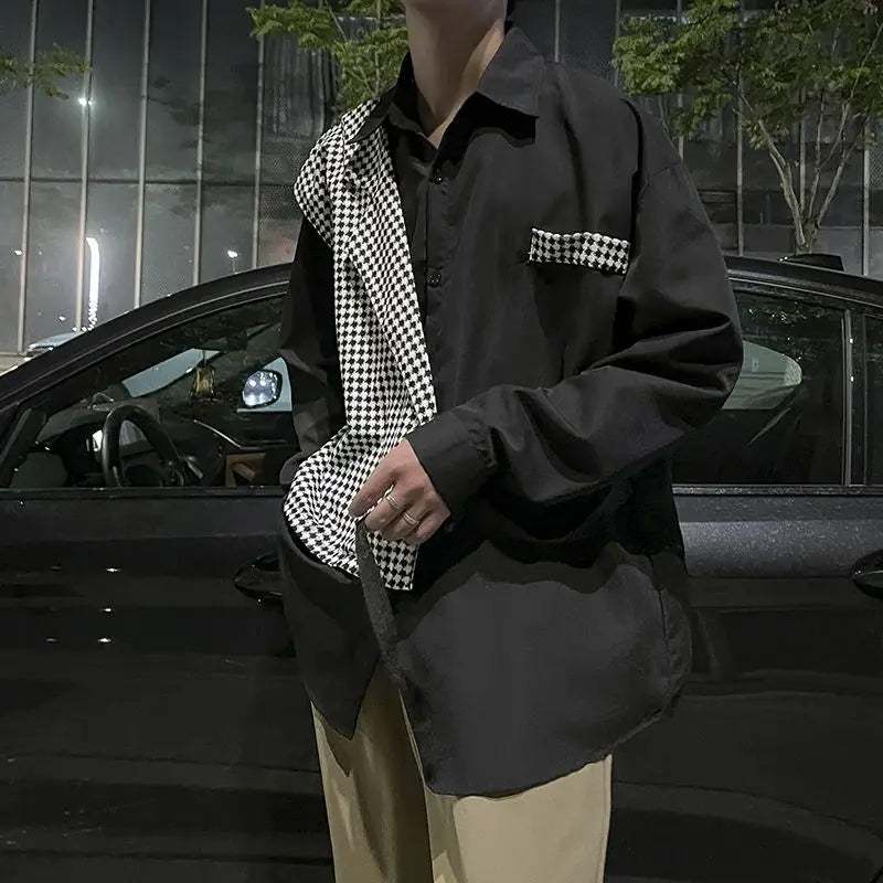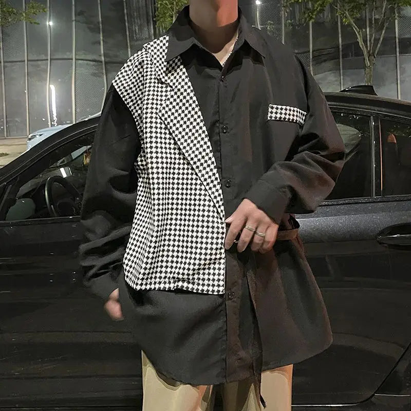 WIAOFELLAS - Korean Men's Spring and Autumn Square Collar Print Fashion and Versatile Loose and Casual Two-piece Long Sleeved Shirts