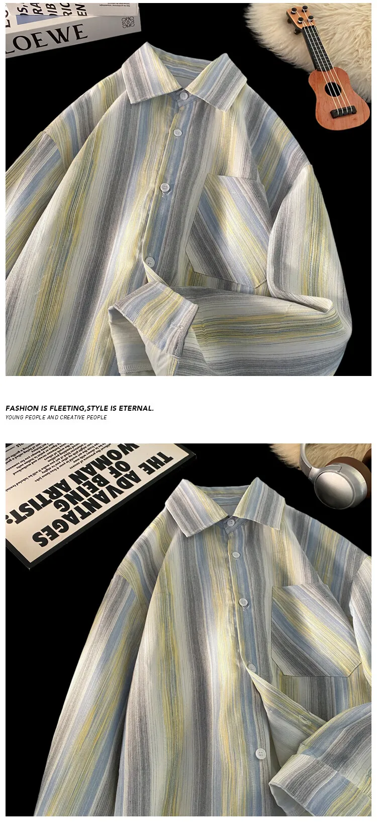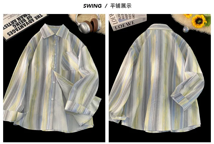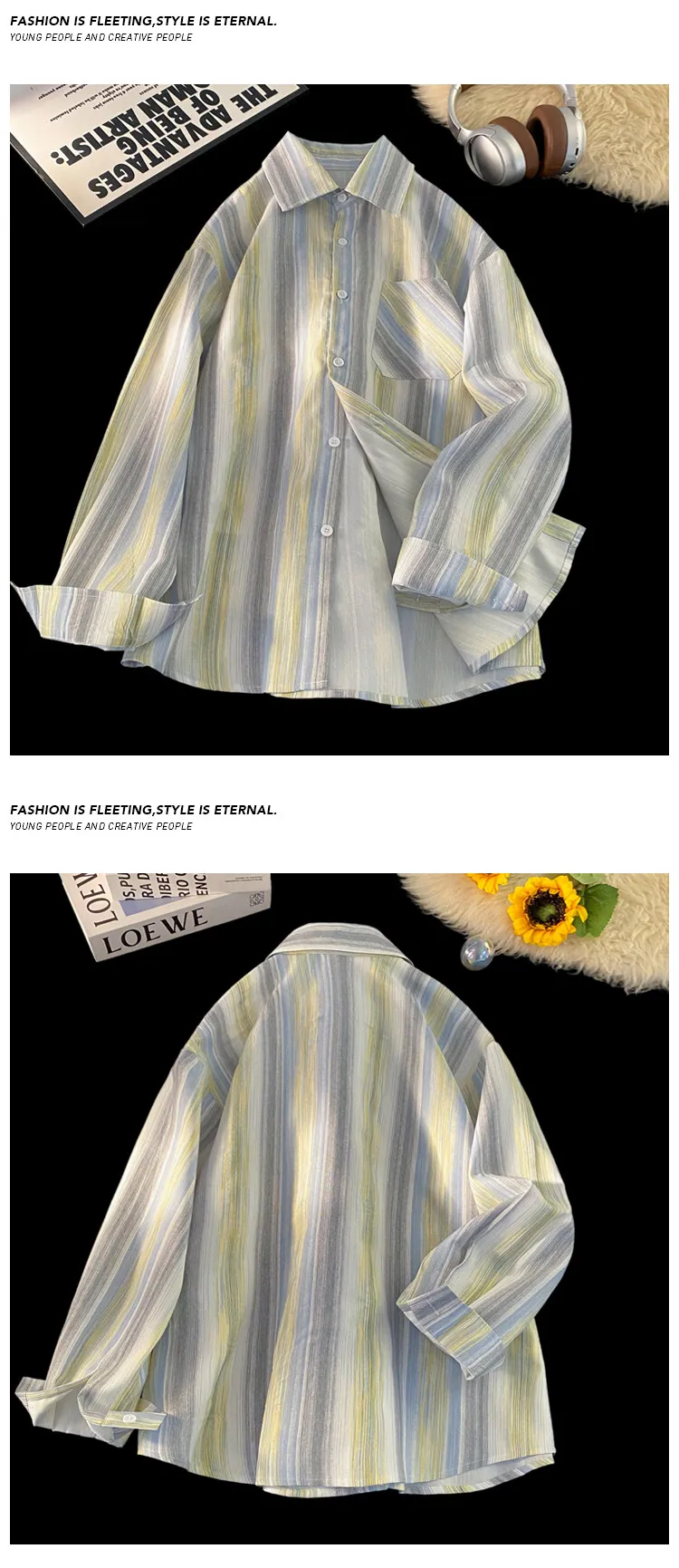 WIAOFELLAS - Korean Striped Blouse 2025 Spring Fashion Streetwear Long-sleeved Shirt Casual Loose Button Up Shirt