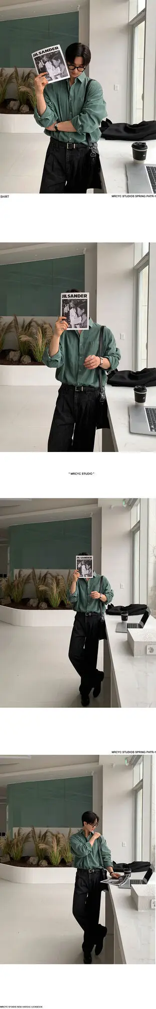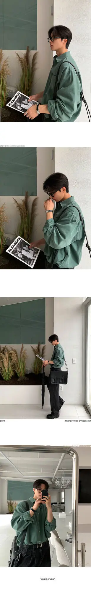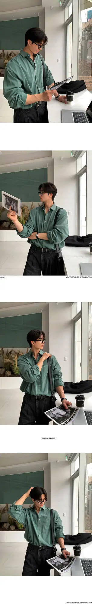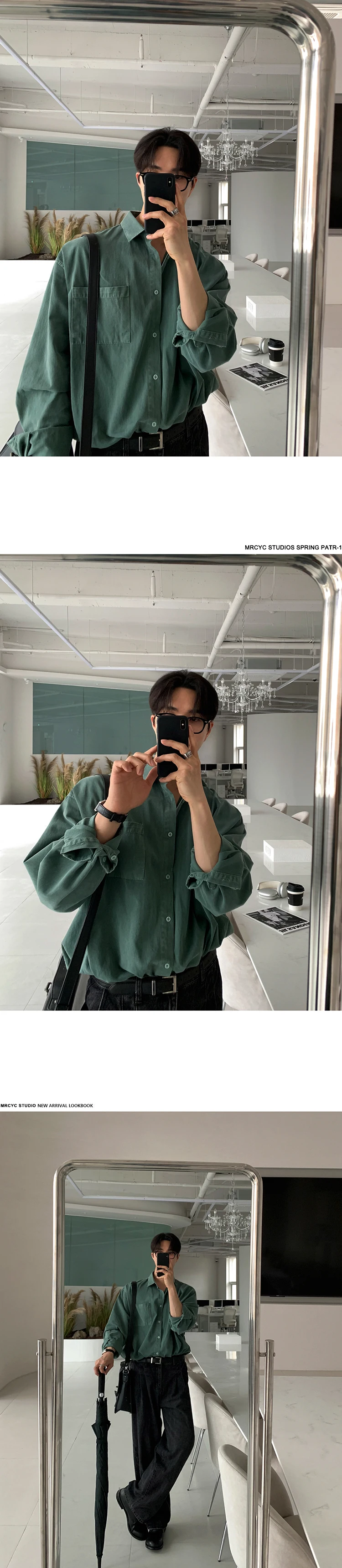 WIAOFELLAS - Korean Style Men's Shirts Casual Turn-down Collar Solid Color Long Sleeved Single Breasted Loose Male Tops Autumn