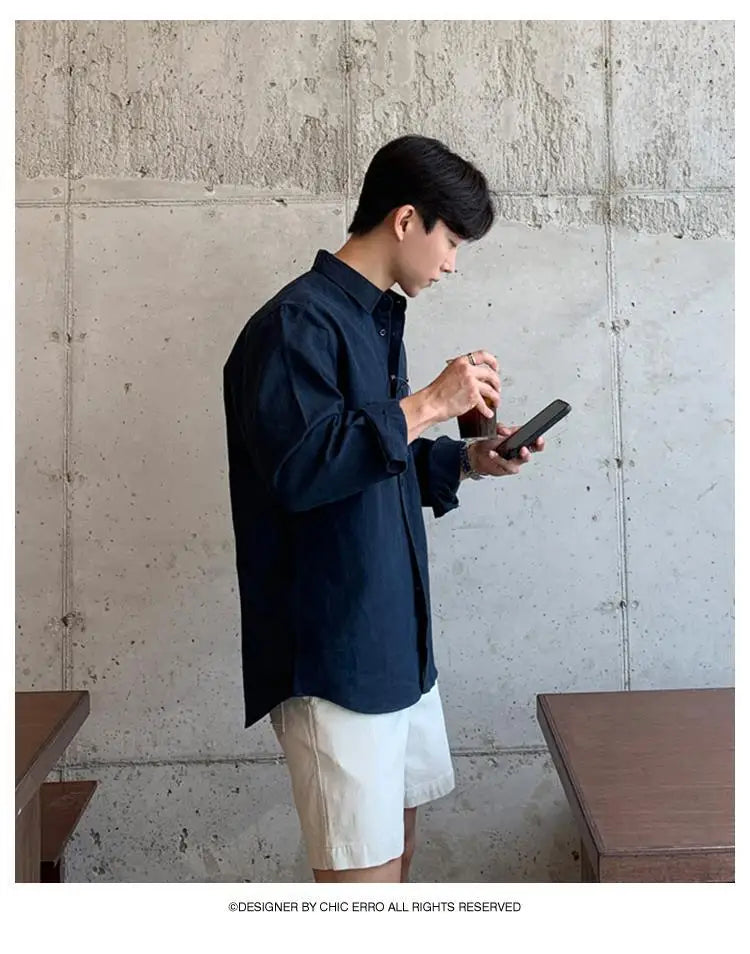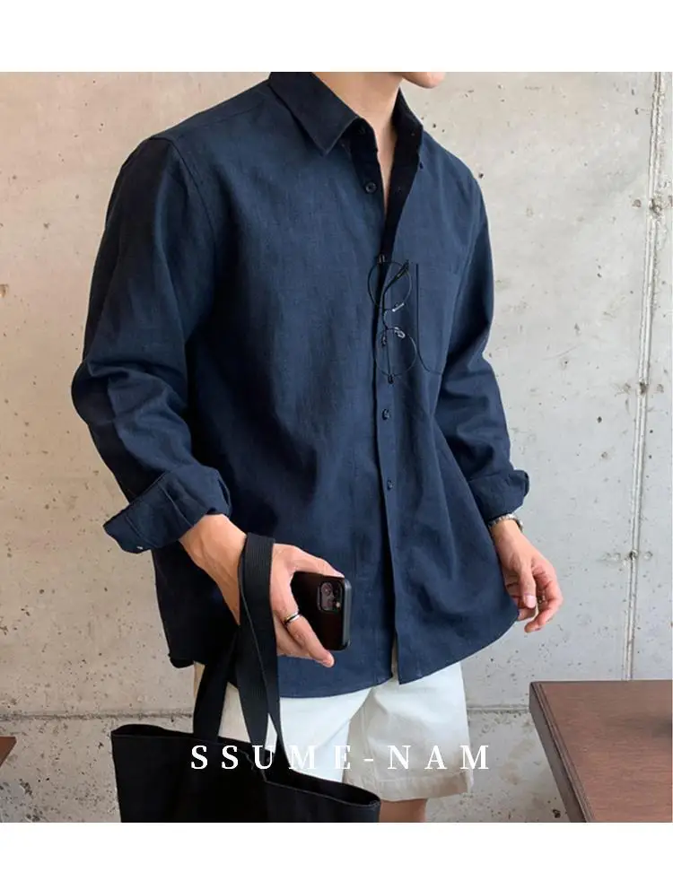 WIAOFELLAS - Large size men's long-sleeved shirt men's spring and summer Korean style high-end casual shirt design niche jacket