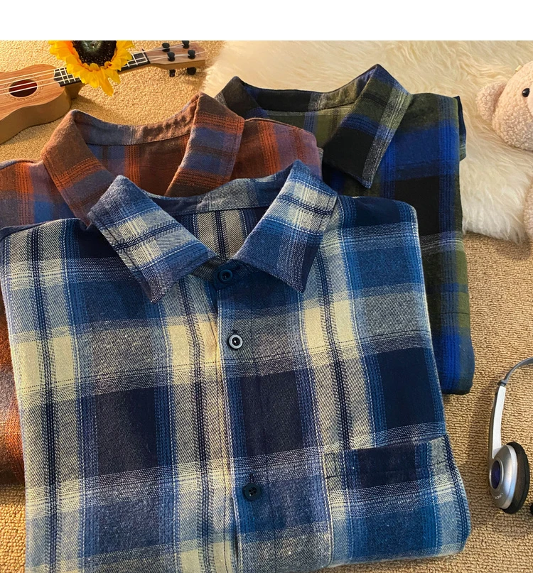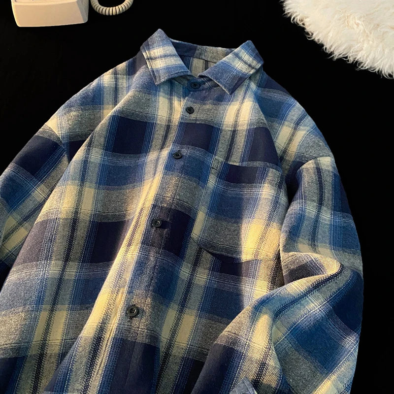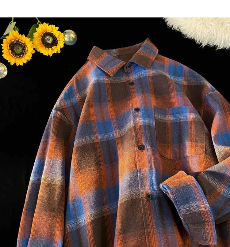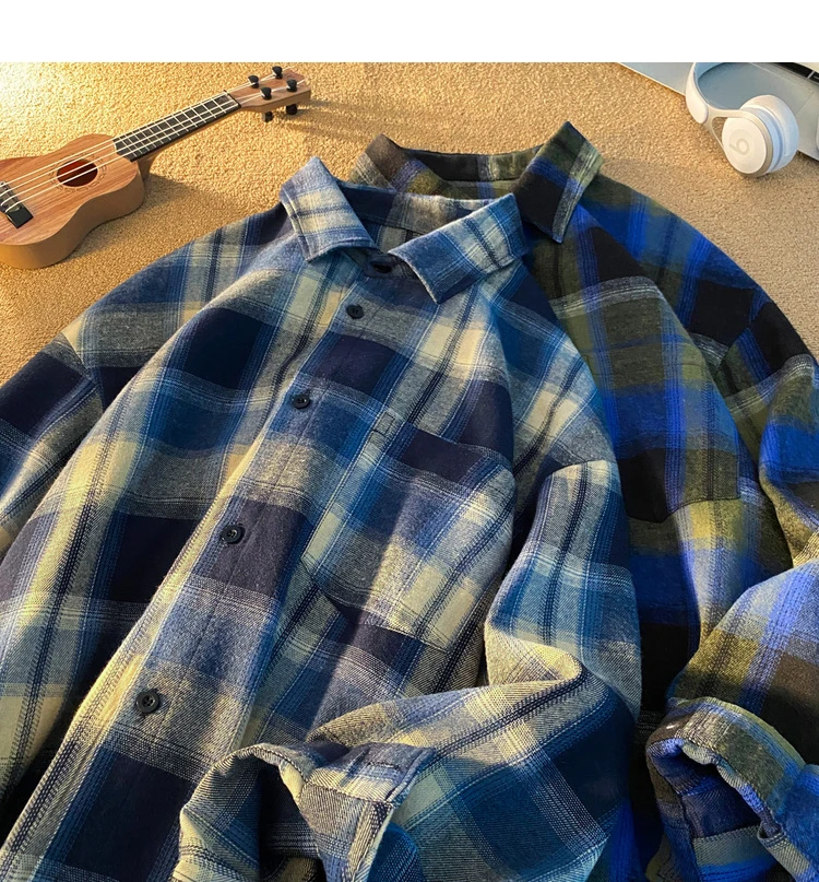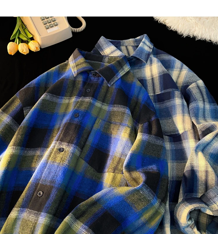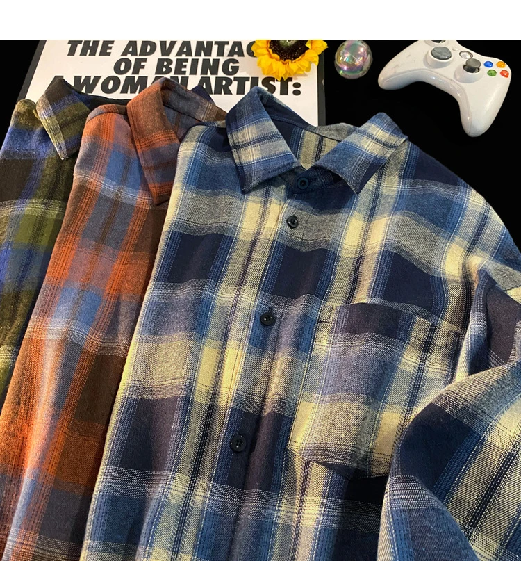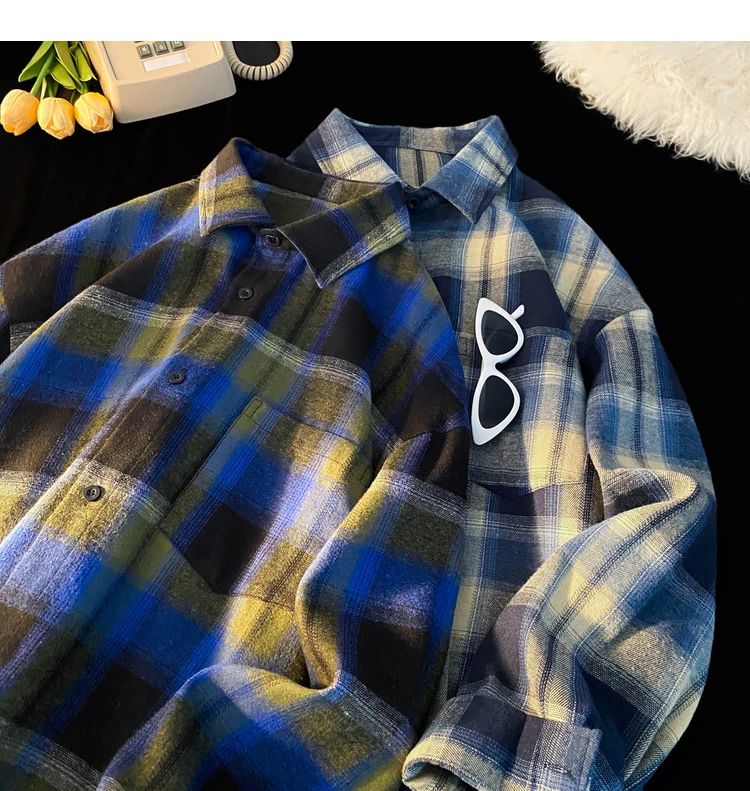 WIAOFELLAS - Leisure Plaid Shirt Autumn New Men's Long Sleeve Shirt Tide Street Color Collision Cardigan Jacket Loose Fit Unisex Shirts