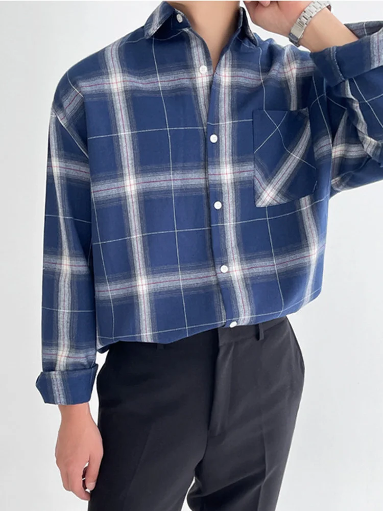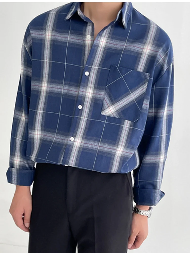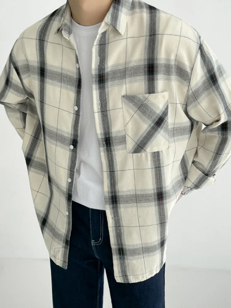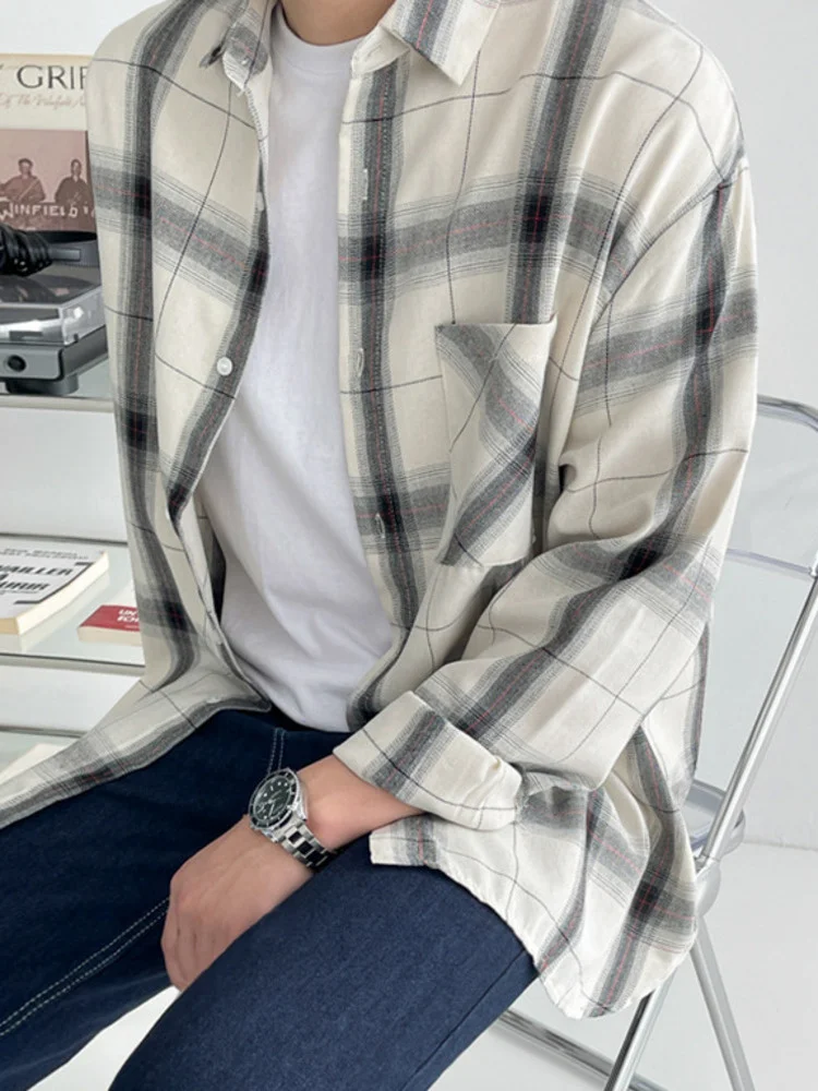 Wiaofellas  -  Long Plaid Sleeved Shirt Turn down Neck Single Breasted Loose Men's Spring New Korean Style Fashion Simple Versatile 2A1203