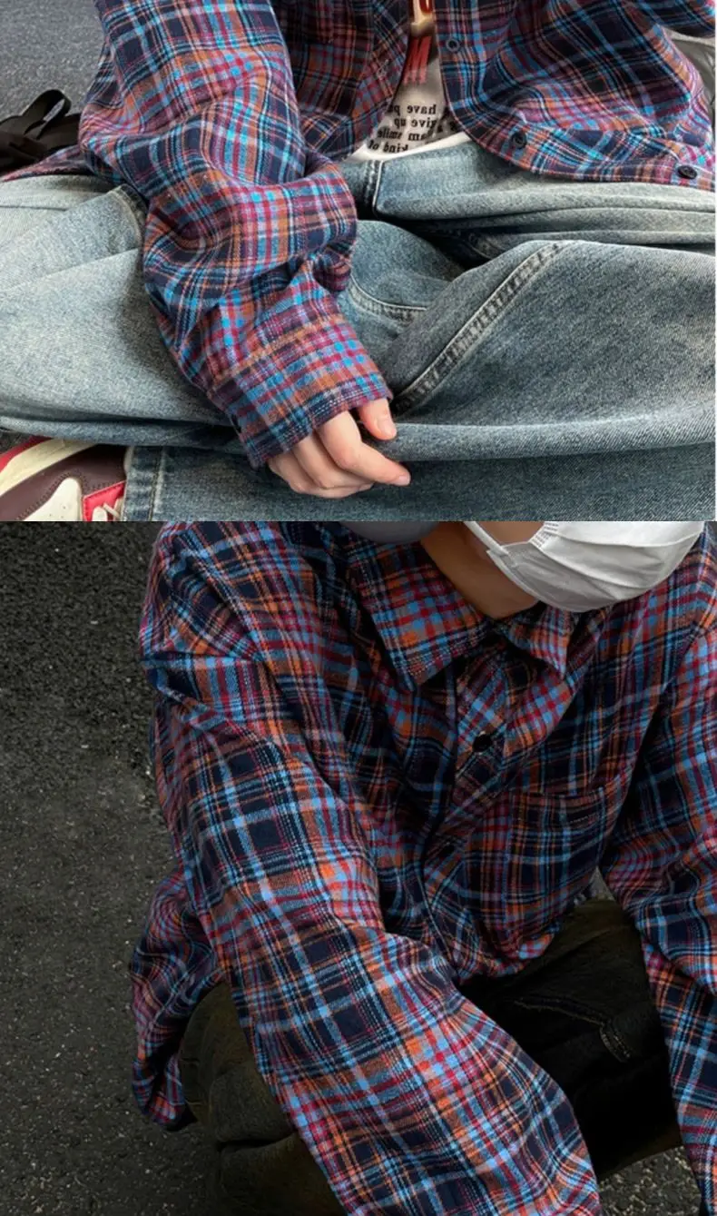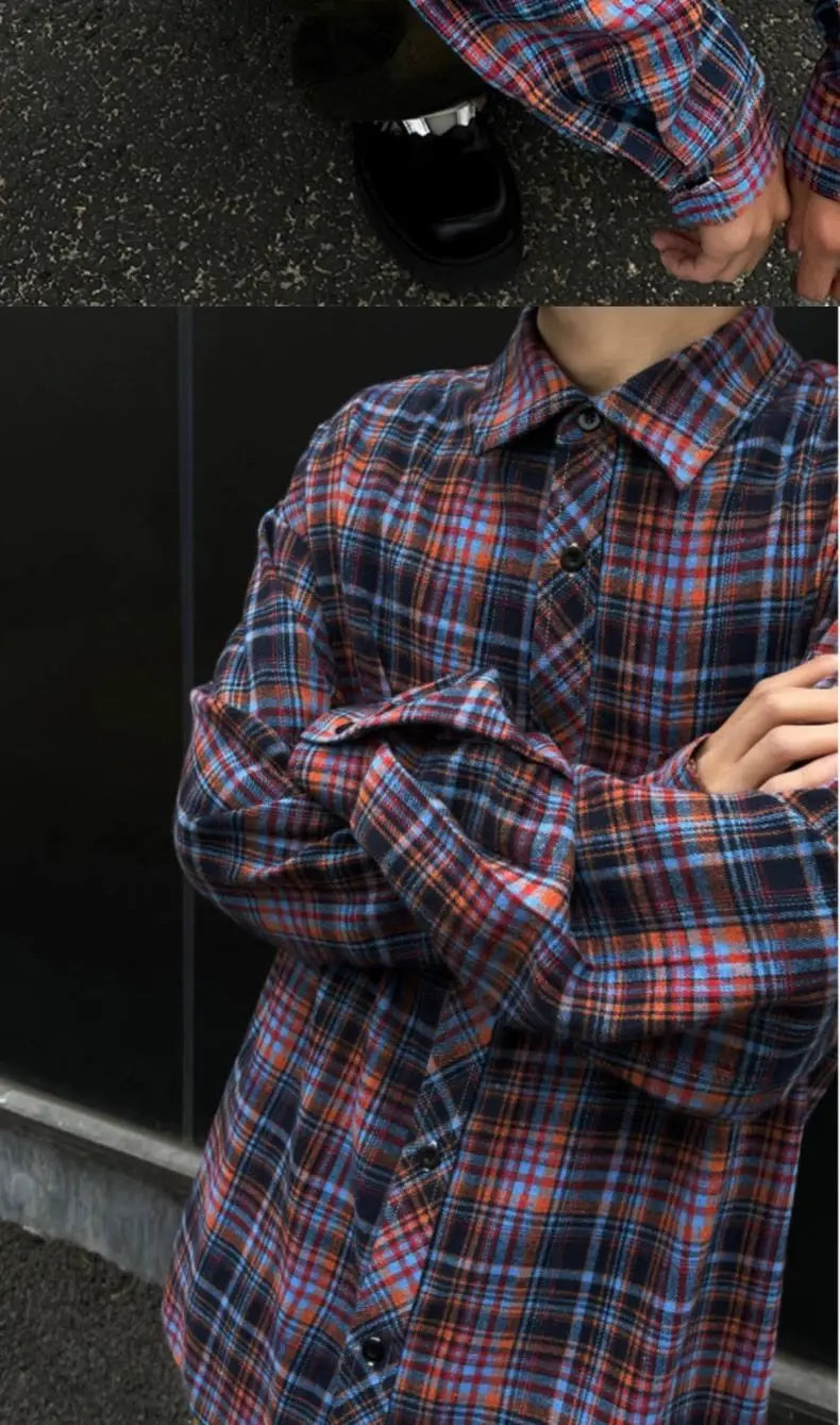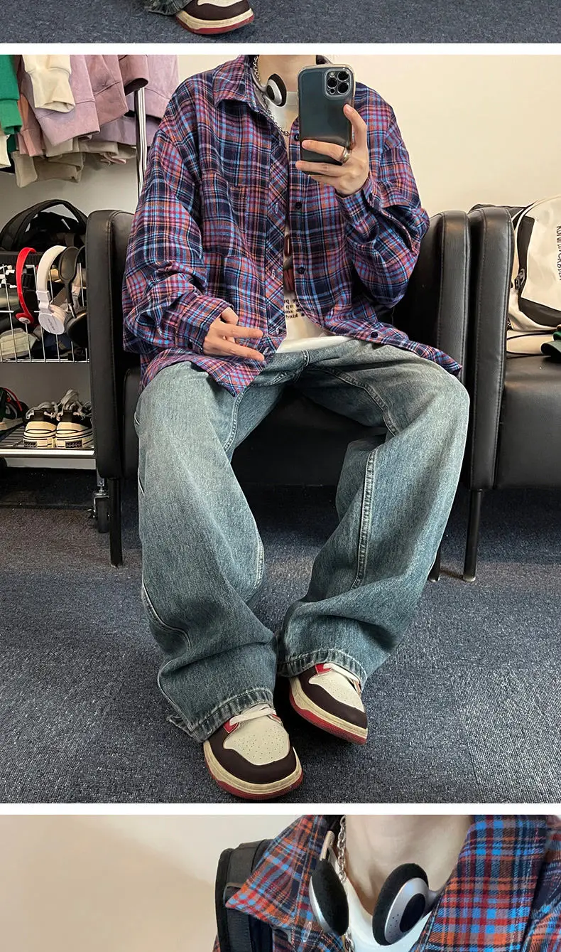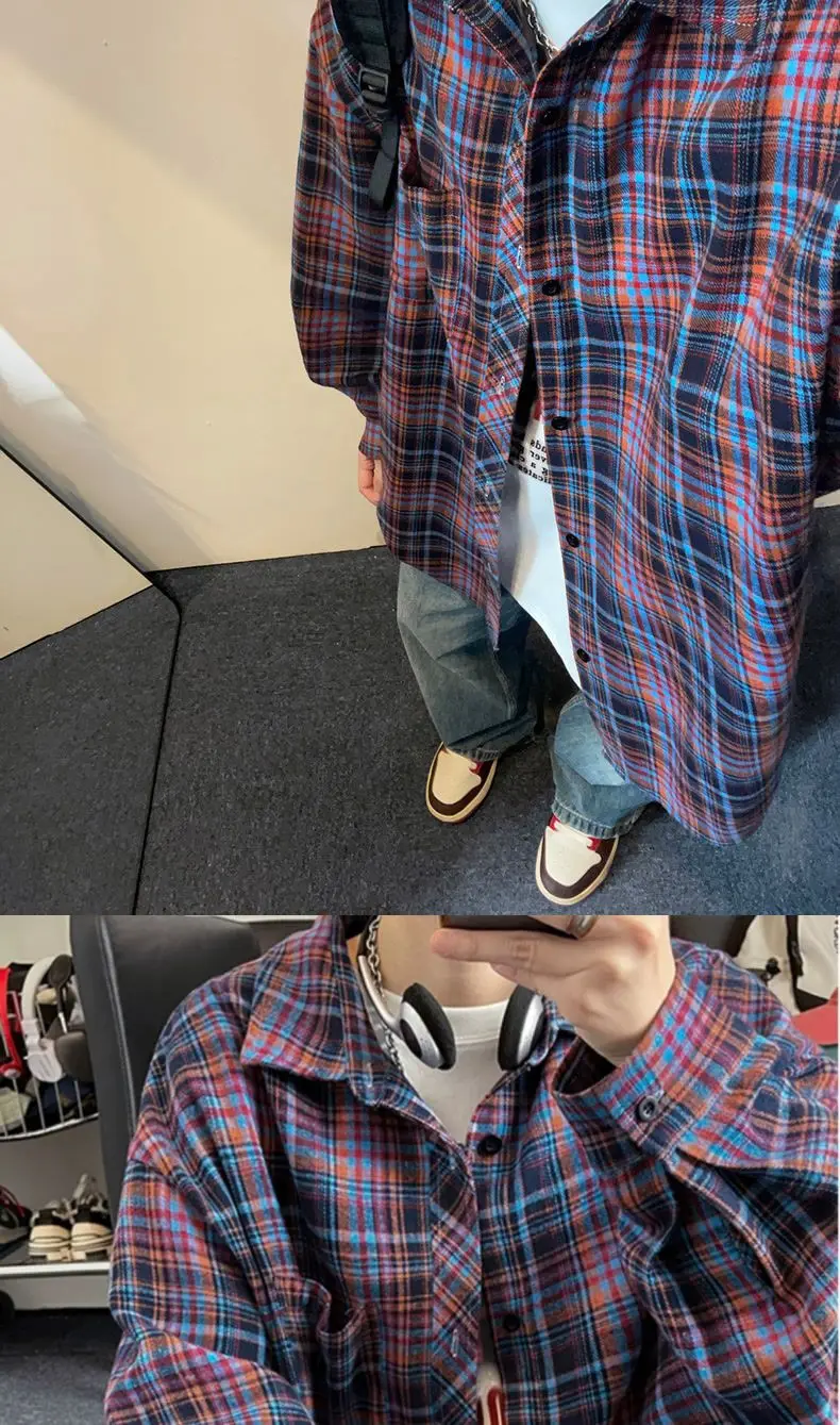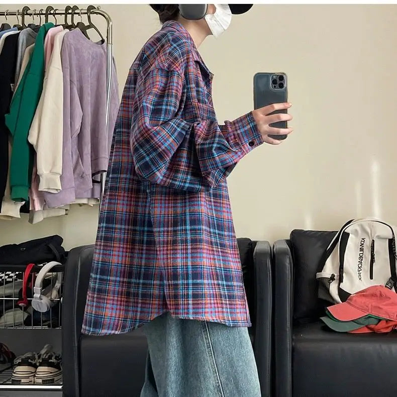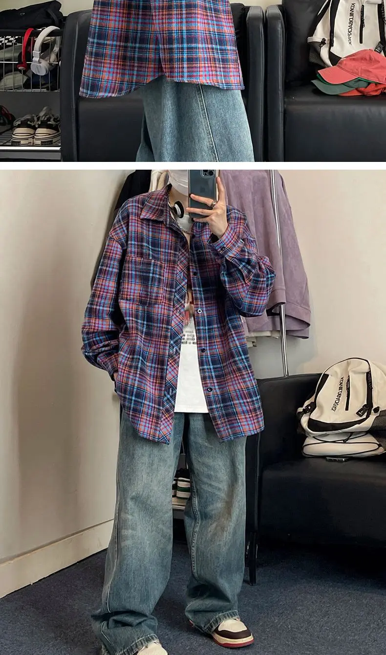WIAOFELLAS  -  Long-sleeved Shirt Men's New Retro Plaid Large Size Lapel Jacket