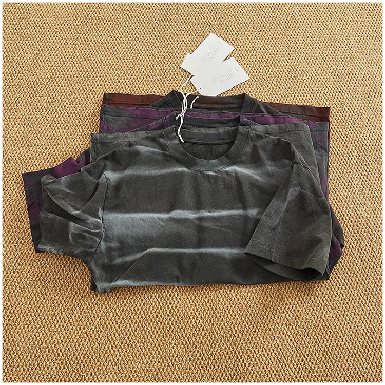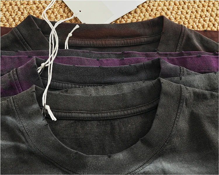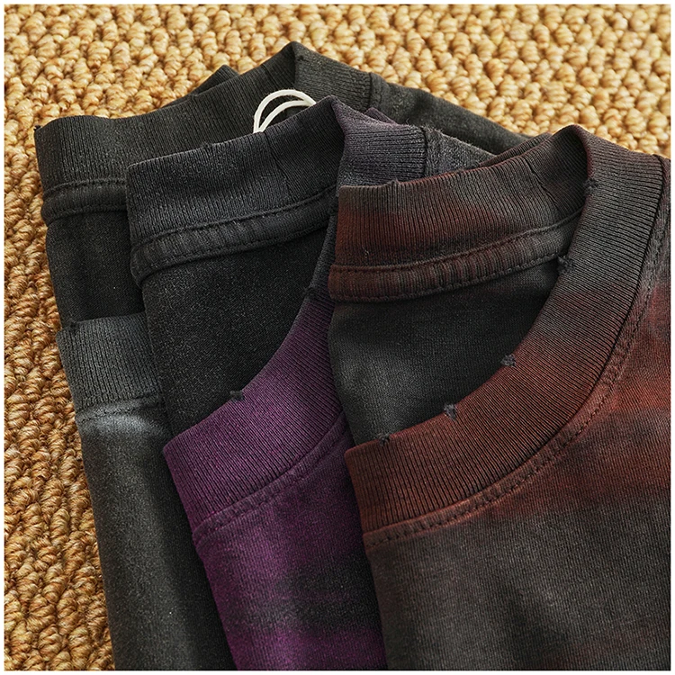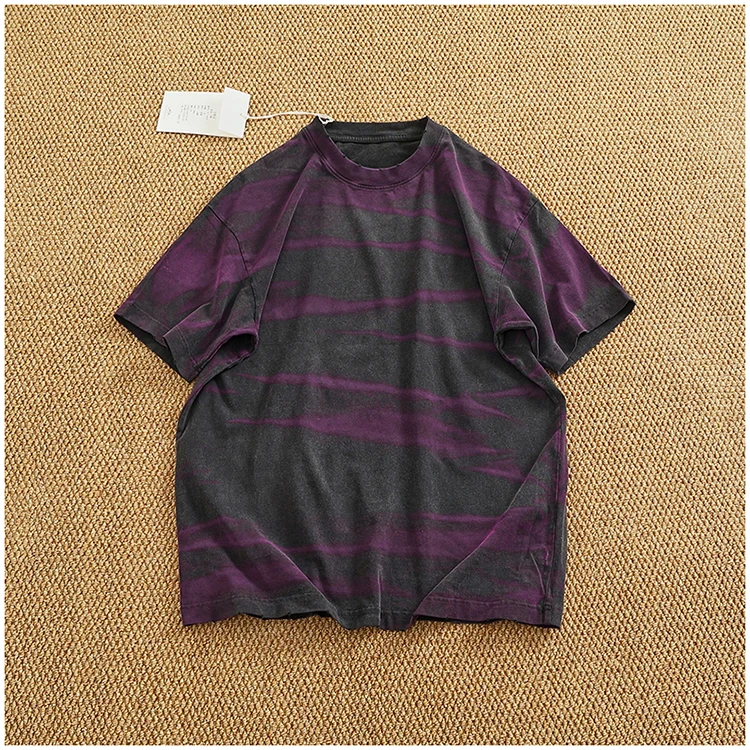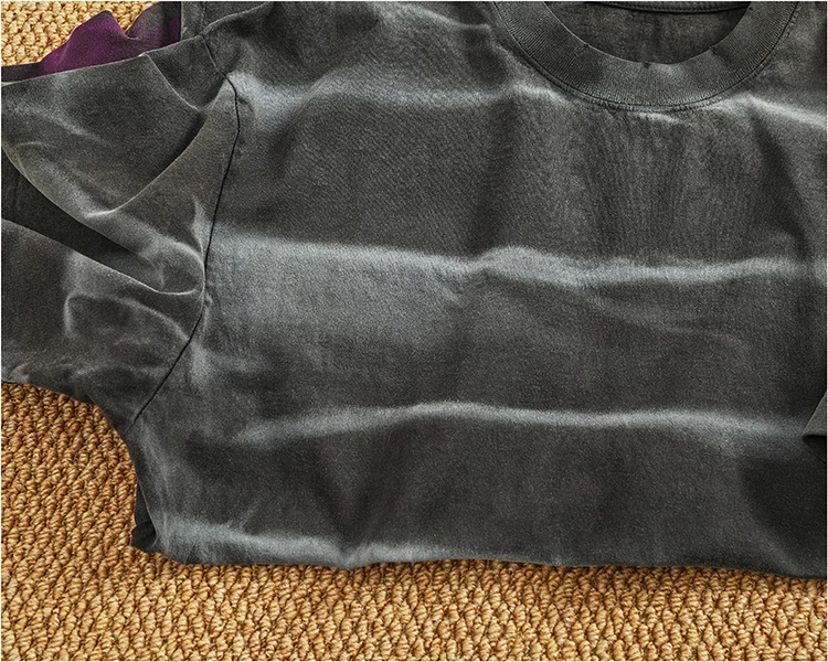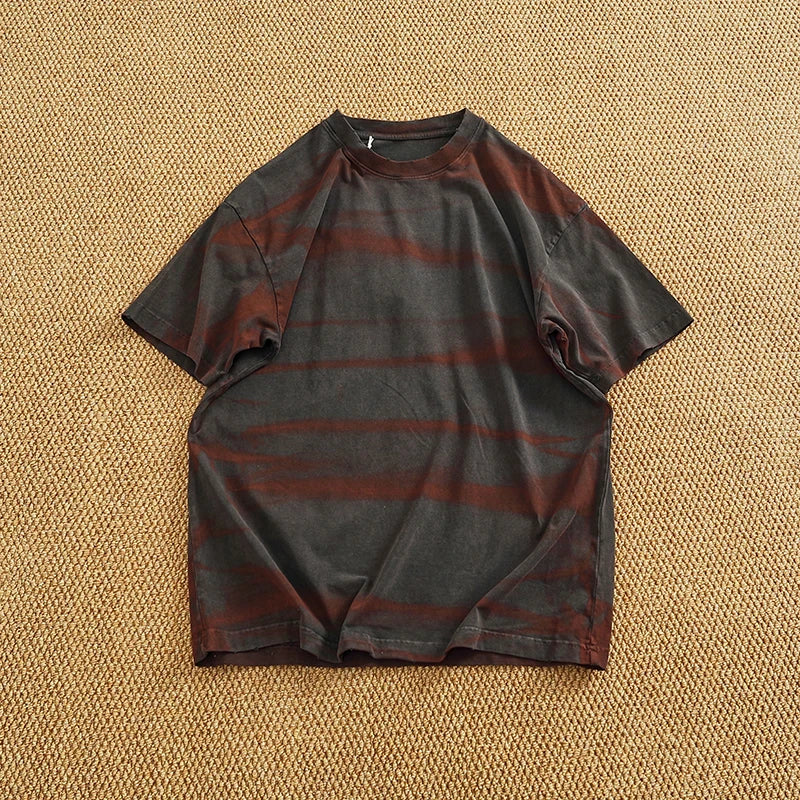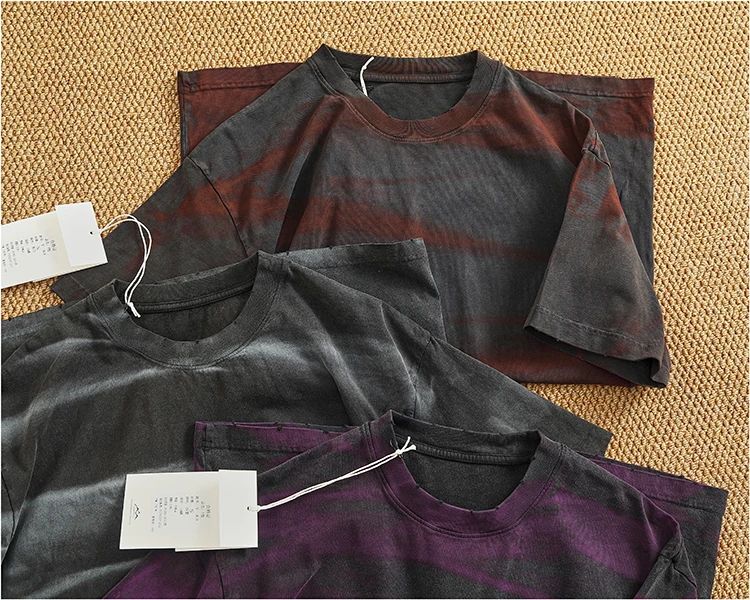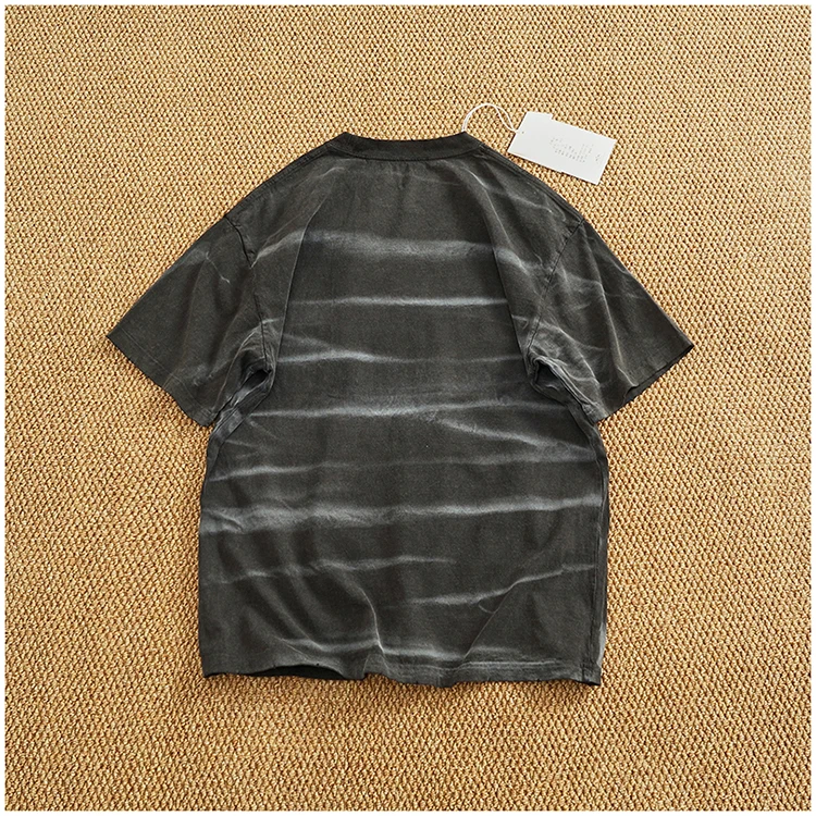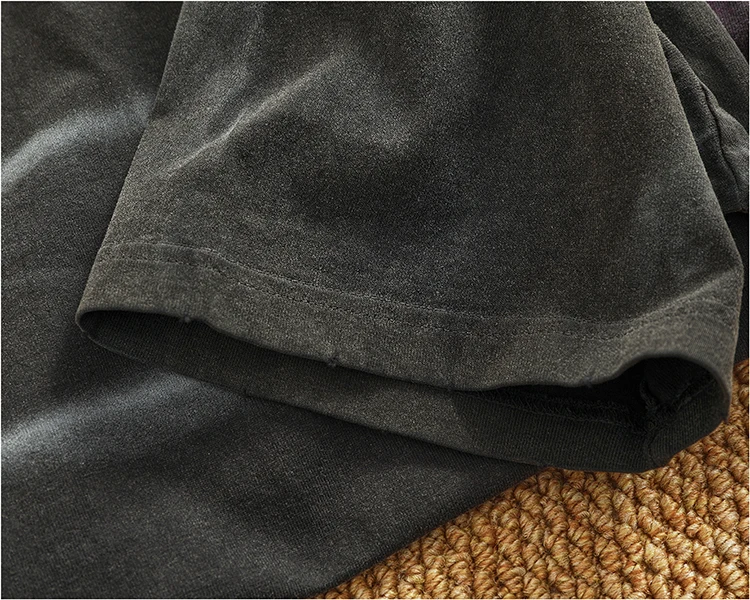 WIAOFELLAS - Loose off rotator sleeve American short sleeve T-shirt male personality print heavy industry old washed cotton half sleeve T