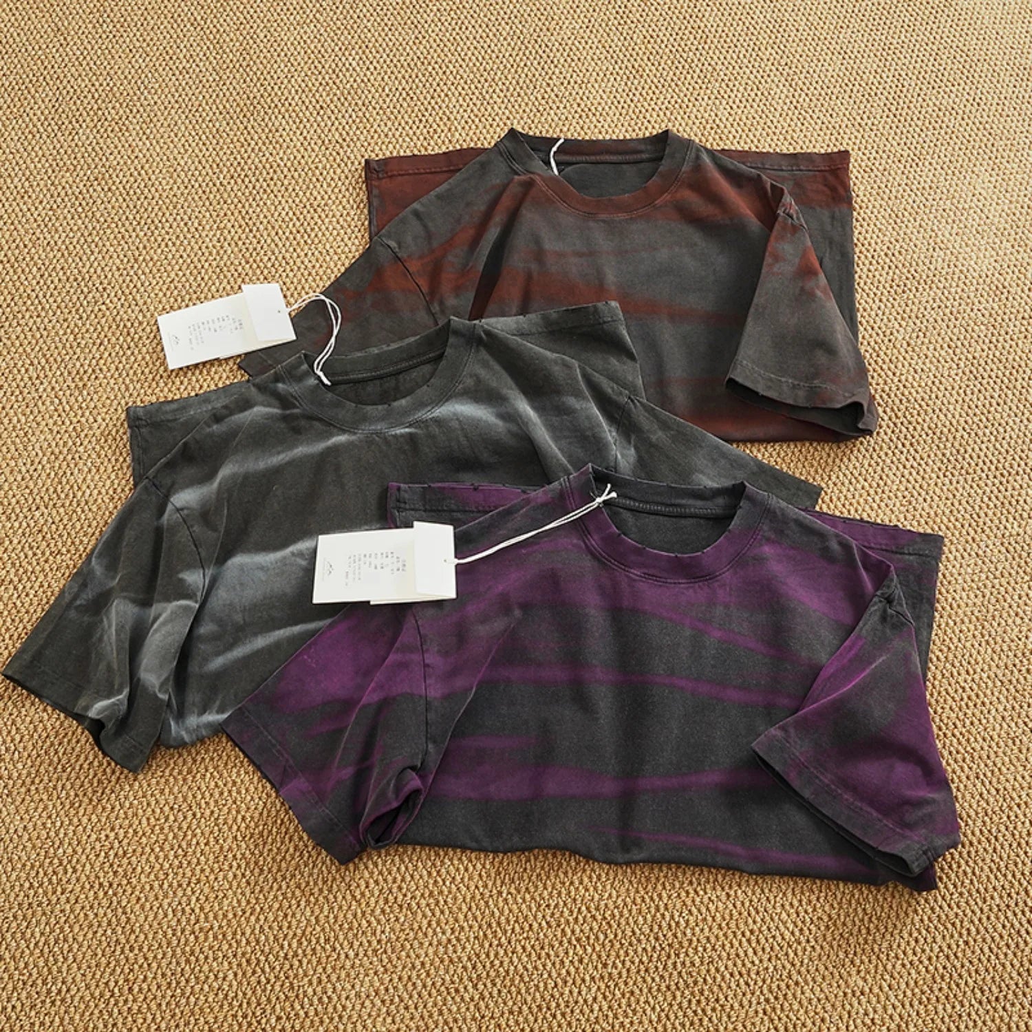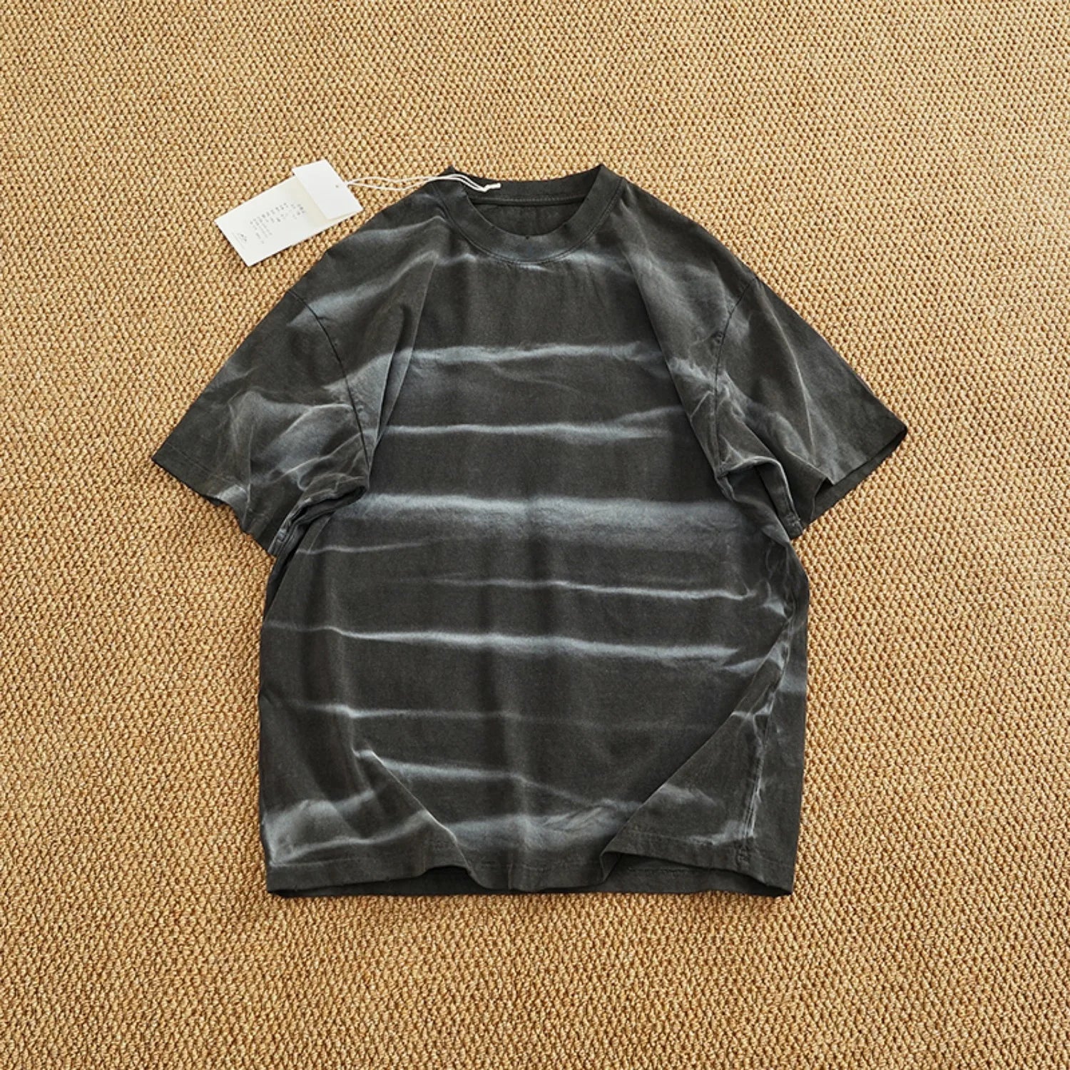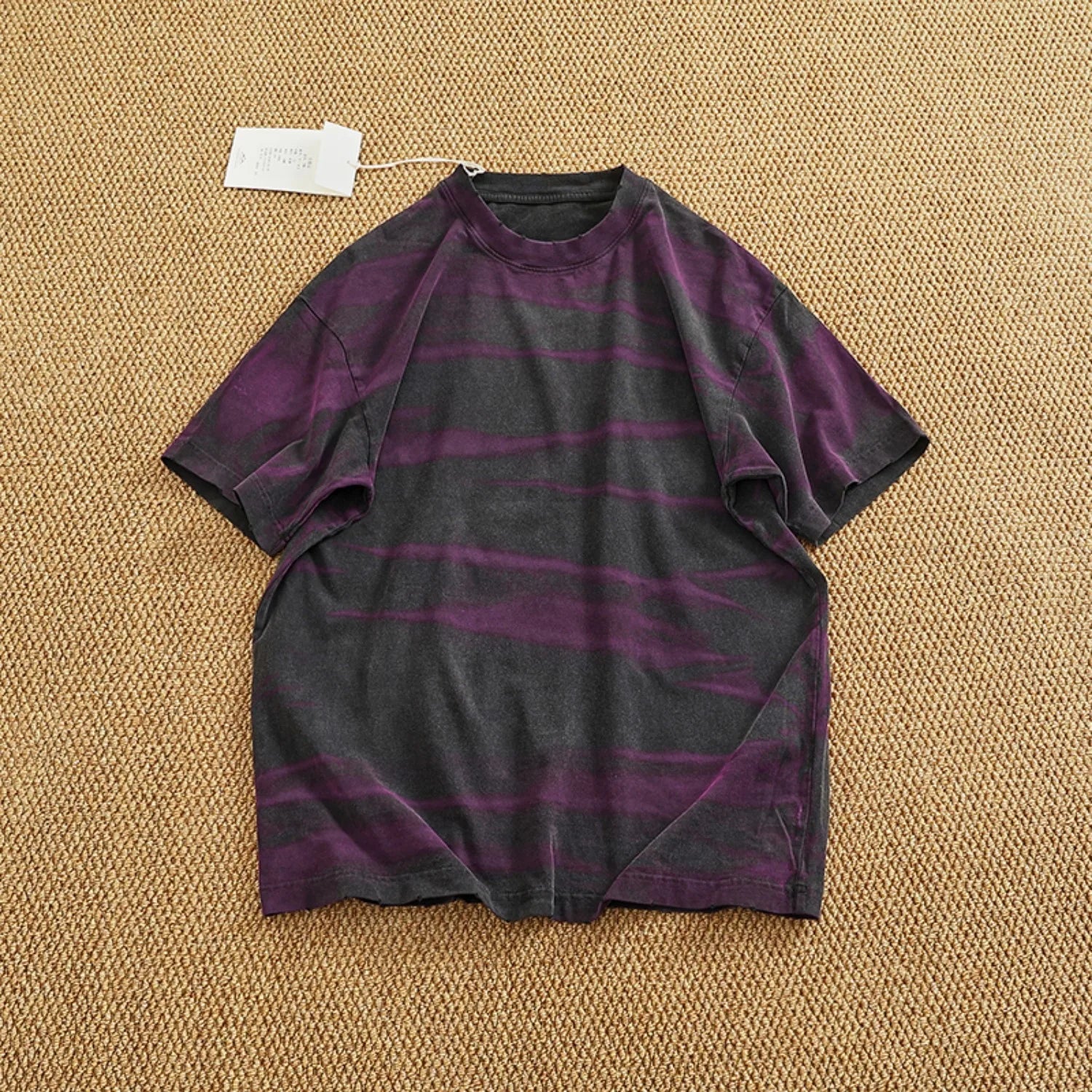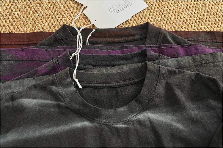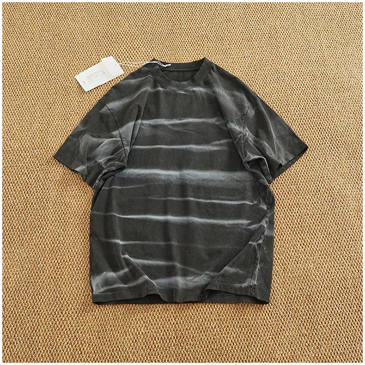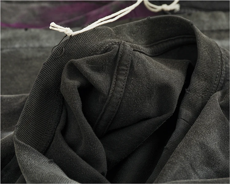 WIAOFELLAS - Loose off rotator sleeve American short sleeve T-shirt male personality print heavy industry old washed cotton half sleeve T