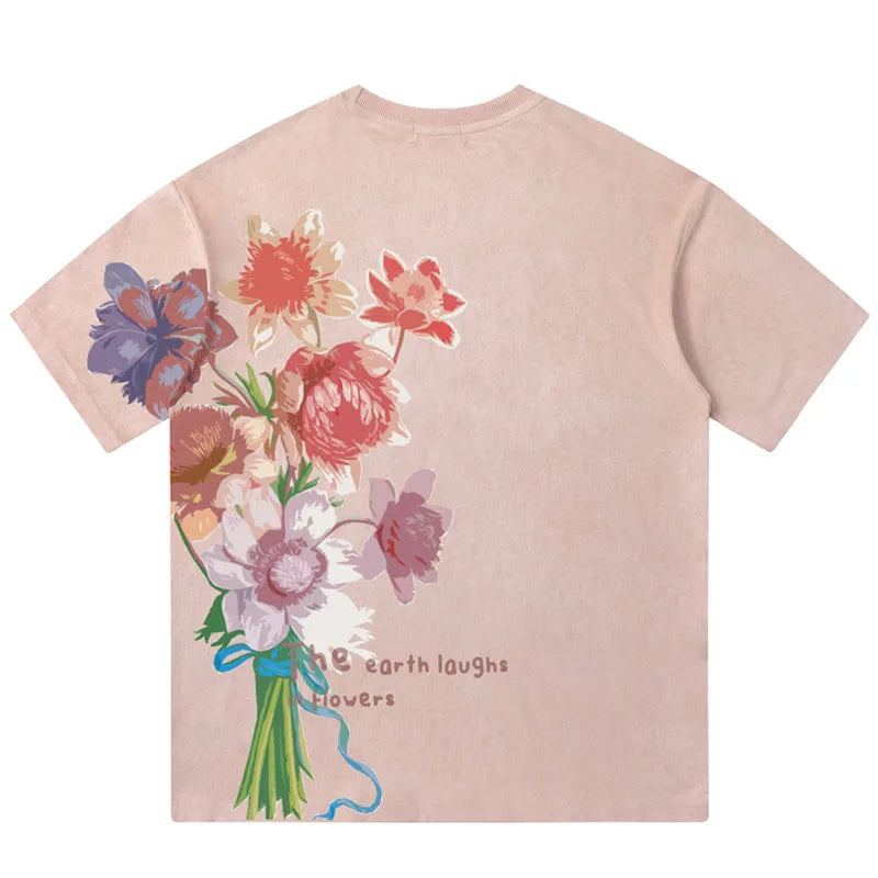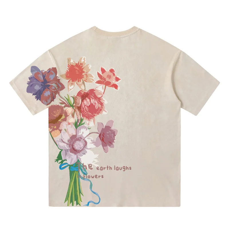 WIAOFELLAS - Men Hip Hop Streetwear Retro T Shirt Floral Print Tshirt Cotton T-Shirt Short Sleeve Racing Style Couple Tops Tees New