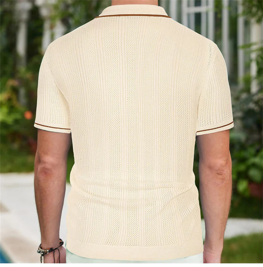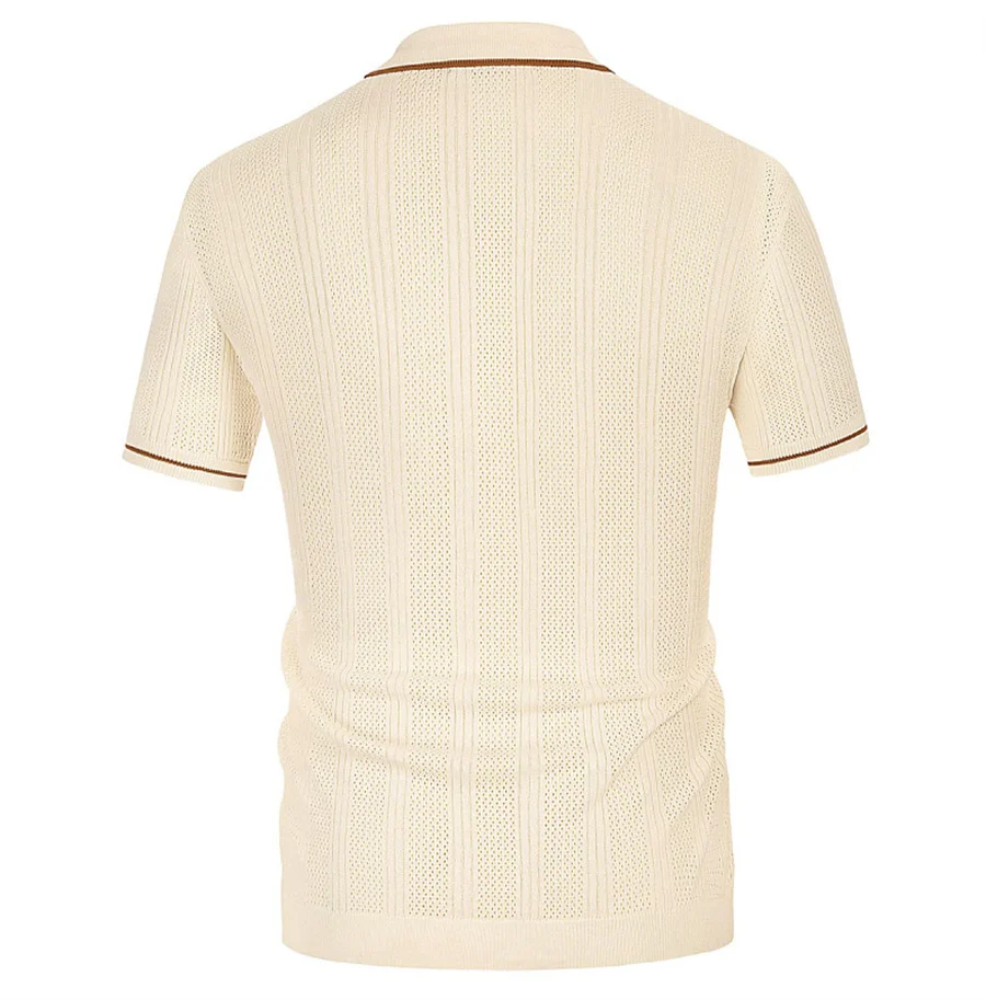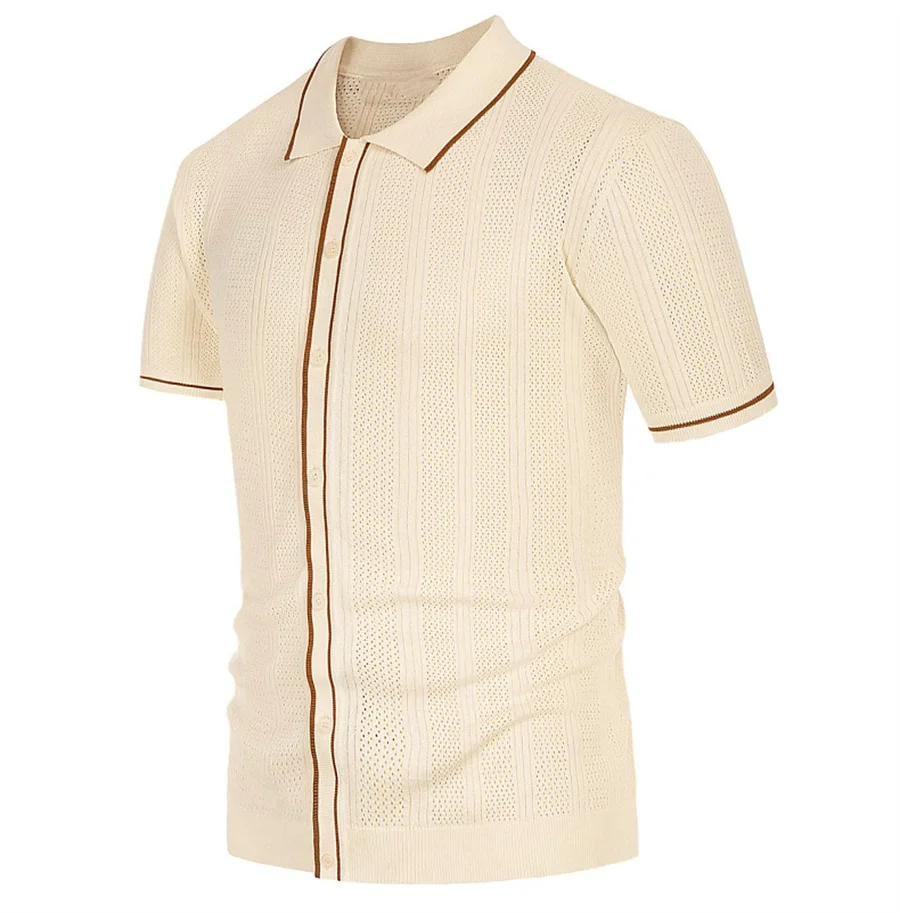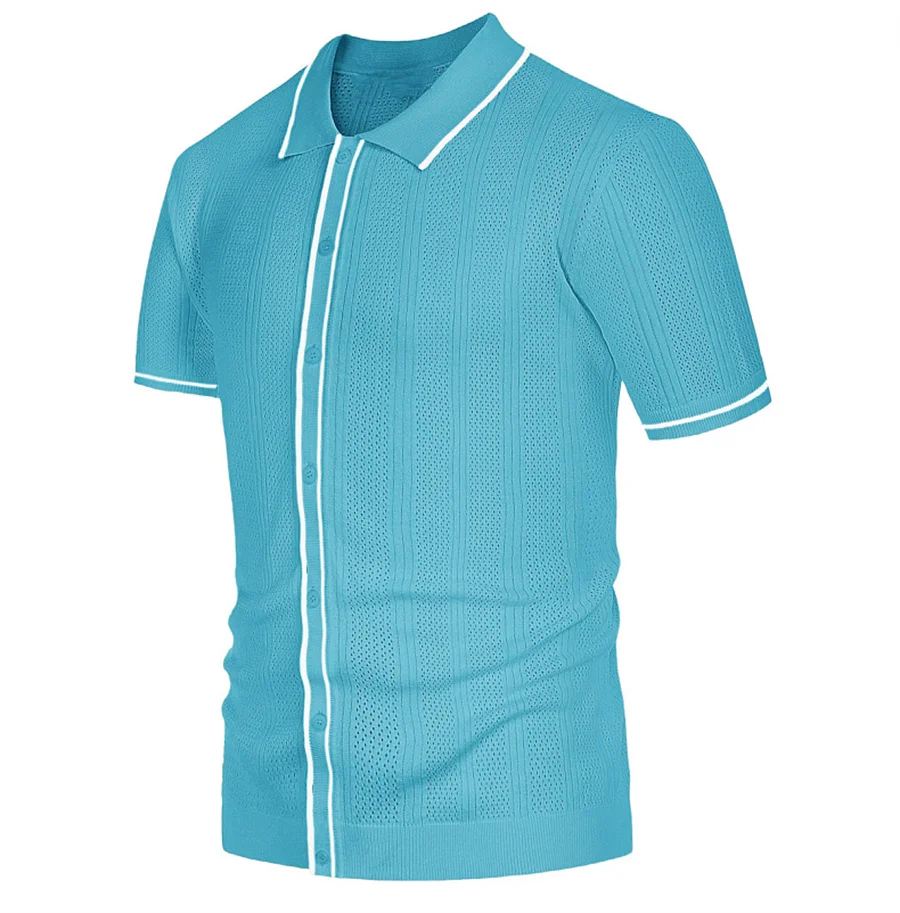 WIAOFELLAS - Men Luxury Button-down Knitted Polo Shirt Leisure Streetwear Retro Solid Color Short Sleeve Tops Knitwear Men's Clothing