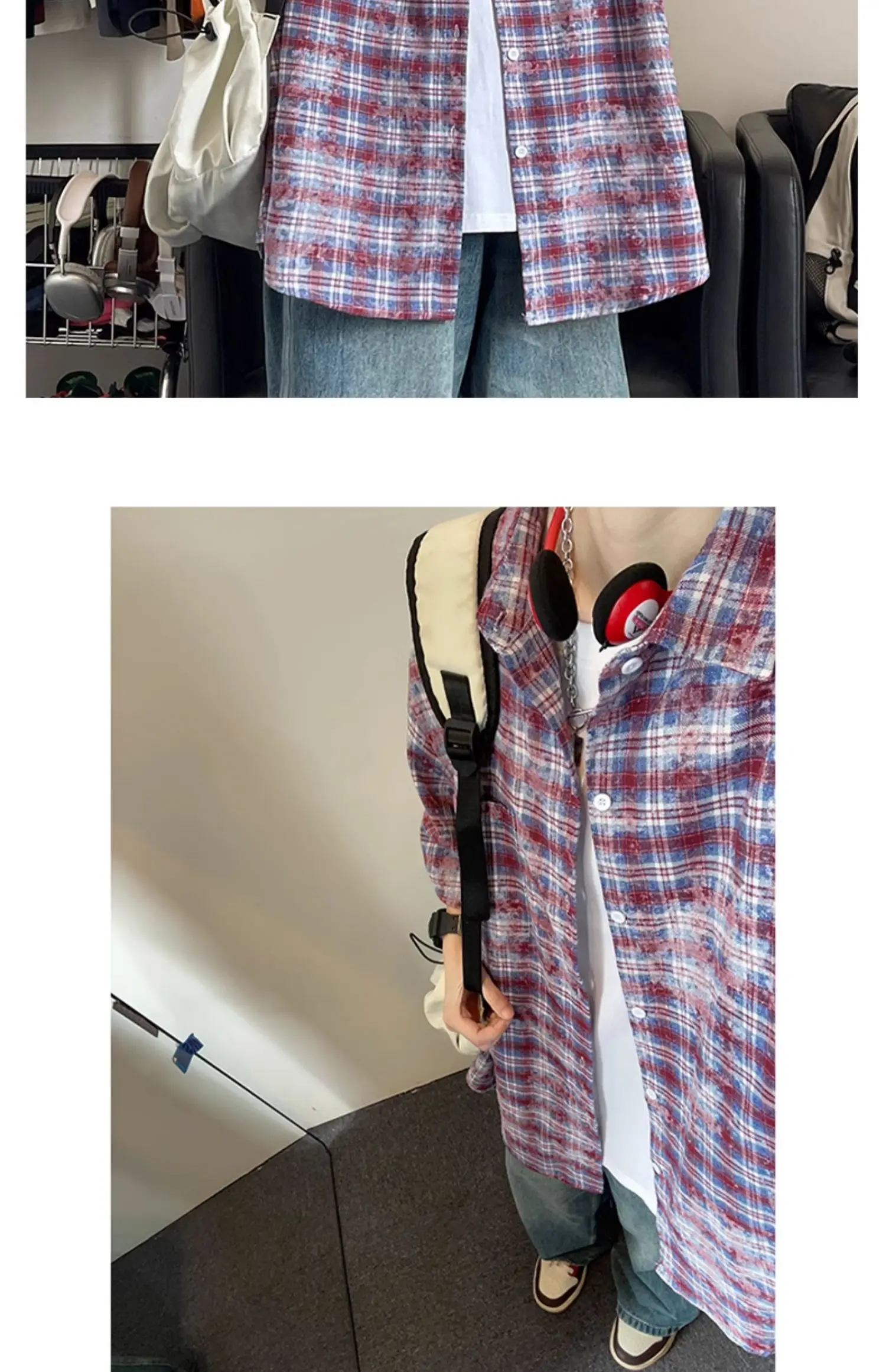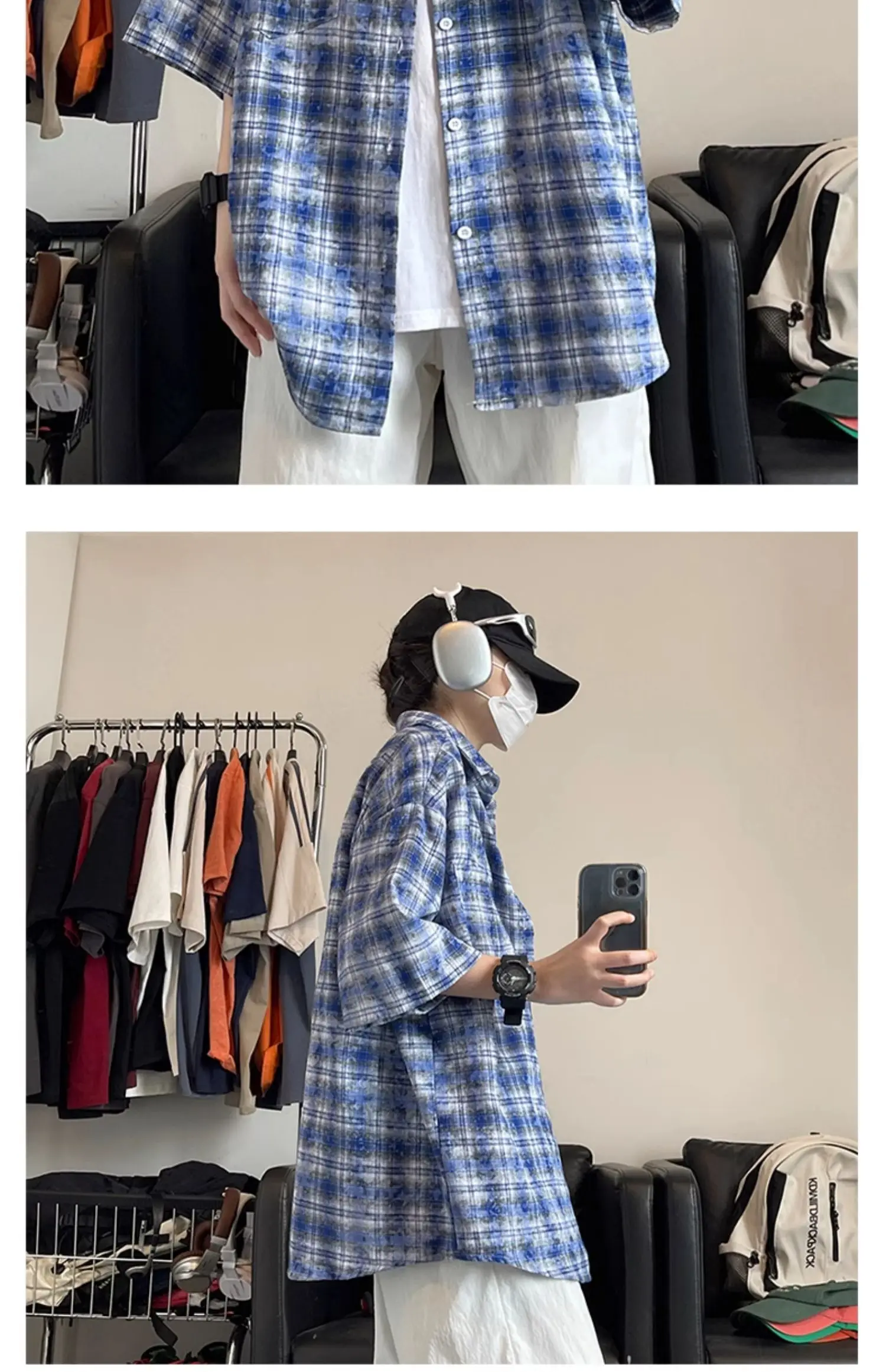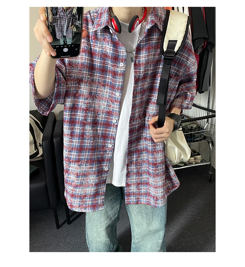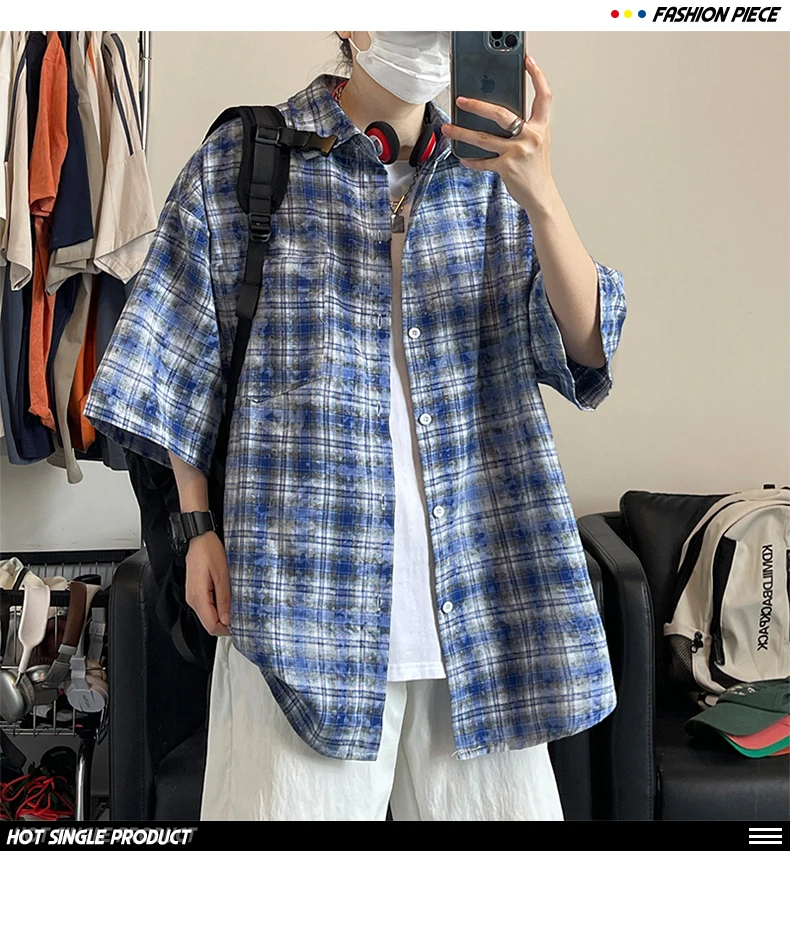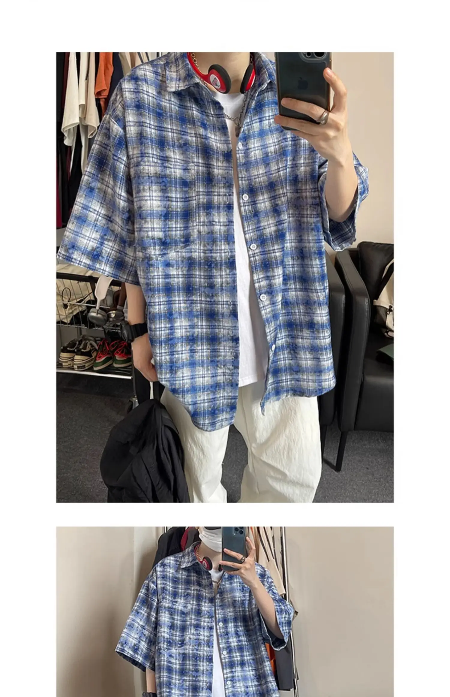 WIAOFELLAS  -  Men Plaid Shirt Spring Summer Thin Luxury Loose Korean Business Shirt Solid Trendy Loose Cargo Shirt Jacket A142
