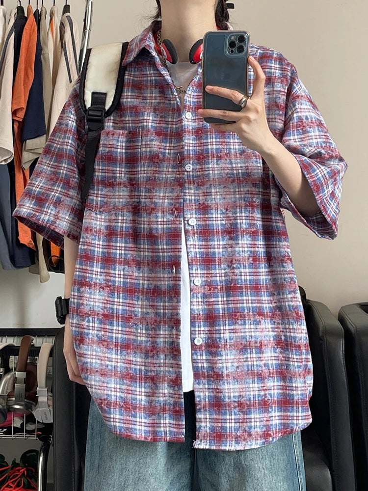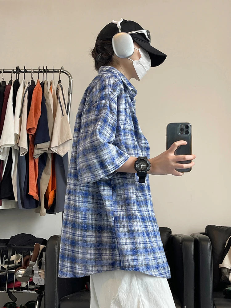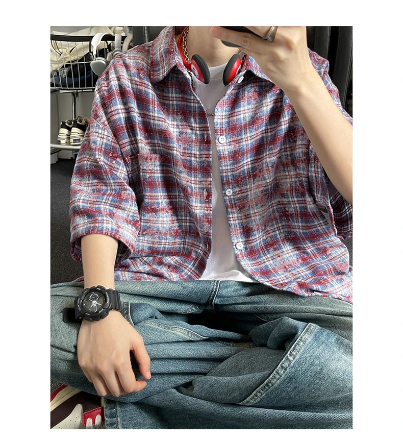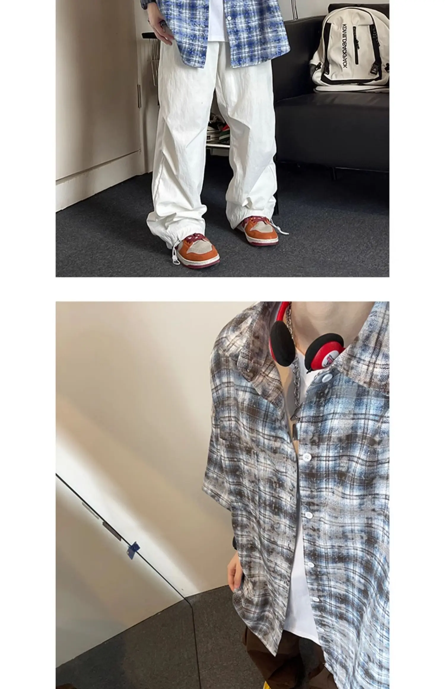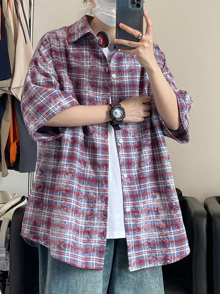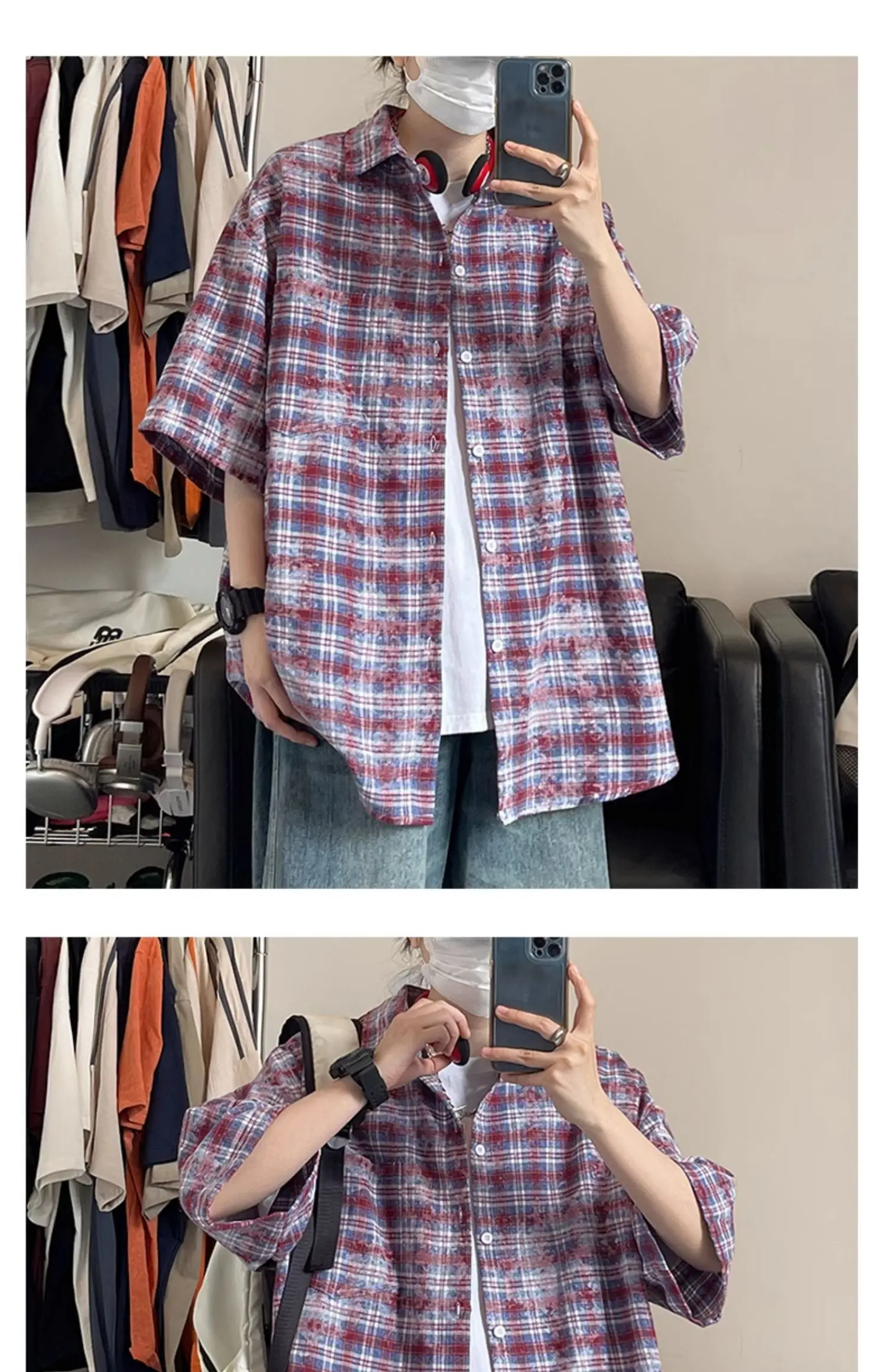 WIAOFELLAS  -  Men Plaid Shirt Spring Summer Thin Luxury Loose Korean Business Shirt Solid Trendy Loose Cargo Shirt Jacket A142