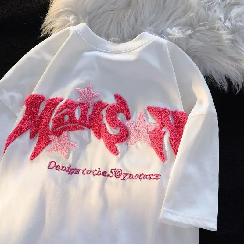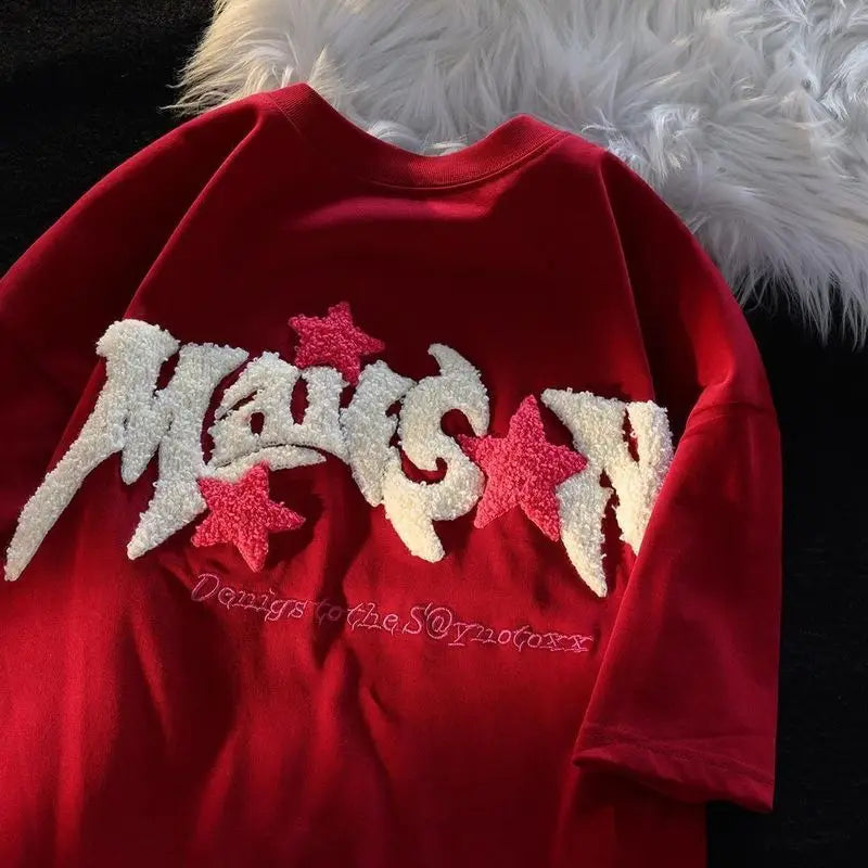 WIAOFELLAS - Men Short Sleeve T Shirts Embroidery Star Patchwork Tees Street Casual Harajuku Oversized Tshirt Hip Hop Summer Tops Unisex