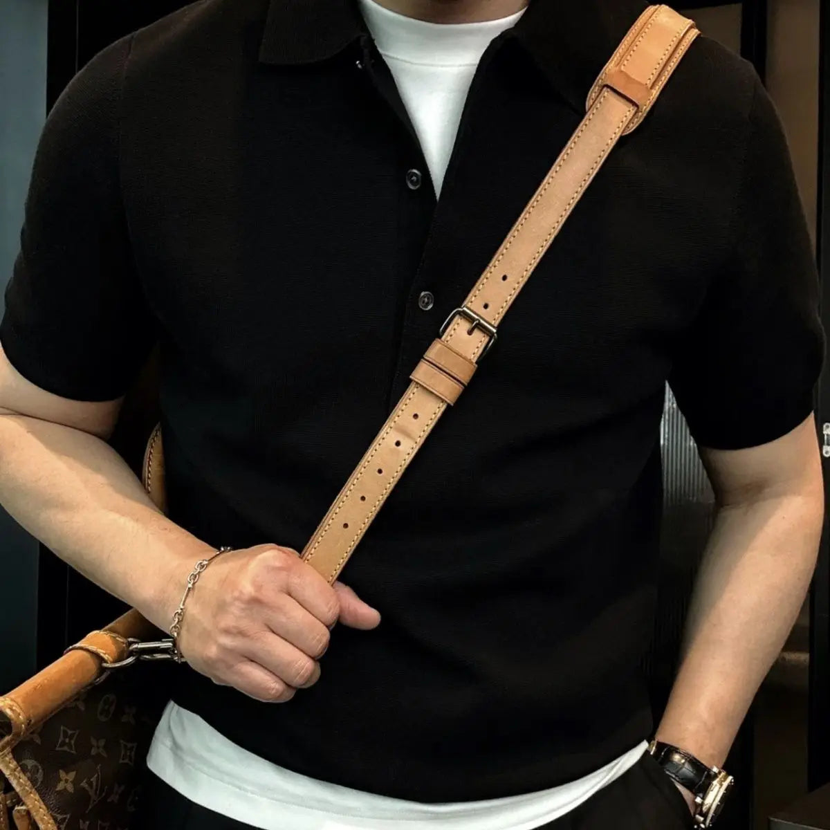 WIAOFELLAS - Men summer fashion urban solid color simple and fashionable 4-button knitted short-sleeved Polo shirt