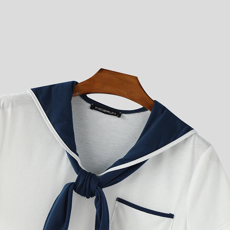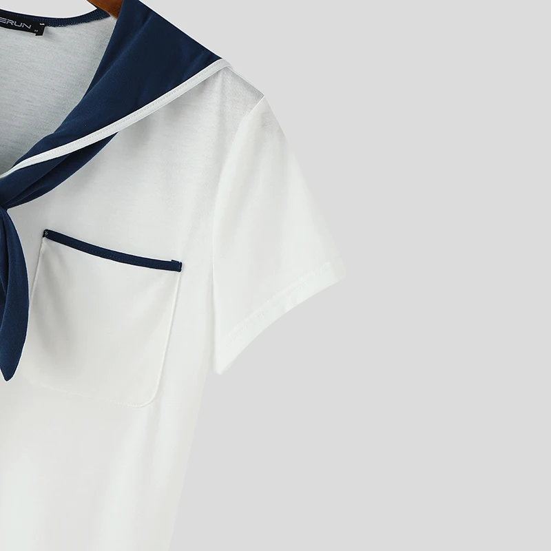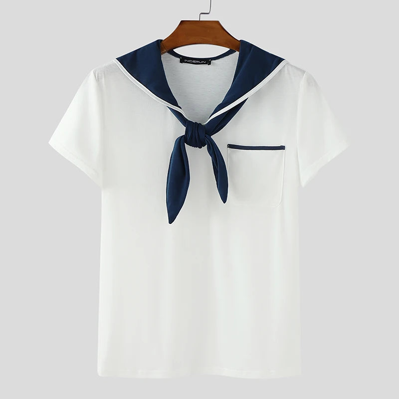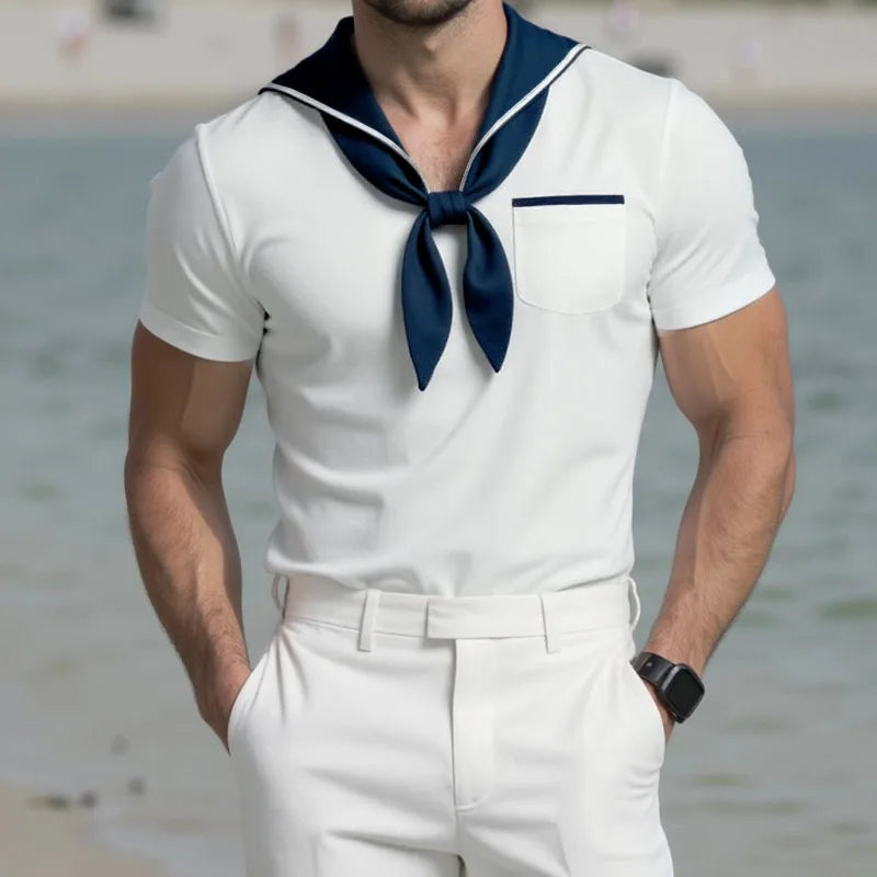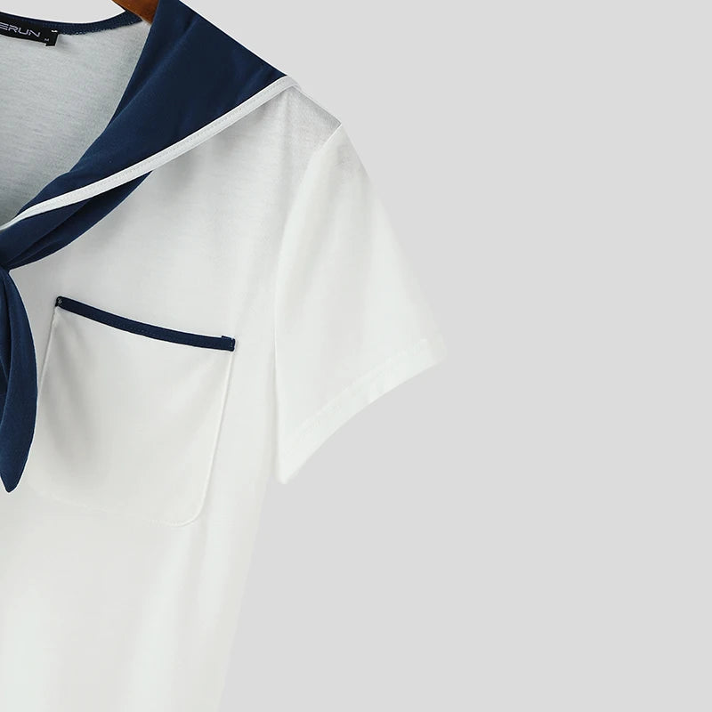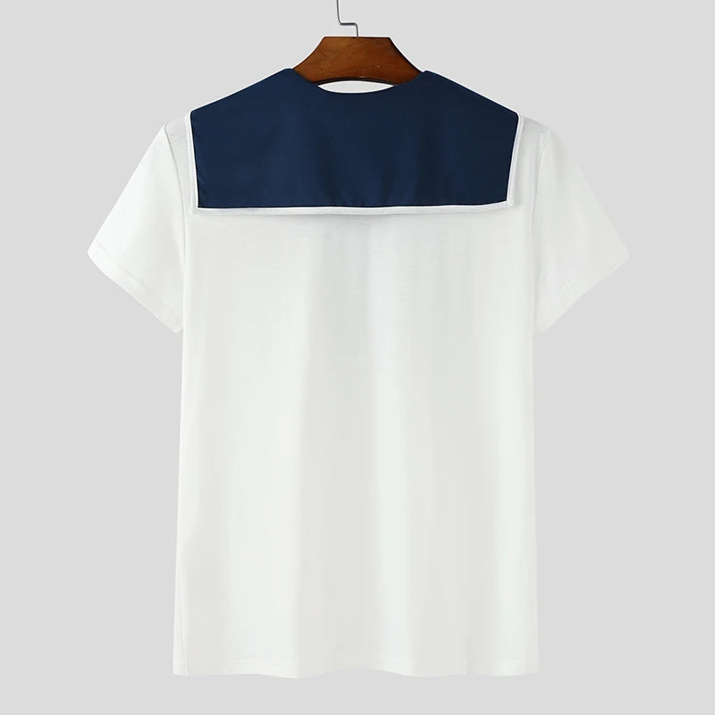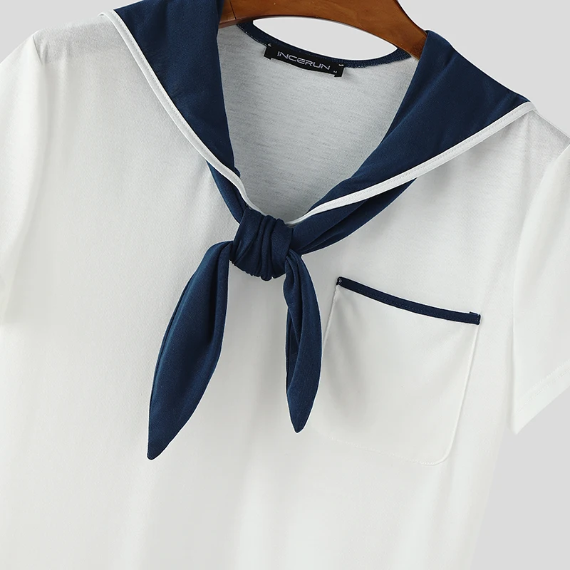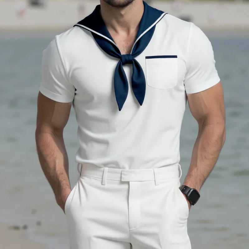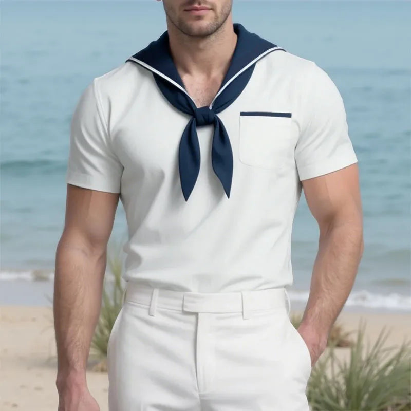 WIAOFELLAS - Men T Shirt Patchwork Summer Navy Collar Short Sleeve Male Tee Tops Streetwear 2025 Pockets Fashion Casual Men Clothing