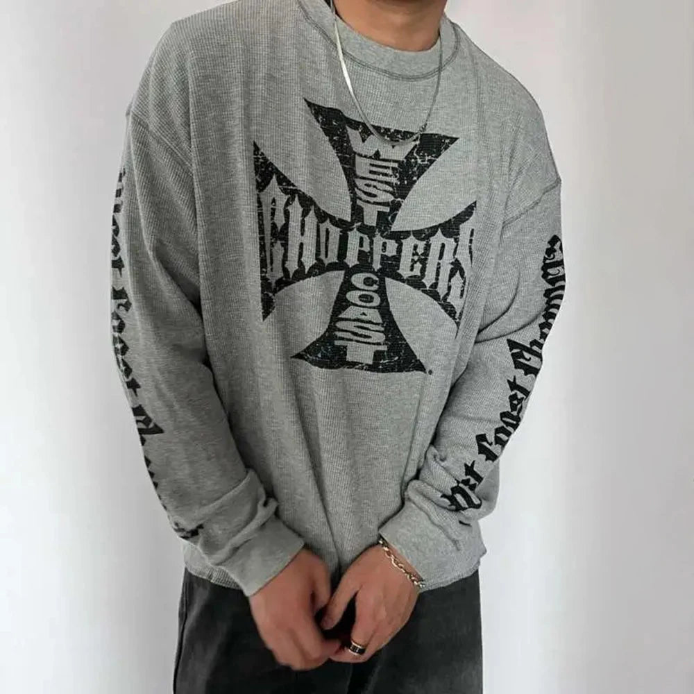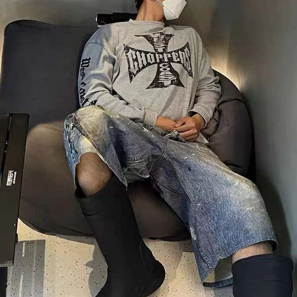WIAOFELLAS - Mens Clothing Spring Fashion Casual Loose Long-Sleeved T-Shirt American Street Trend Printing Retro Hip-Hop Y2k T-Shirt Men