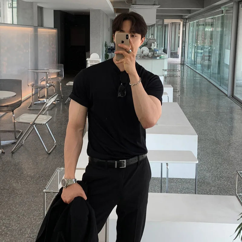 WIAOFELLAS - Men's Compression Short Sleeve T-shirt Fitness Running Basketball Gym Sportswear Slim Fit Close-fitting Black Sports Tops B183