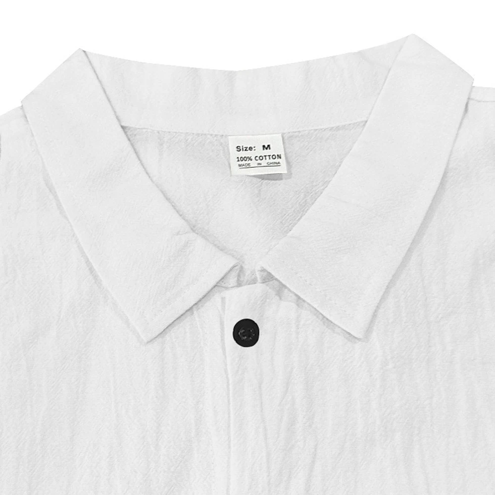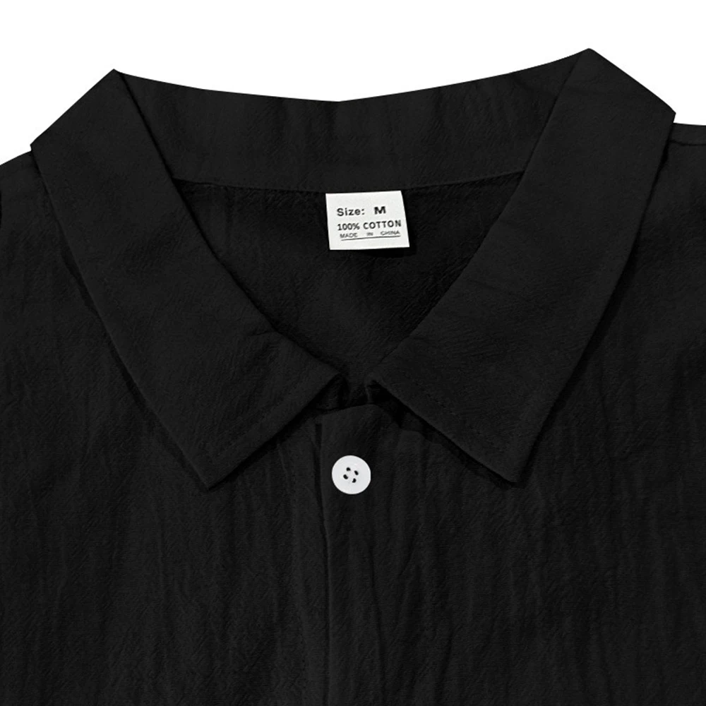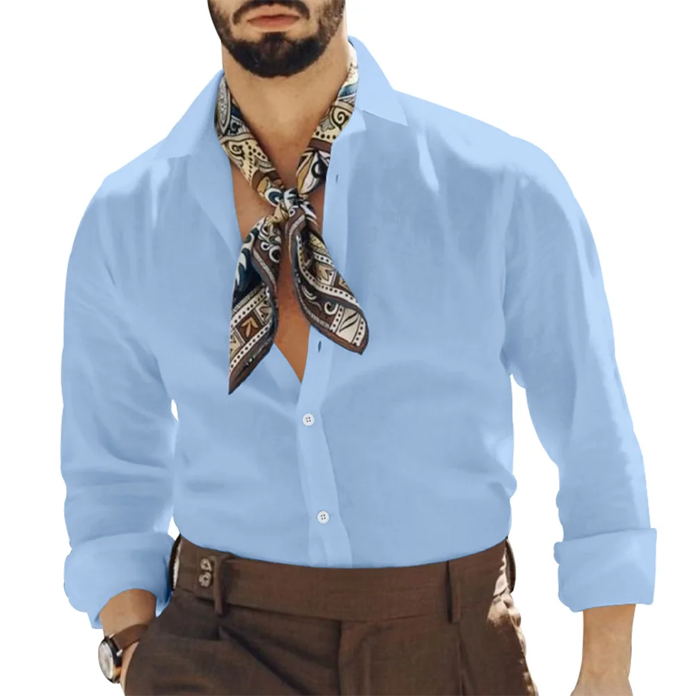 WIAOFELLAS - Mens Fashion Street Solid Color Cotton And Linen Y2k Tops 2025 Spring Summer New Casual Lapel Solid Color Long-Sleeved Shirt Men