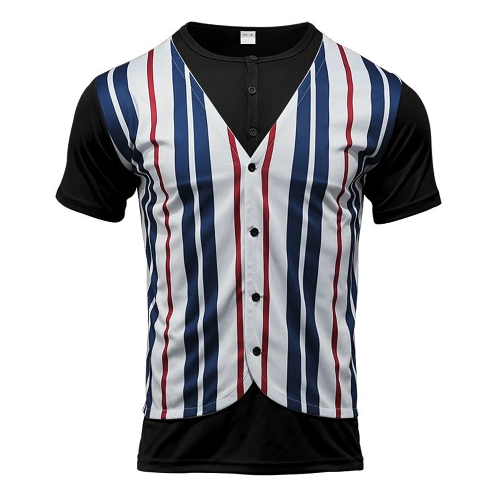 WIAOFELLAS - Mens Fashion Trend British Style Y2k Tops 2025 Summer New Single-Breasted Fake Two-Piece Short-Sleeved Shirts Mens Clothing