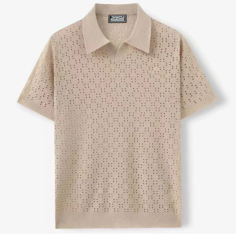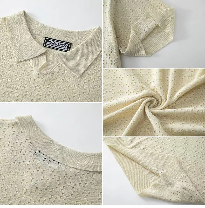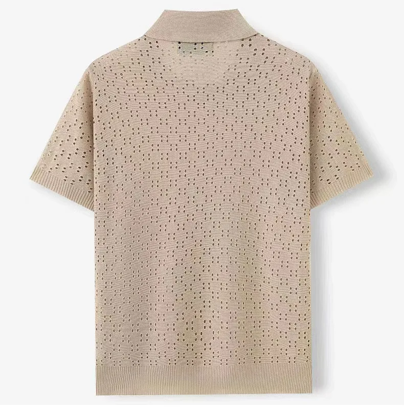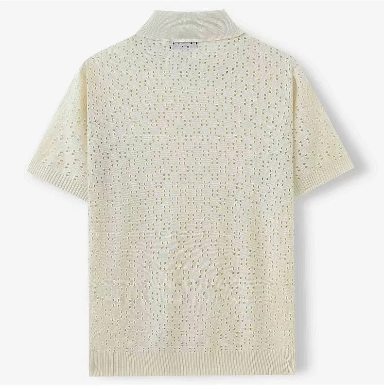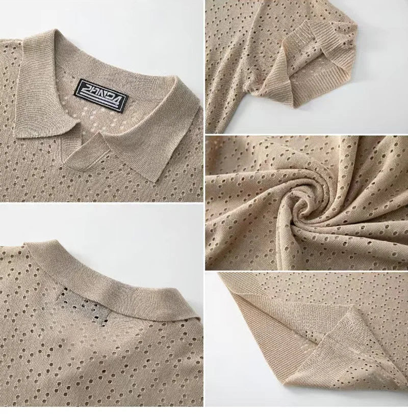WIAOFELLAS  -  Men's Light Luxury Button-down Leisure Knitted Polo Shirt Retro Solid Hollow Out Short Sleeve Chic Fashion Man Jacquard Knitwear