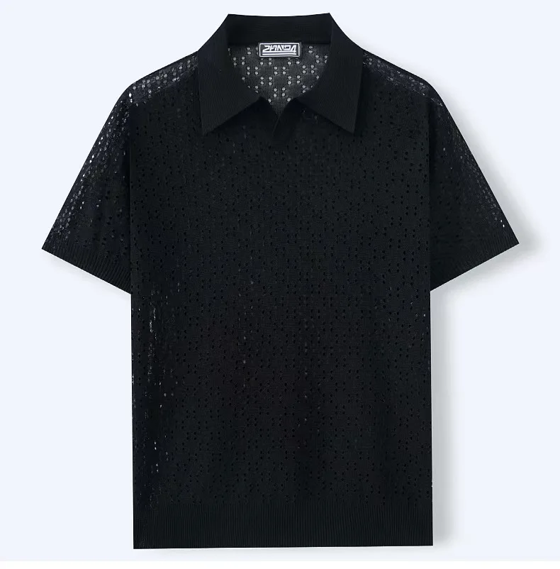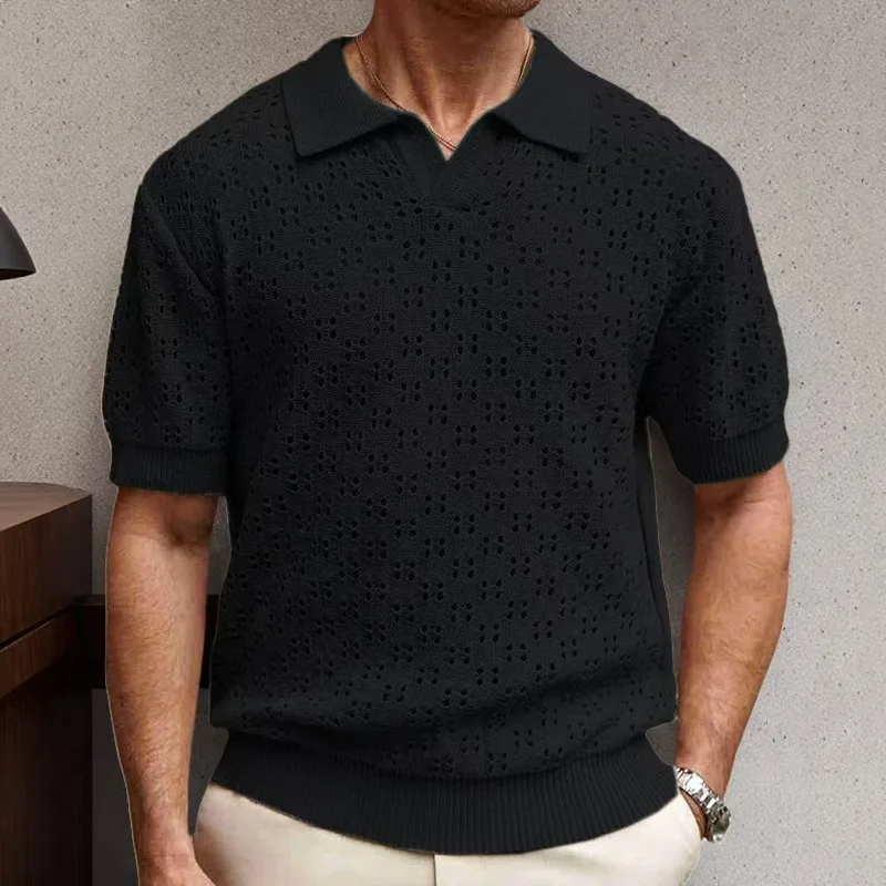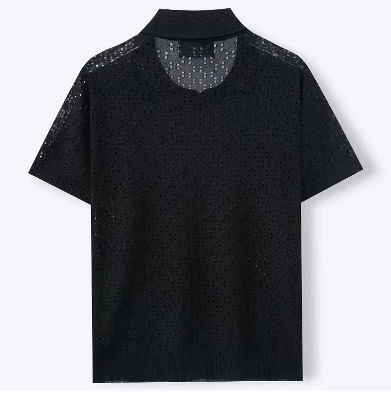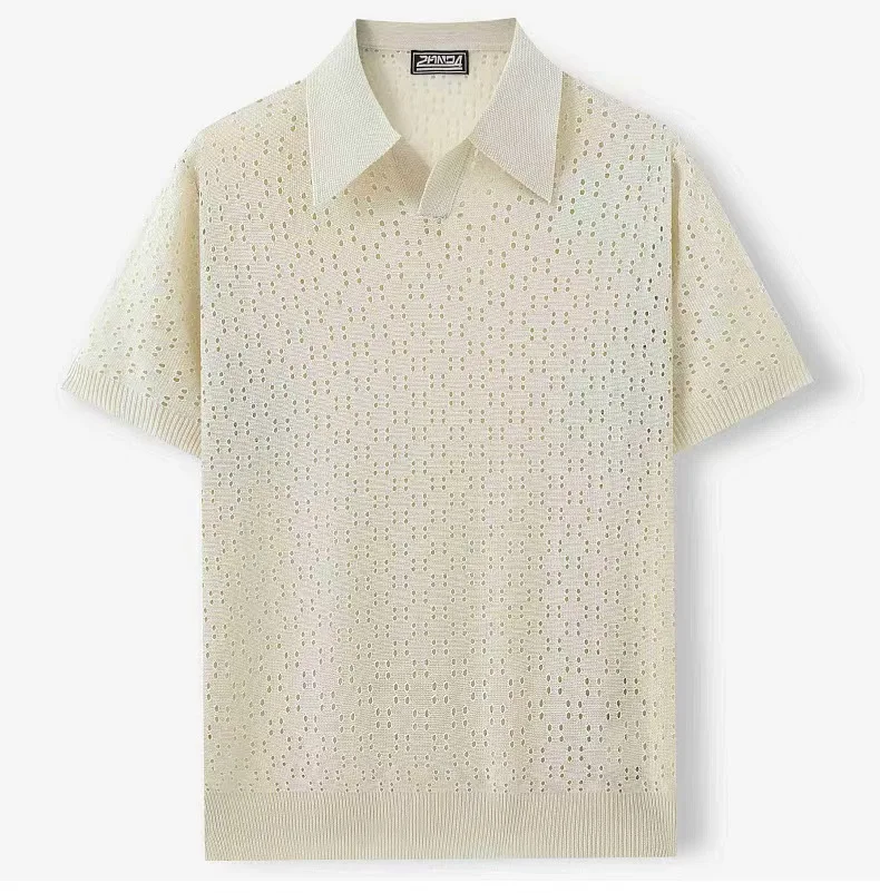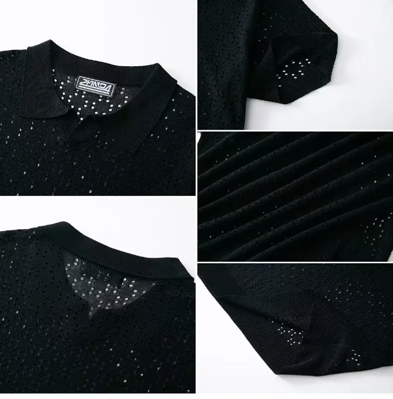 WIAOFELLAS  -  Men's Light Luxury Button-down Leisure Knitted Polo Shirt Retro Solid Hollow Out Short Sleeve Chic Fashion Man Jacquard Knitwear