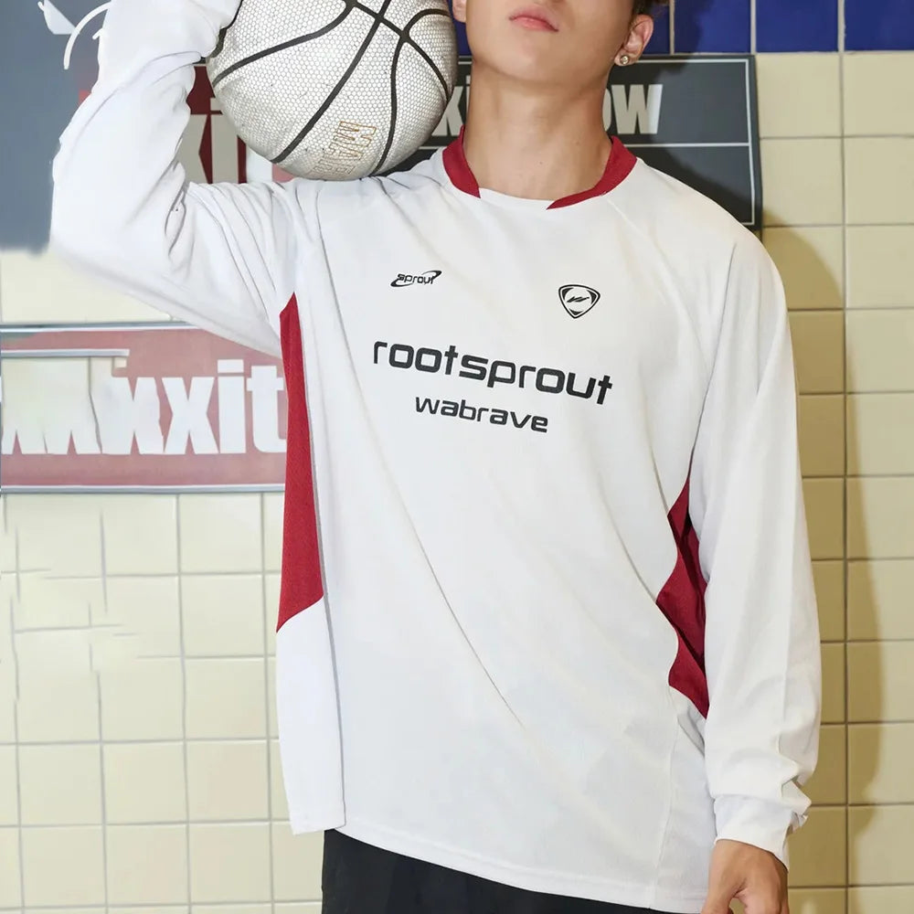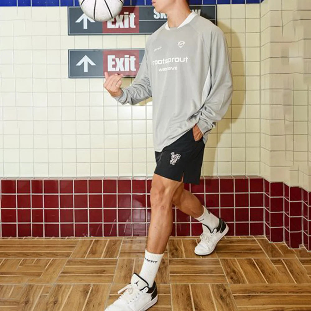 WIAOFELLAS - Mens Long Sleeve Top Splicing Sports Basketball T Shirts Summer Trend Running Fitness Slim Fit Mesh Quick-Dry Tops Mens Clothing