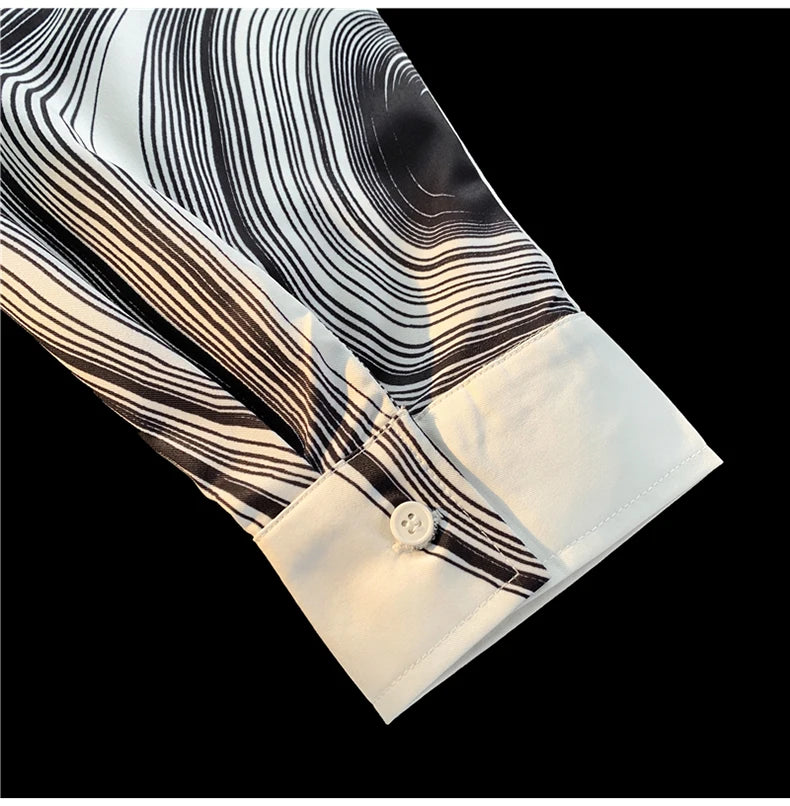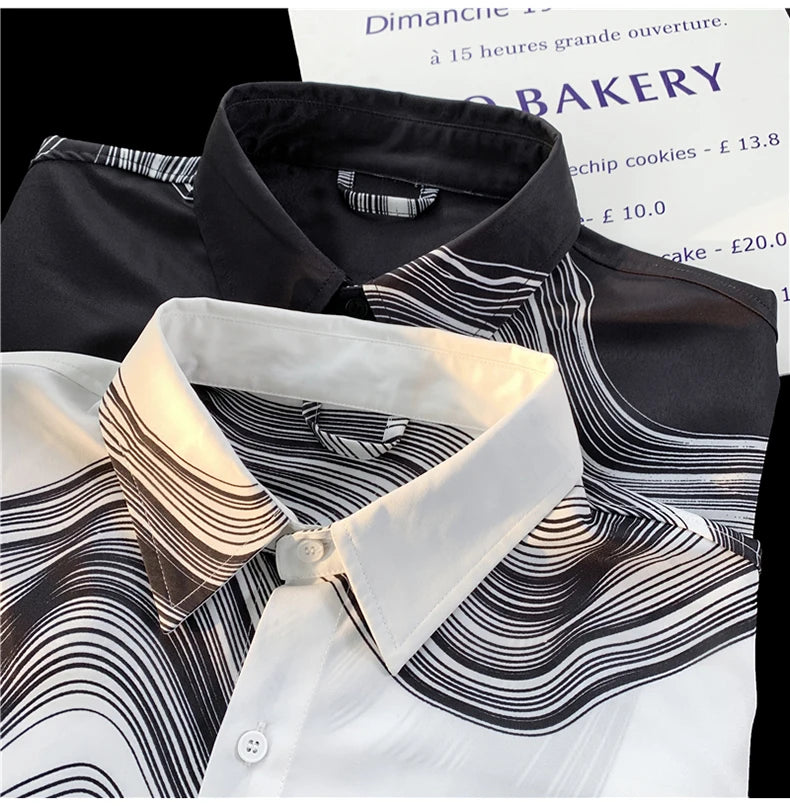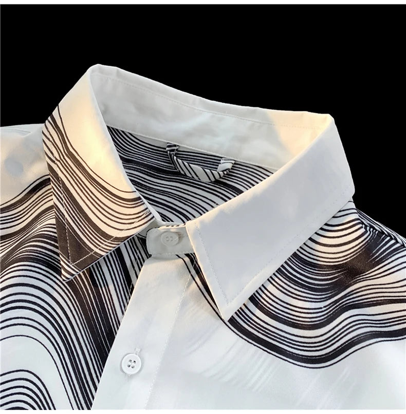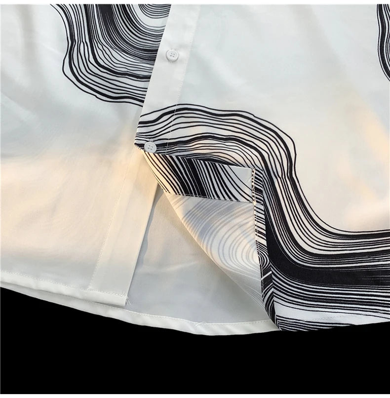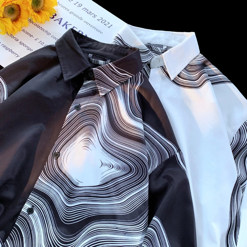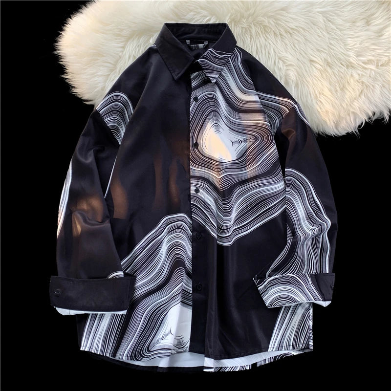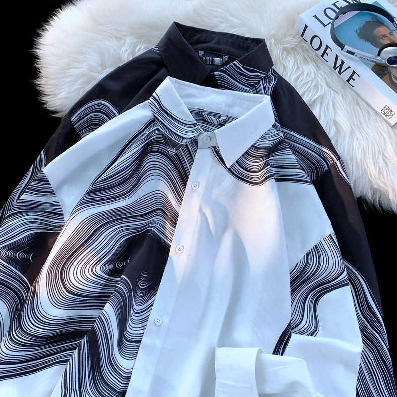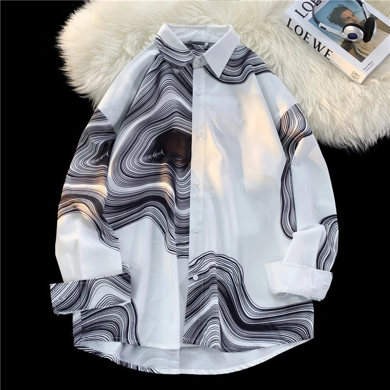 WIAOFELLAS - Men's Long Sleeved Shirts Print Baggy Single Breasted Blouses Korean Street Spring Autumn Coat Male Casual Shirt