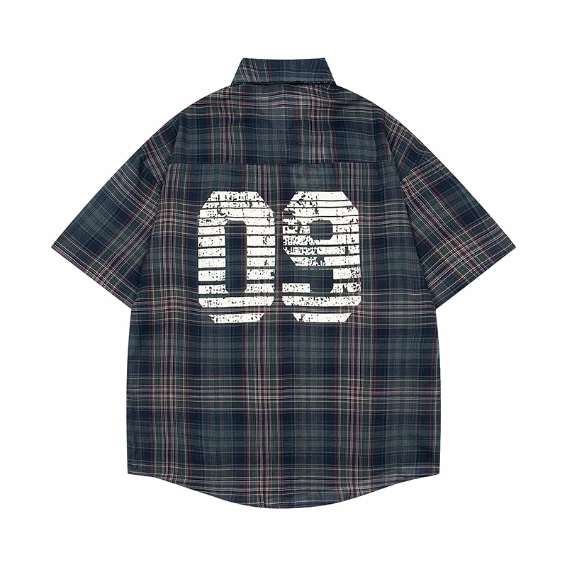 WIAOFELLAS - Men'S Loose Plaid Short Sleeved Shirts Casual Linen Button Down Oversized Shirt Harajuku Luxury Comfort Brand Male Shirts