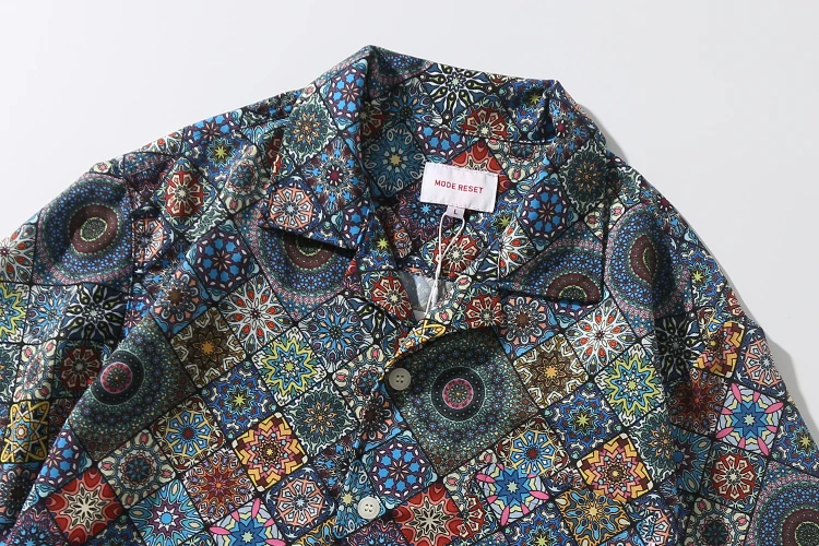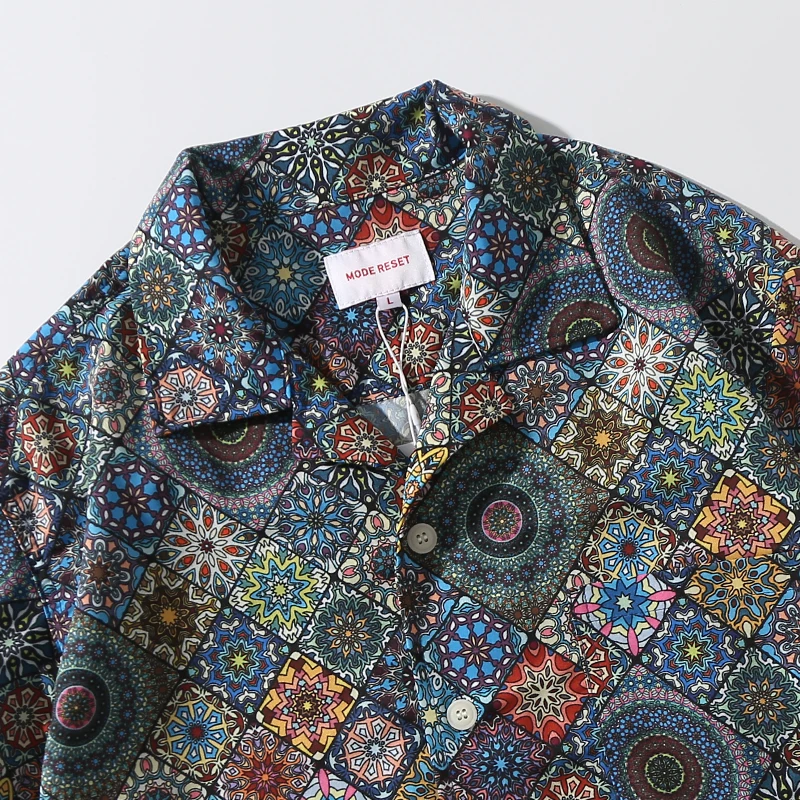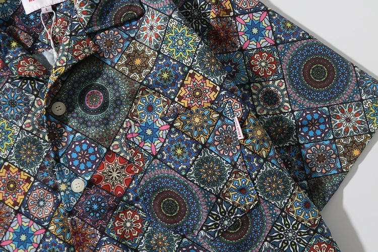 WIAOFELLAS - Men's retro Bright Kaleidoscope summer print Hawaiian shirt short sleeve Cuban collar