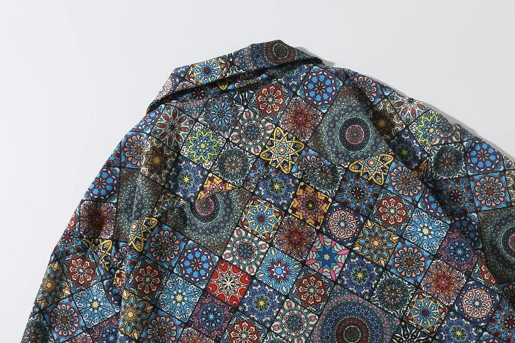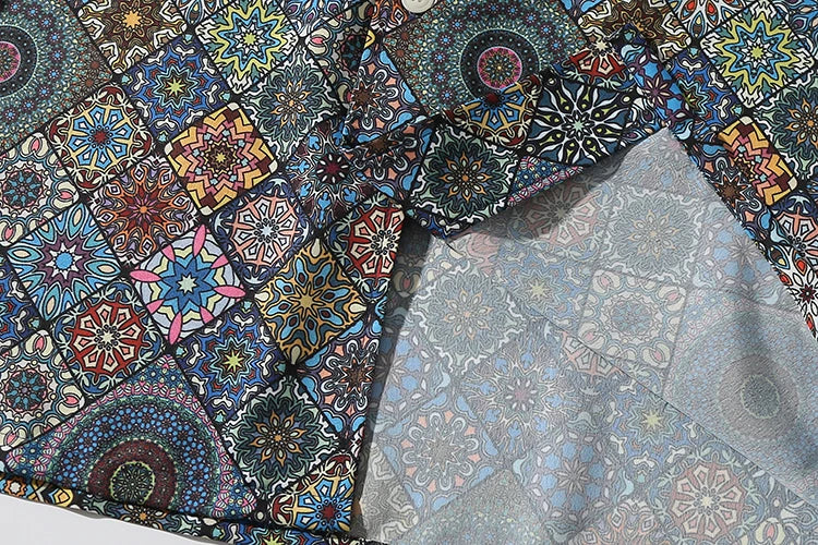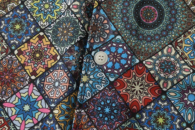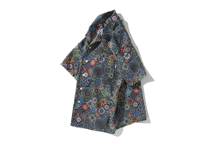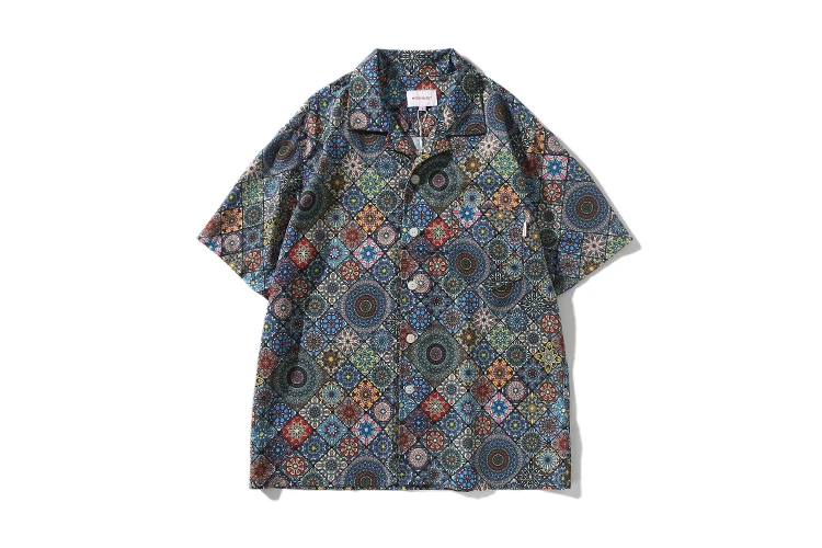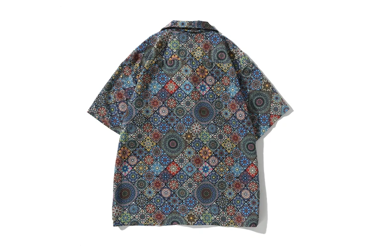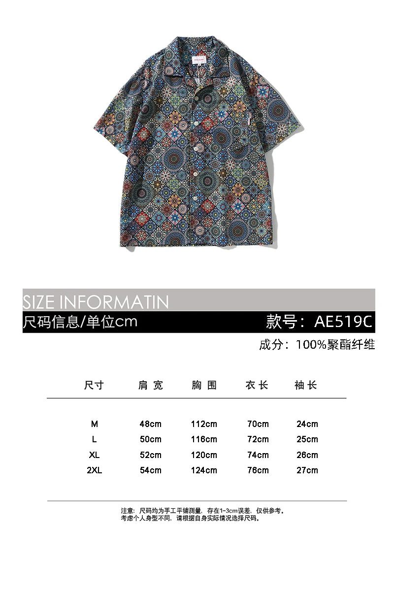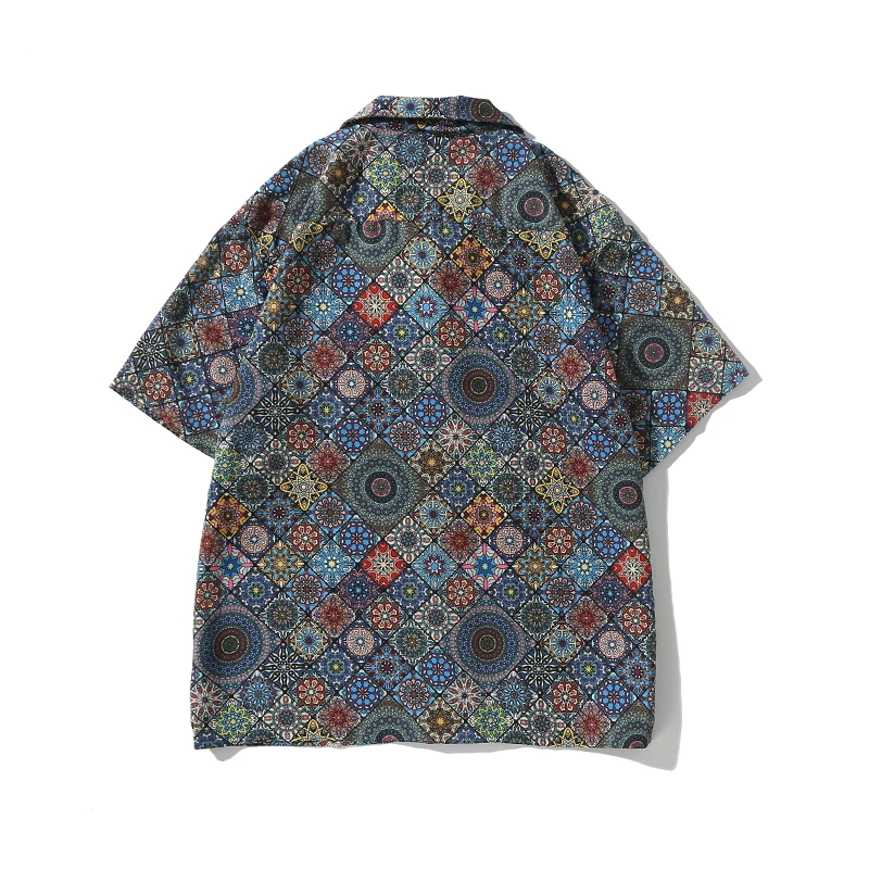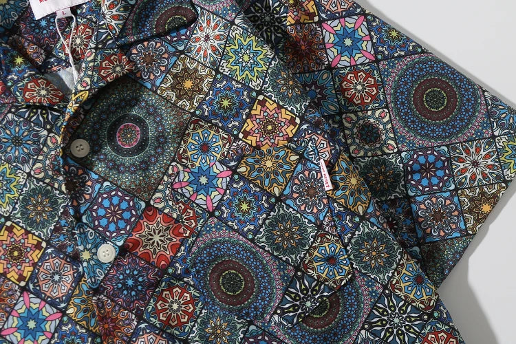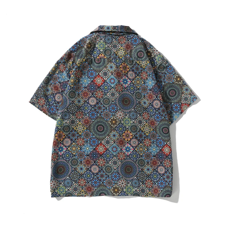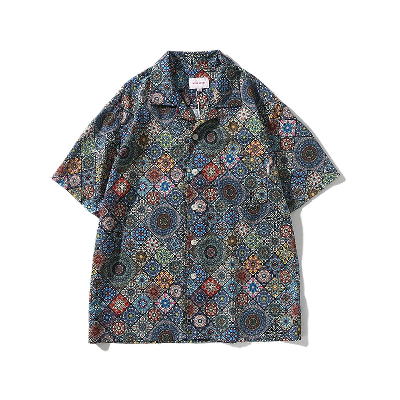 WIAOFELLAS  -  Men's retro Bright Kaleidoscope summer print Hawaiian shirt short sleeve Cuban collar