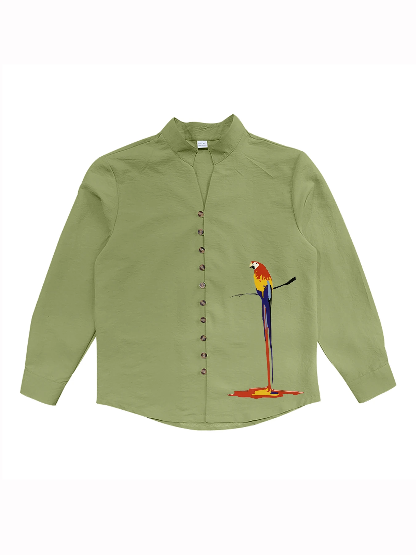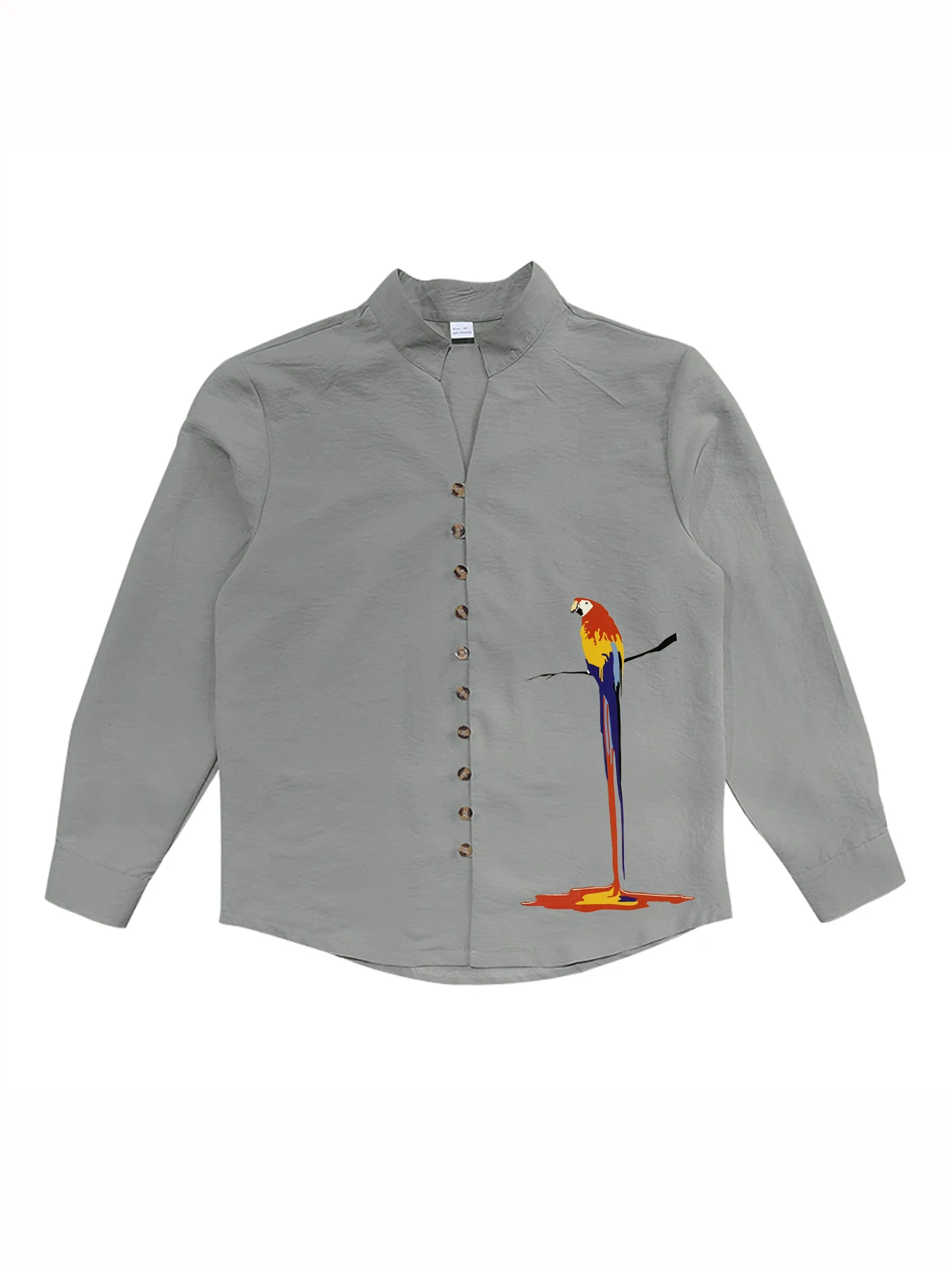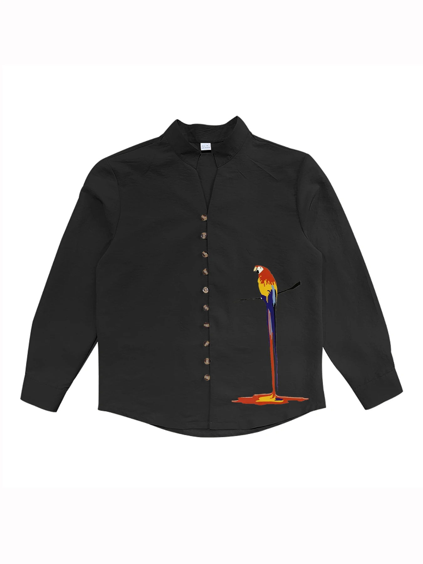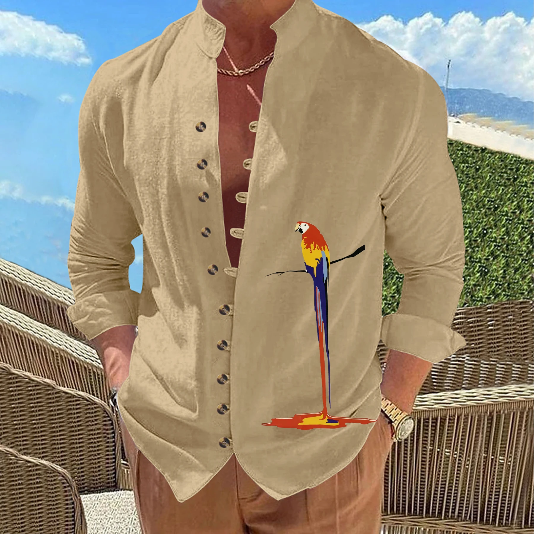 WIAOFELLAS - Men's Retro Style Long-Sleeved Shirt Stand-Up Collar Button up Parrot 3D Print Spring Autumn Fashionable Casual Shirt