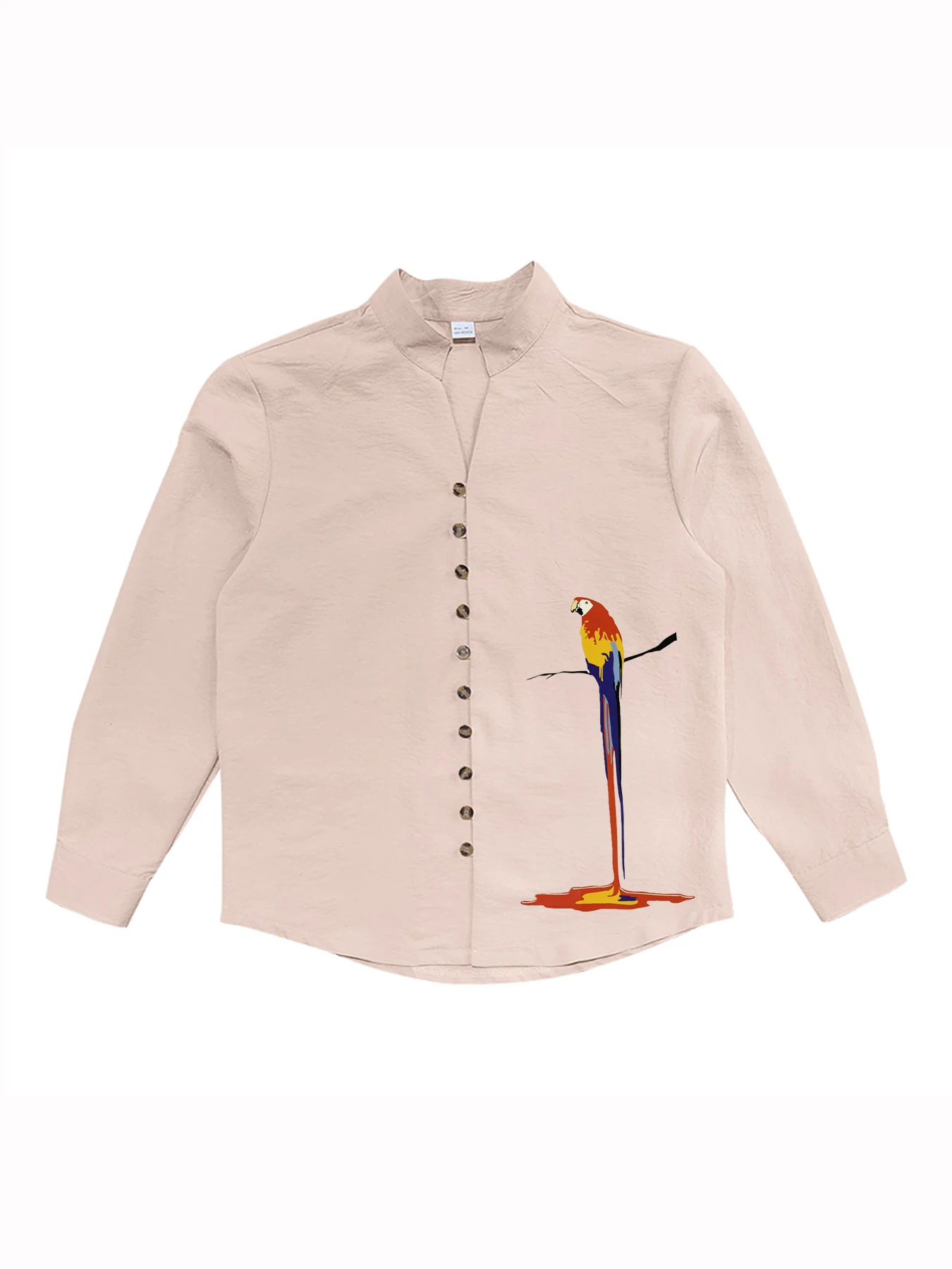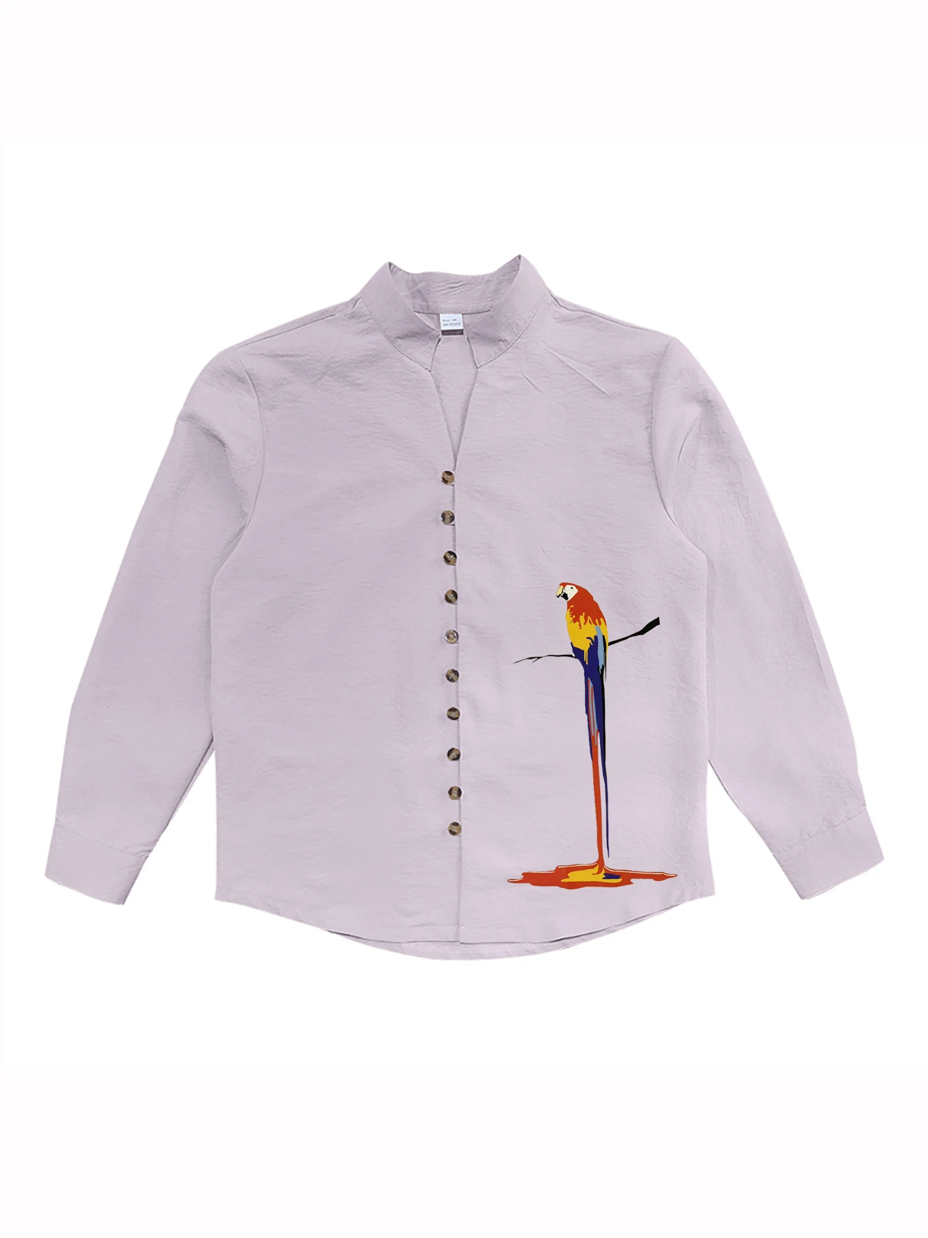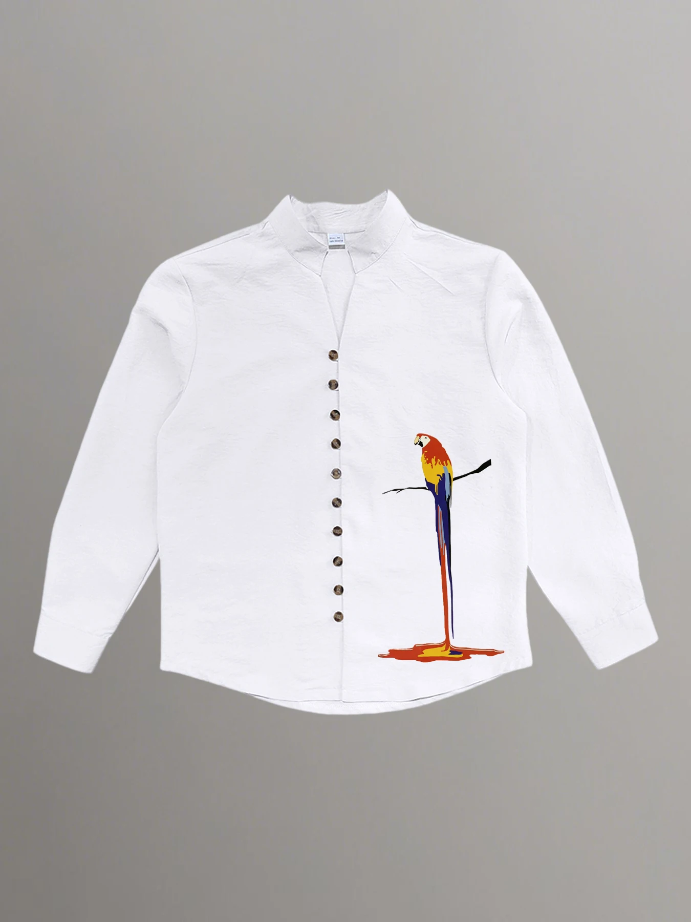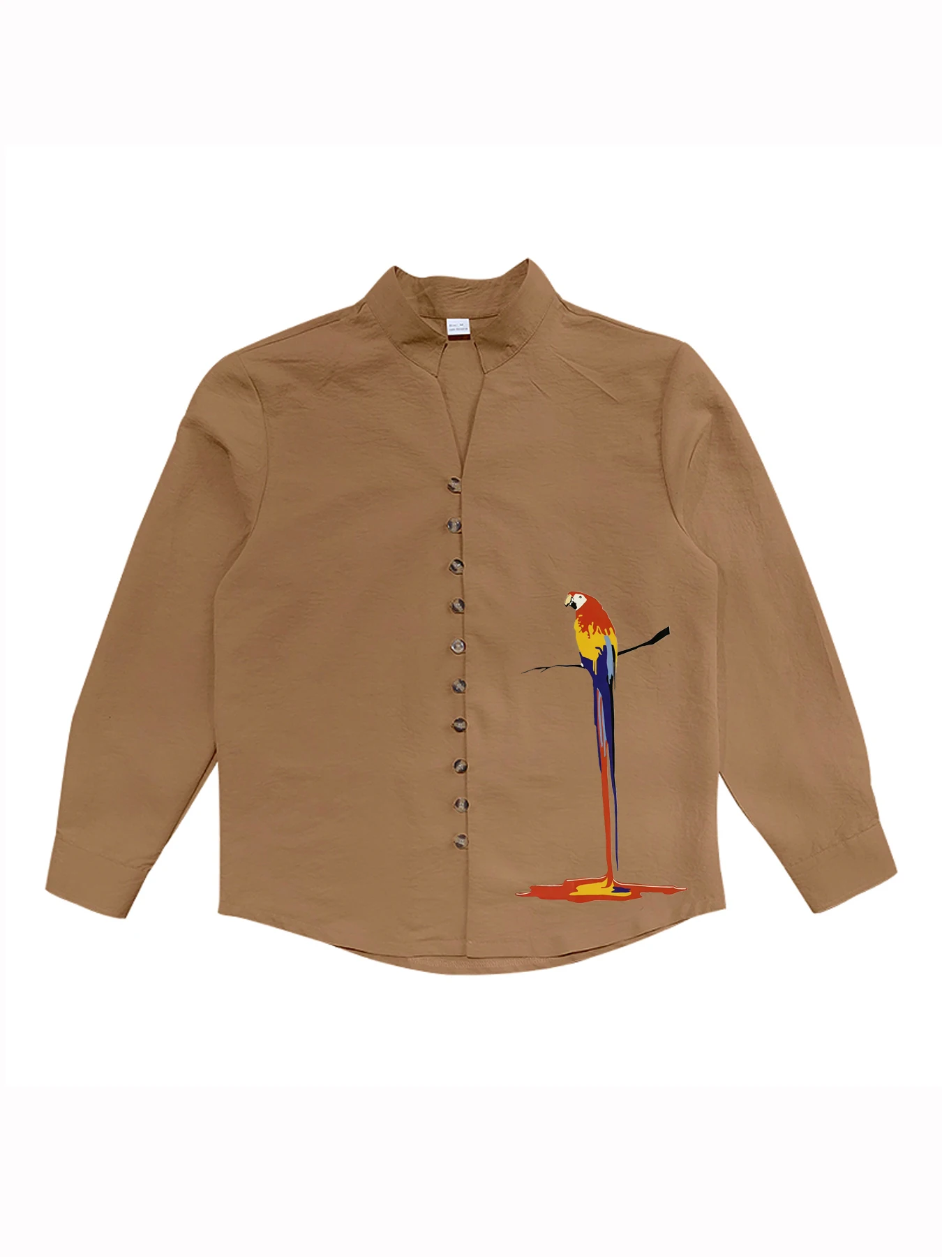 WIAOFELLAS - Men's Retro Style Long-Sleeved Shirt Stand-Up Collar Button up Parrot 3D Print Spring Autumn Fashionable Casual Shirt