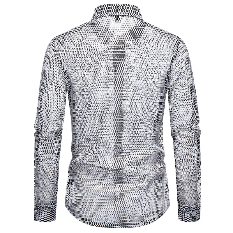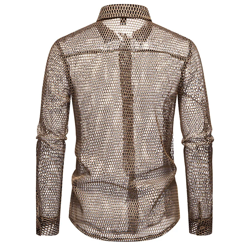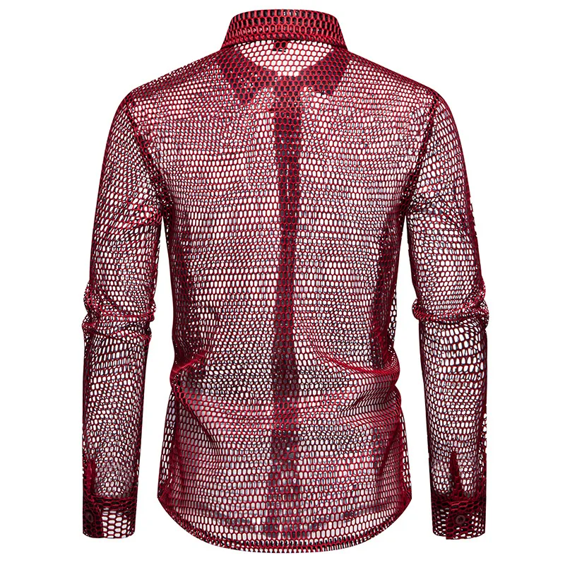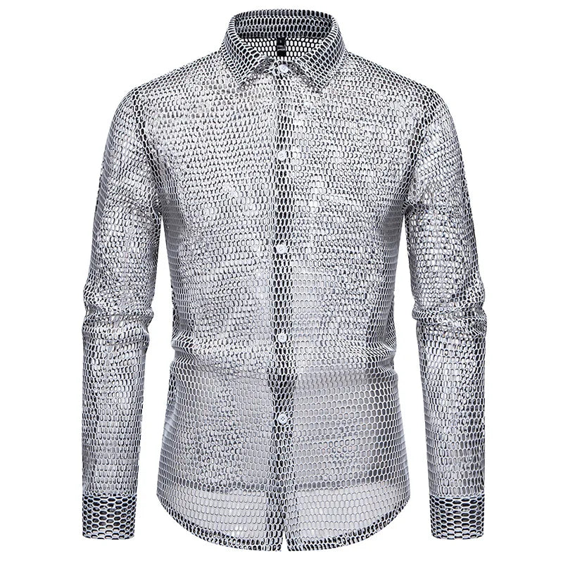 WIAOFELLAS - Mens Sexy See Through Blouse Shirt Men Long Sleeve Casual Button Down Shirts Nightclub Party Social Transparent Shirt Male XXL