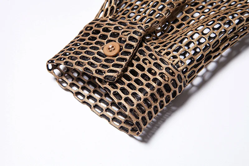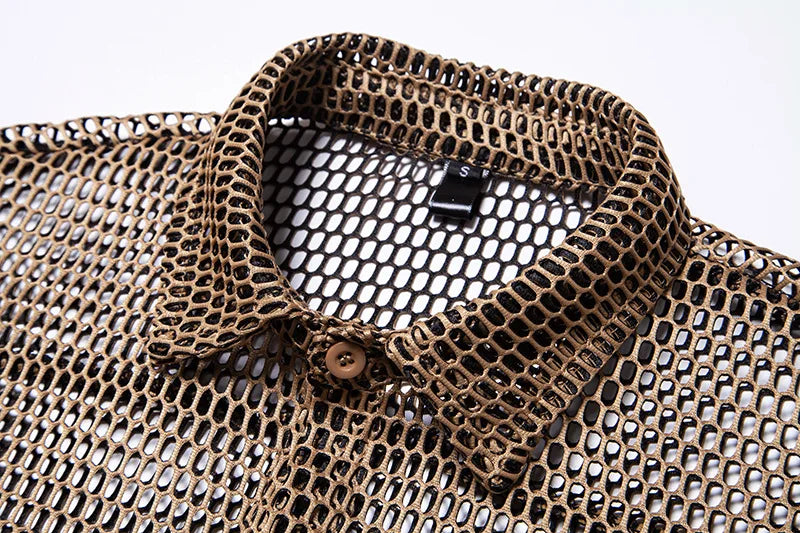 3.Most trendy button down shirt design in mesh style,long sleeve,button closure.