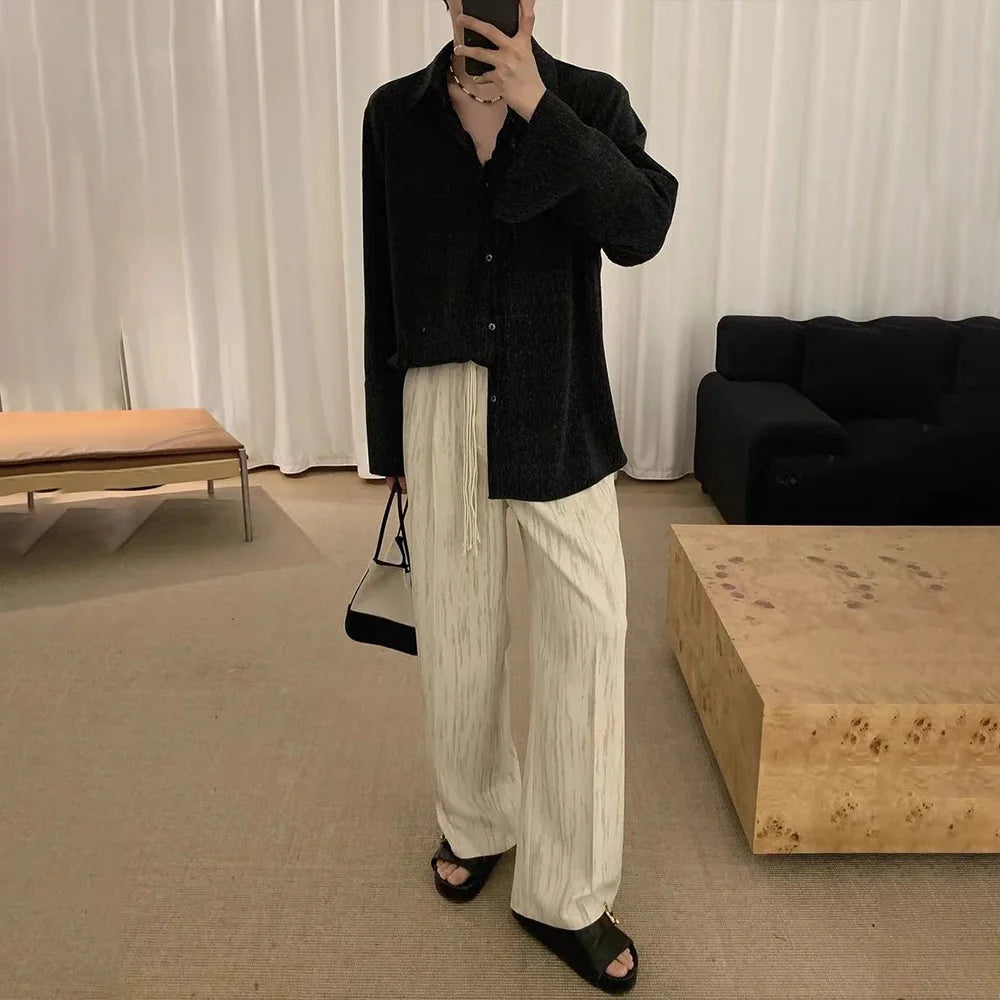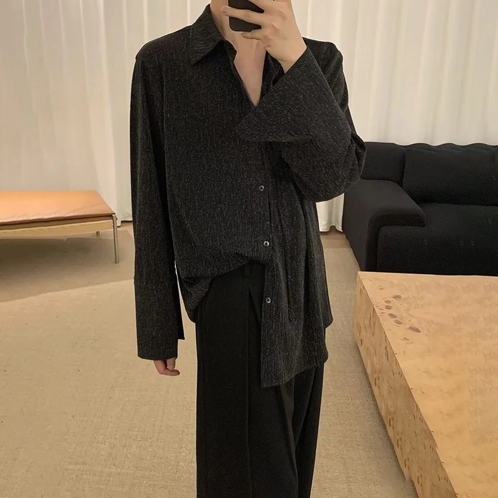 WIAOFELLAS - Men's Shirt Korean Textured Causal Blazer Elegant Bright Wire Jackets Casual Versatile Party Wear Banquet Dressy Men's Clothing
