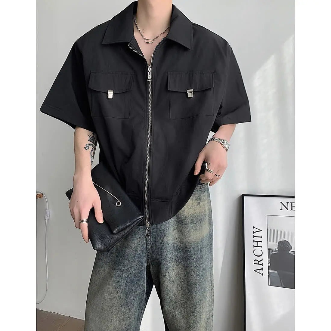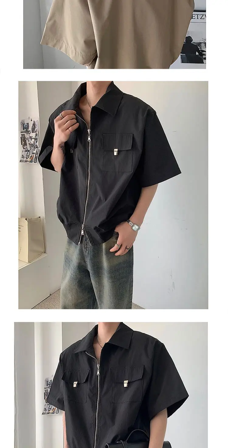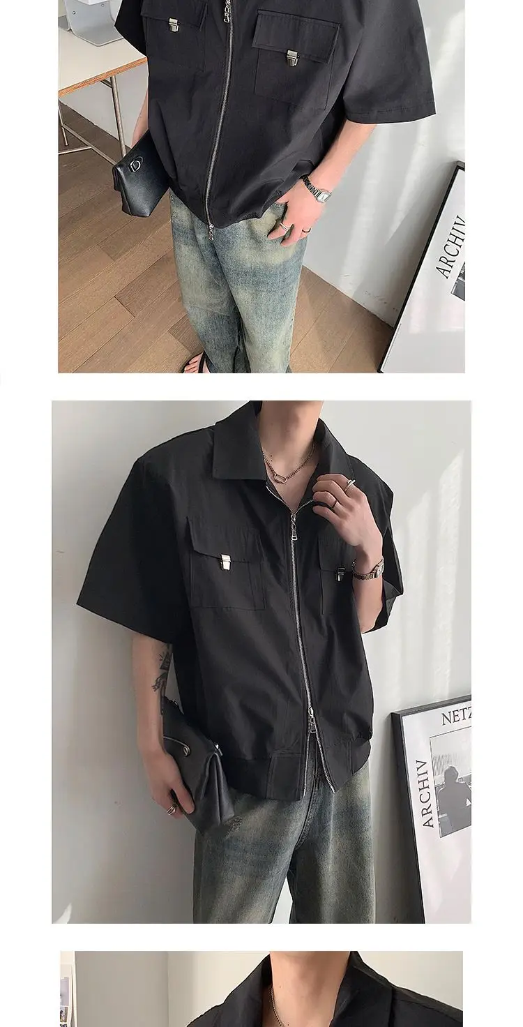 WIAOFELLAS  -  Mens Shirts Summer New Cool Style Designed High-end Niche Fashionable Americian Street Loose Casual Short-sleeved Shirt