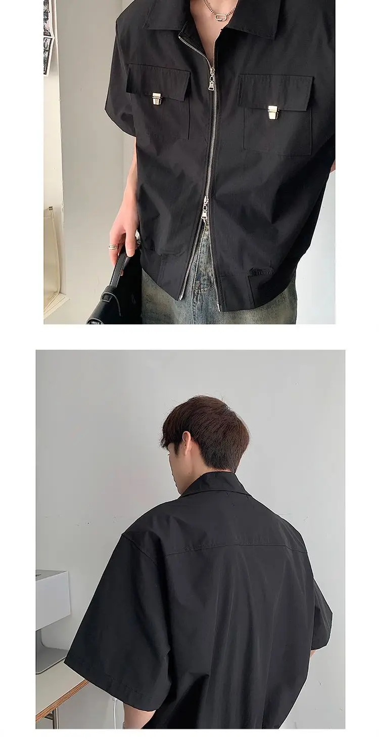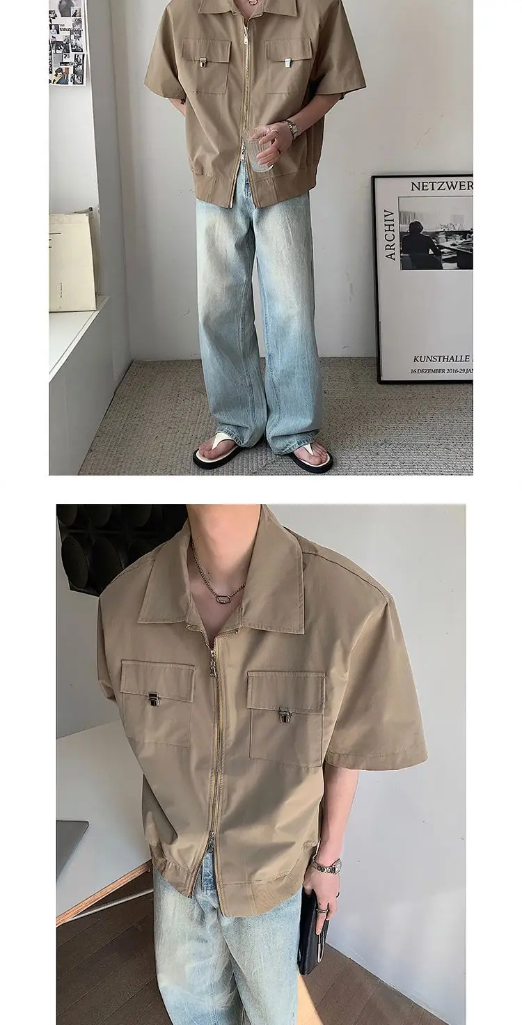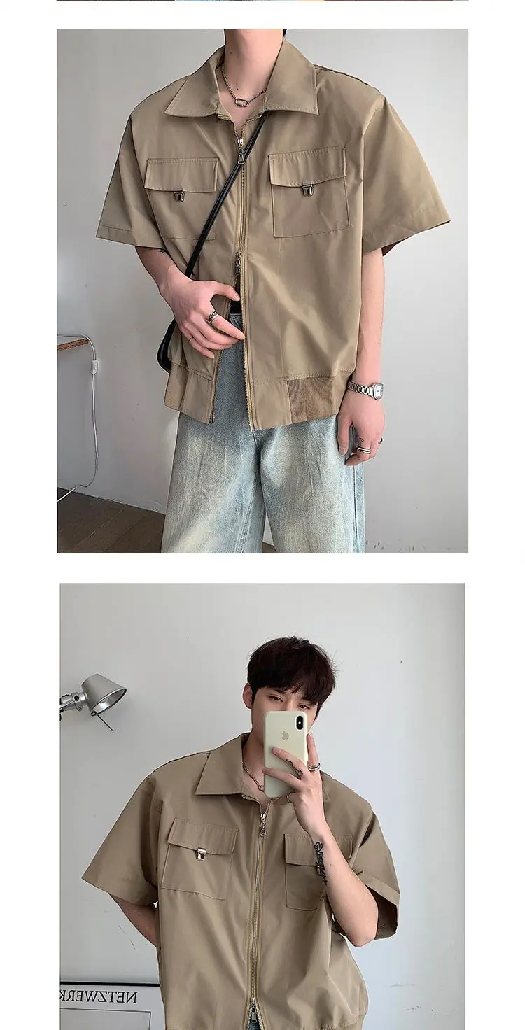 WIAOFELLAS - Mens Shirts Summer New Cool Style Designed High-end Niche Fashionable Americian Street Loose Casual Short-sleeved Shirt
