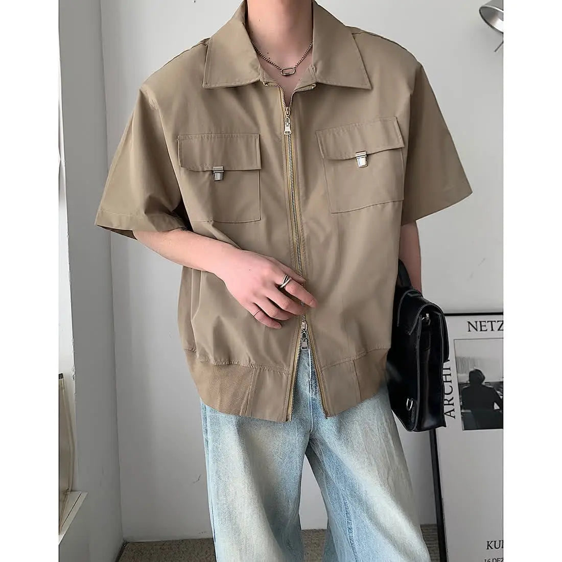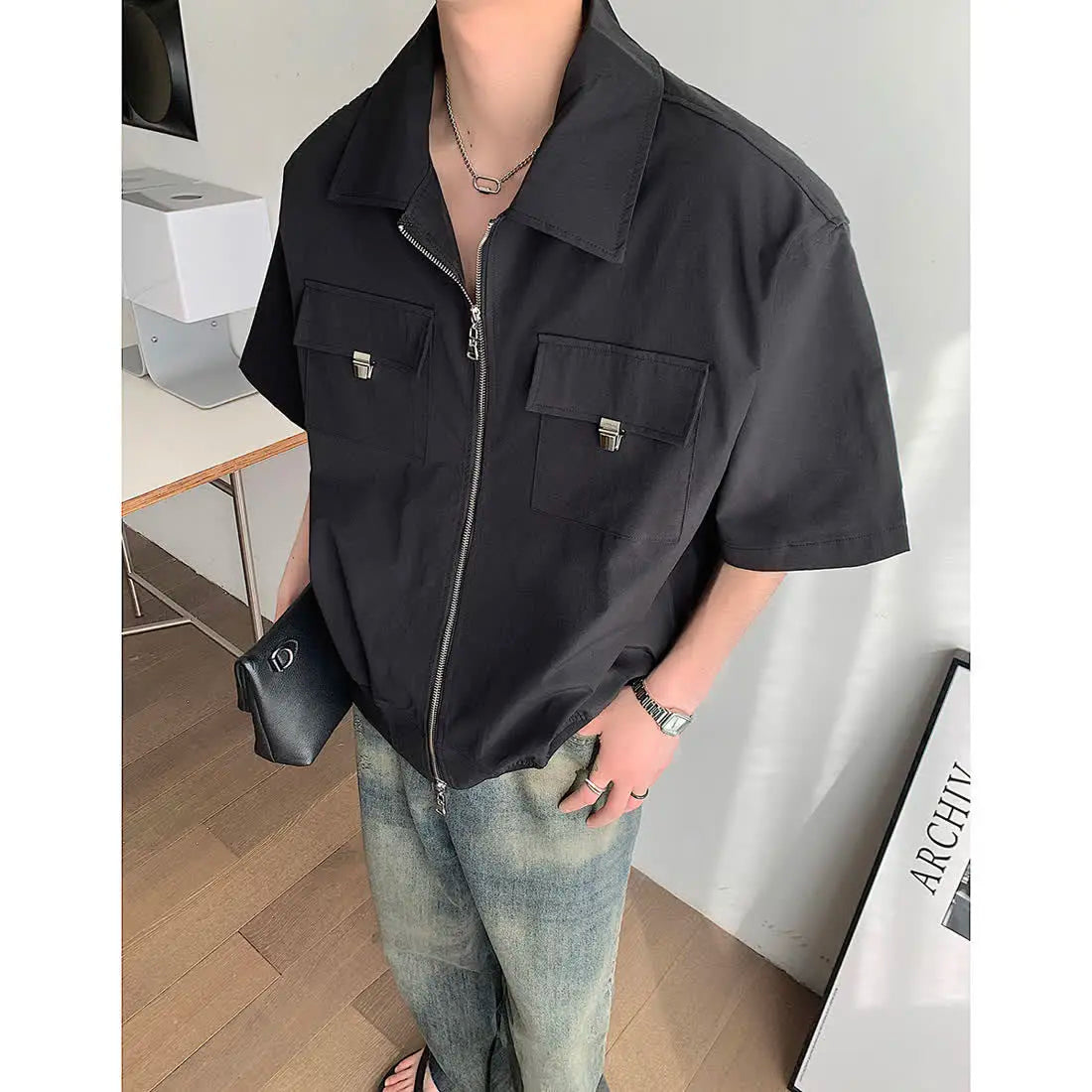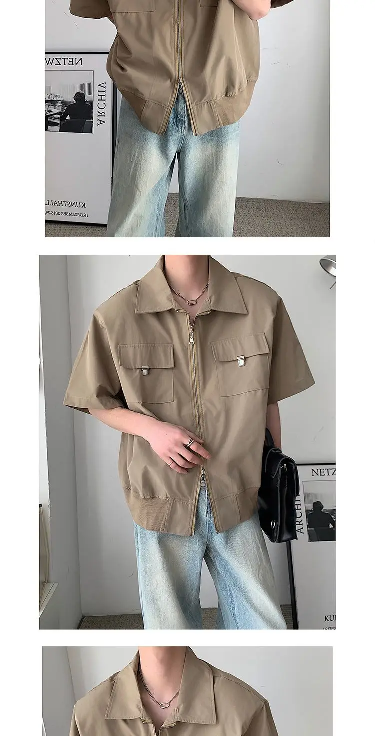 WIAOFELLAS - Mens Shirts Summer New Cool Style Designed High-end Niche Fashionable Americian Street Loose Casual Short-sleeved Shirt