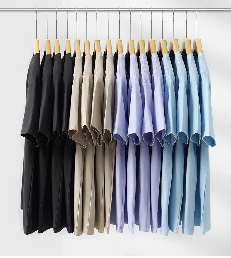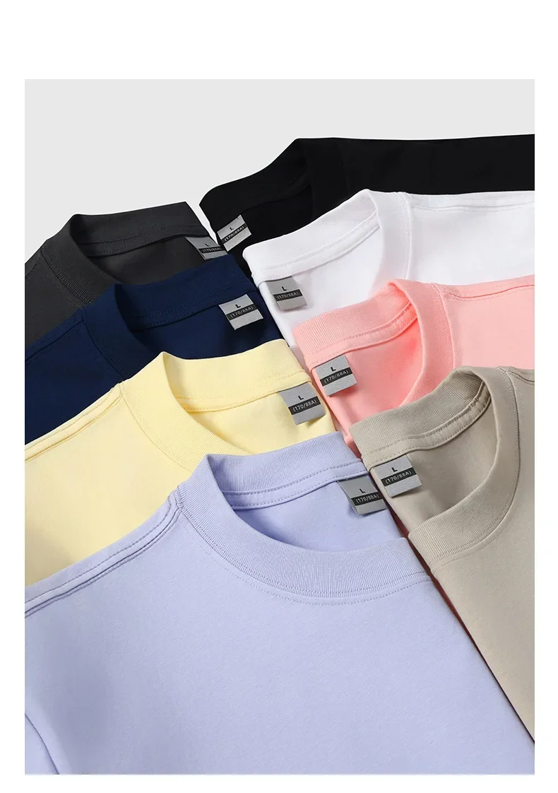 WIAOFELLAS - Men's Short Sleeve T Shirt Cool Solona Solid Color Ice Silk White T Summer Basic Heavy 230g