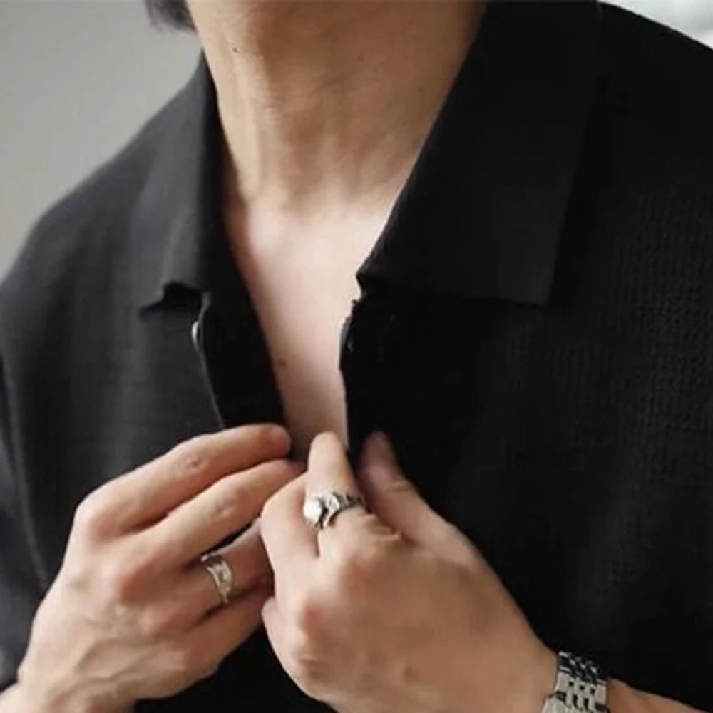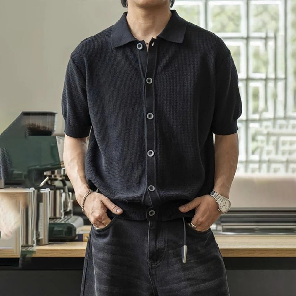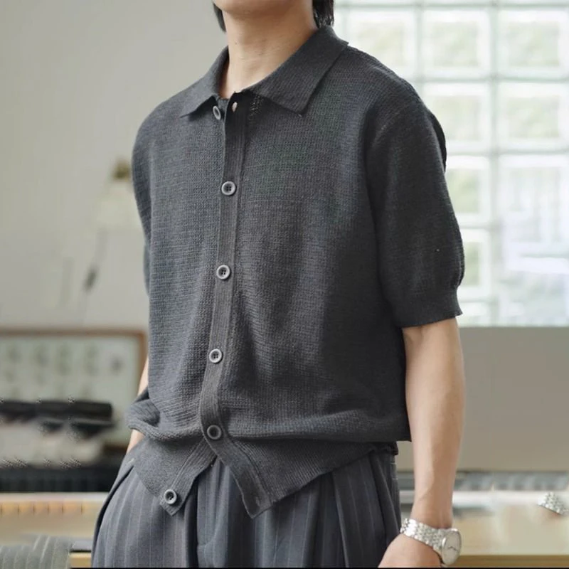 WIAOFELLAS - Men's Solid Color Knitted Short-Sleeved Shirt American Retro Fashion Trend Loose Casual Simple Breathable Niche New Men's Tops