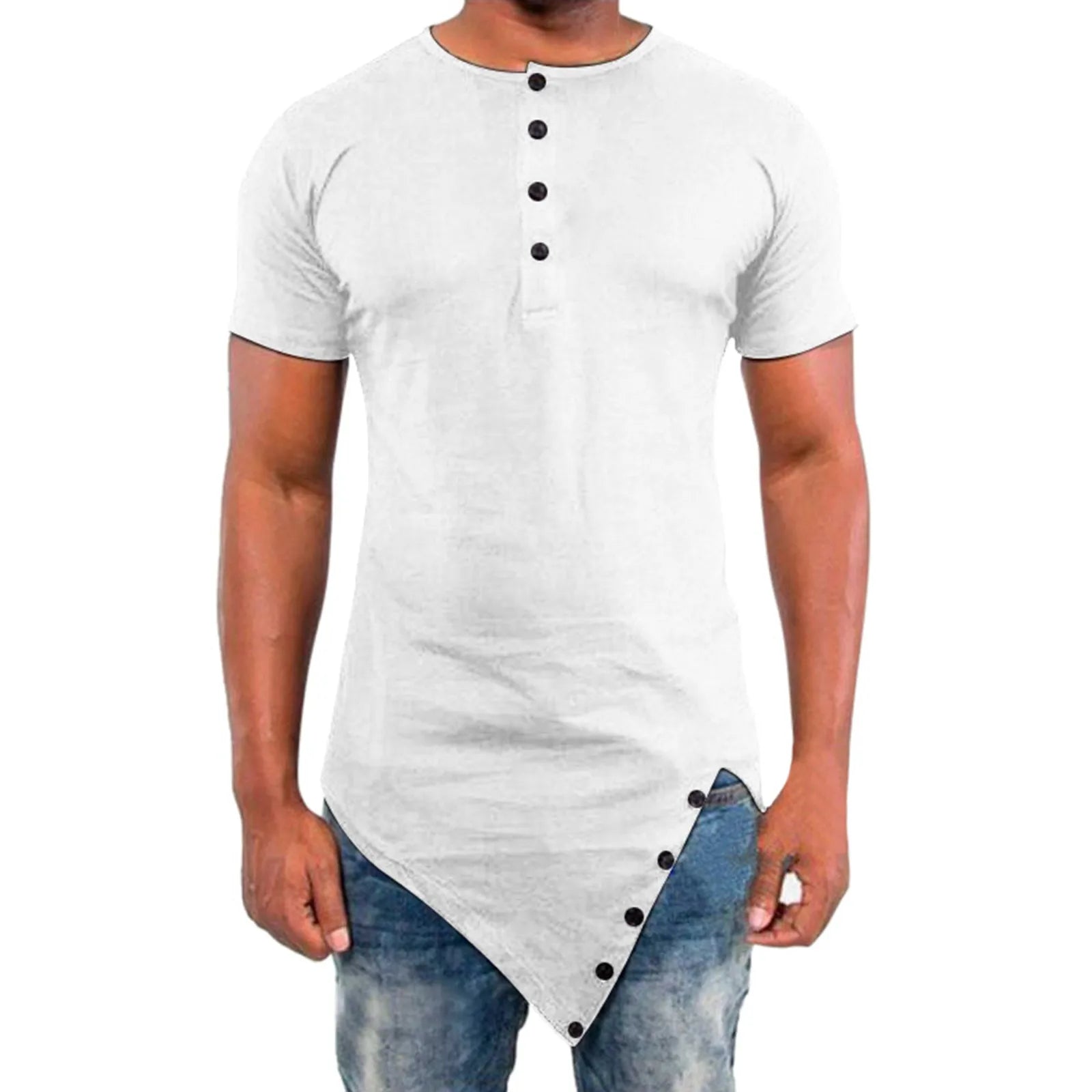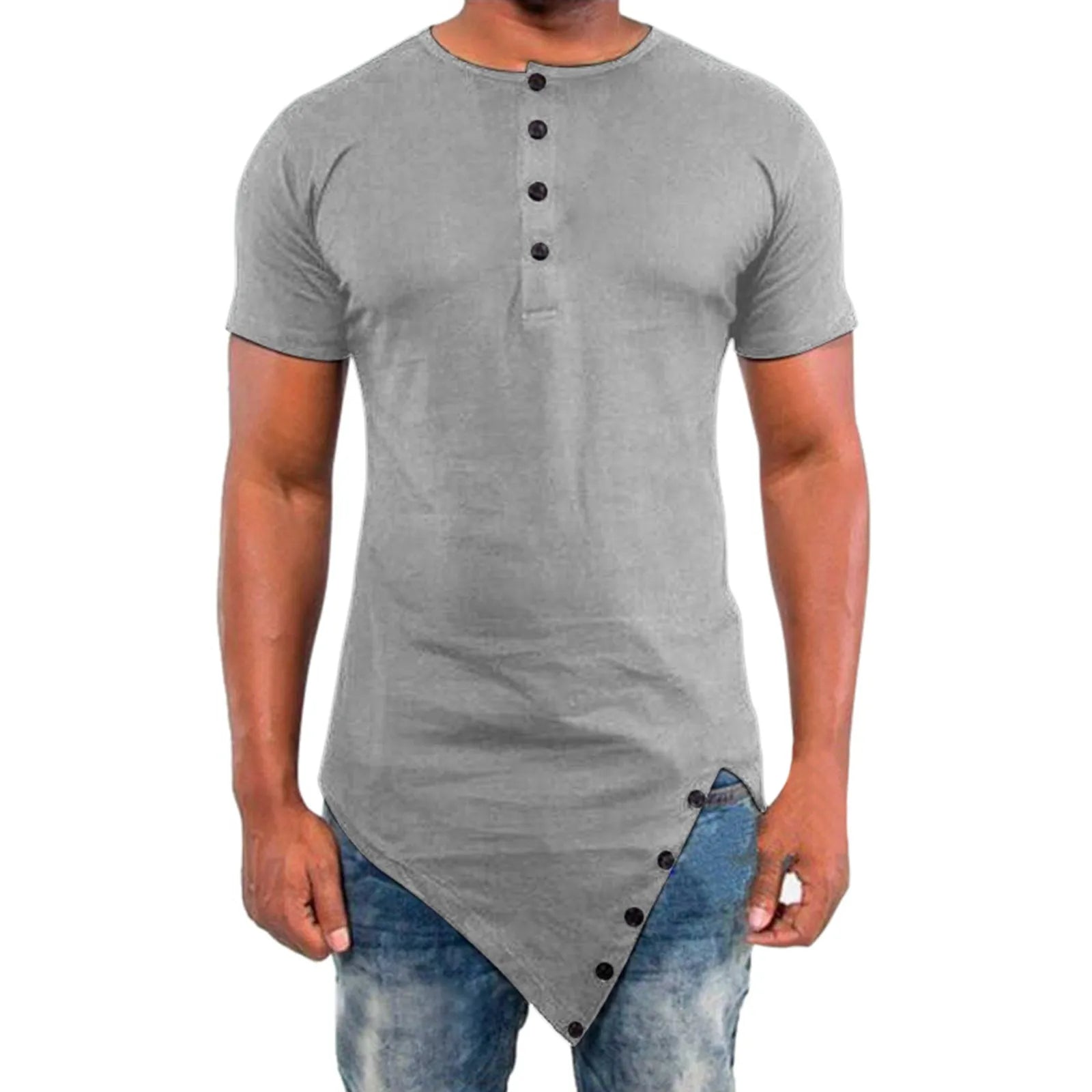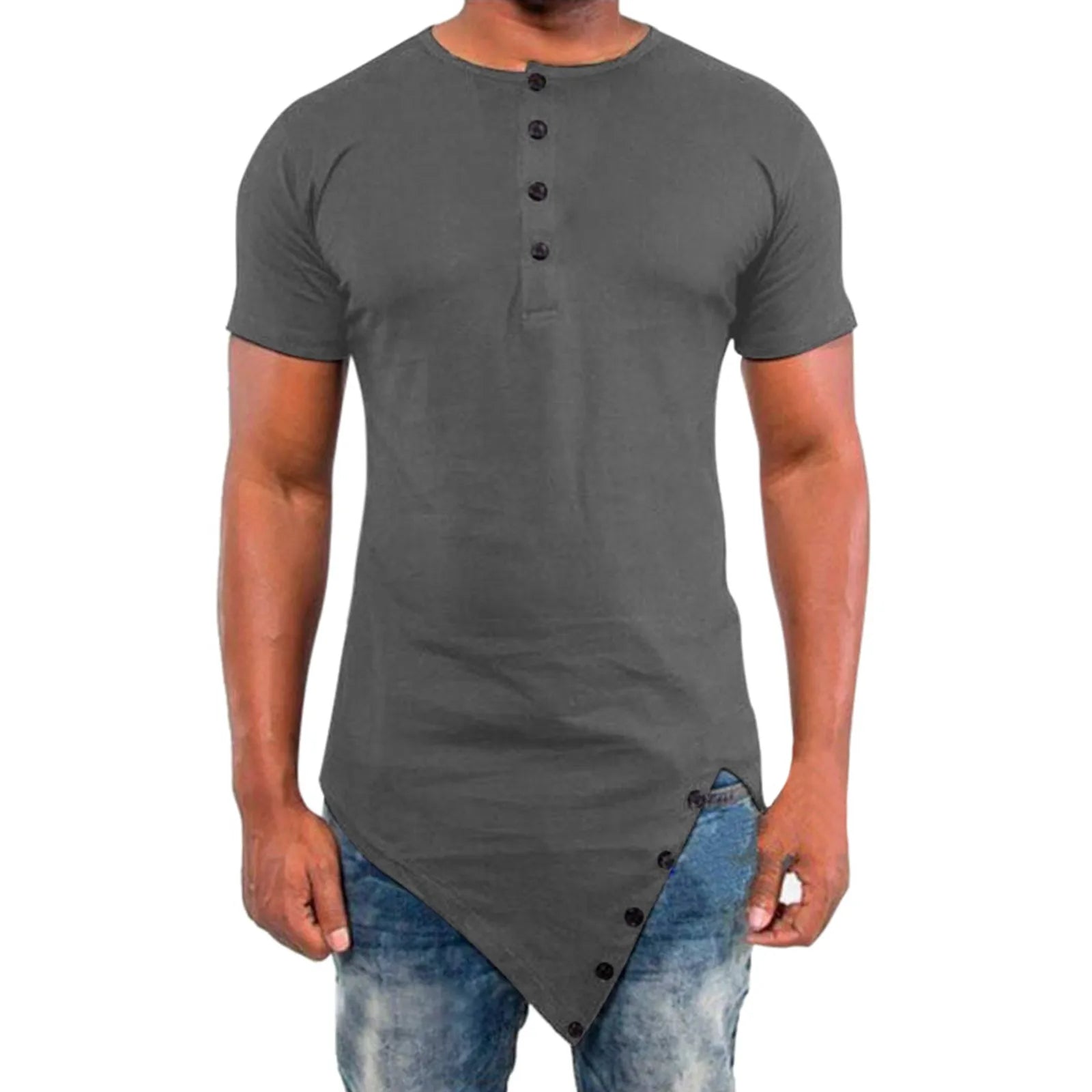 WIAOFELLAS - Men's Summer Fashion Irregular T-Shirt Short Sleeve Solid Hip Hop Pull On Tshirt Male Streetwear Henry Collar Casual Tops Tees