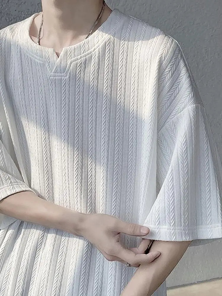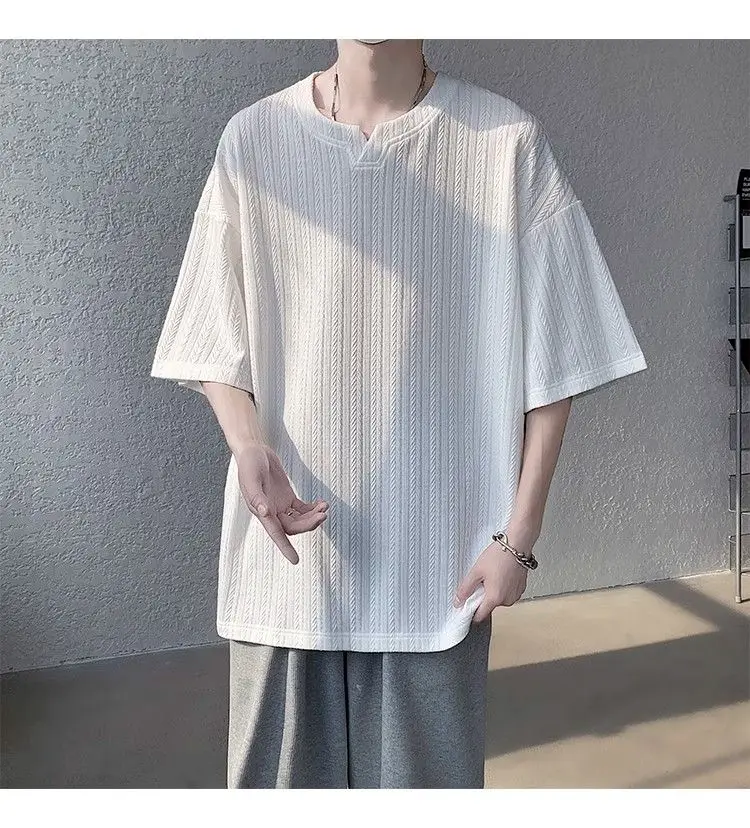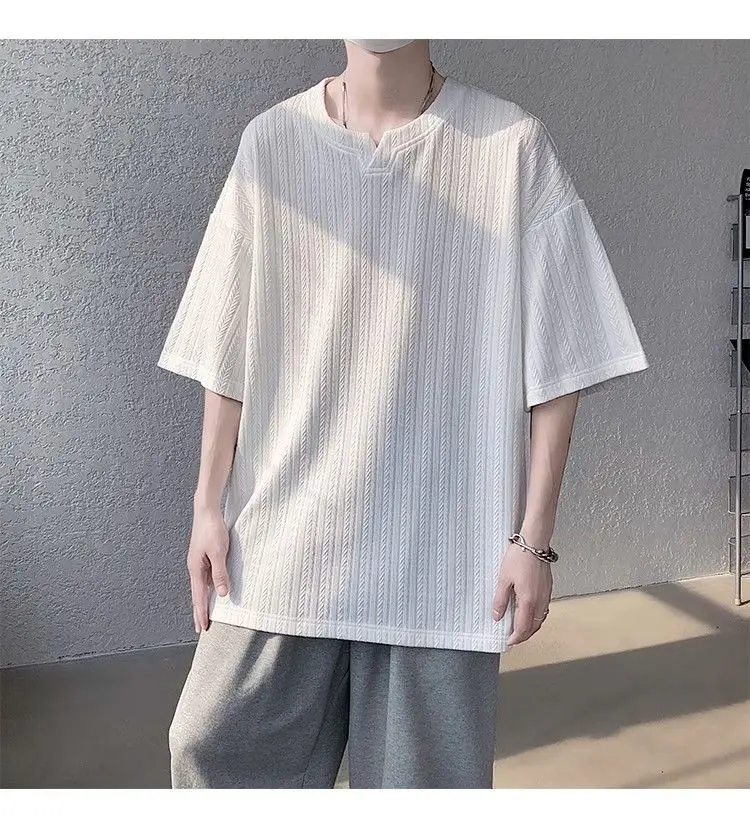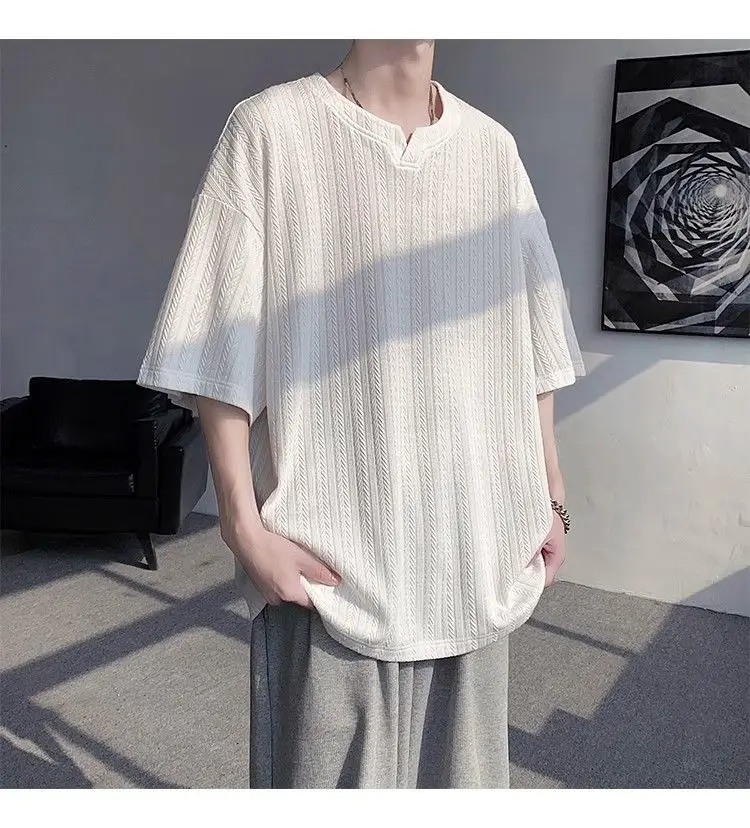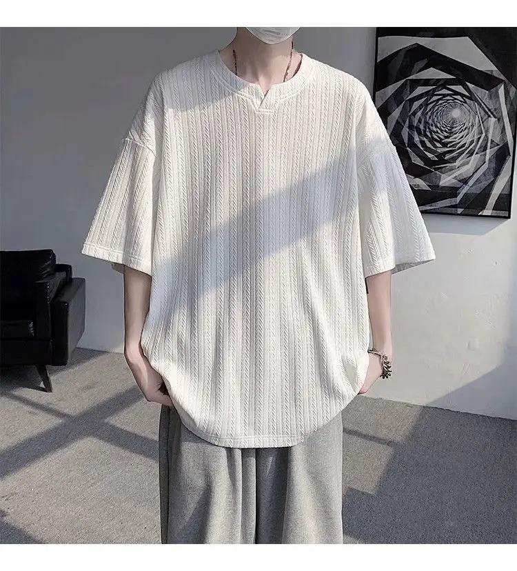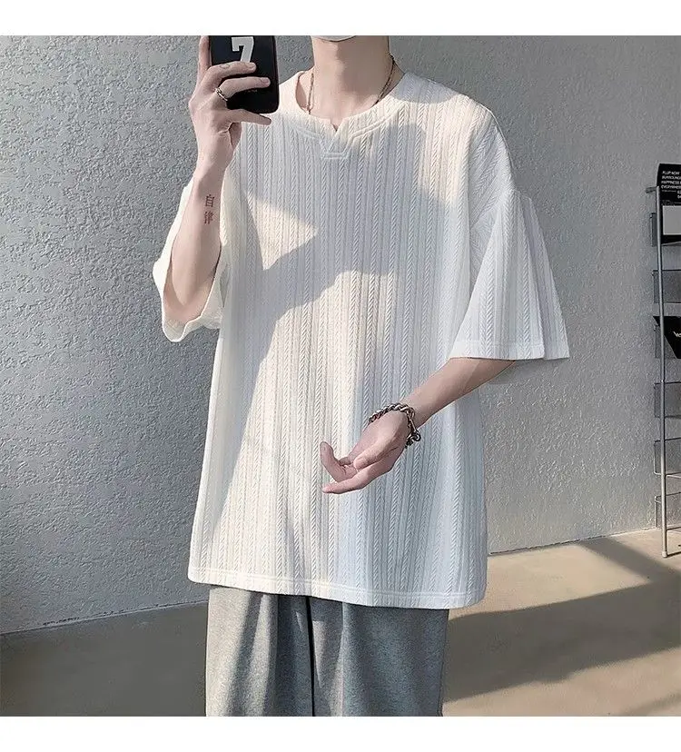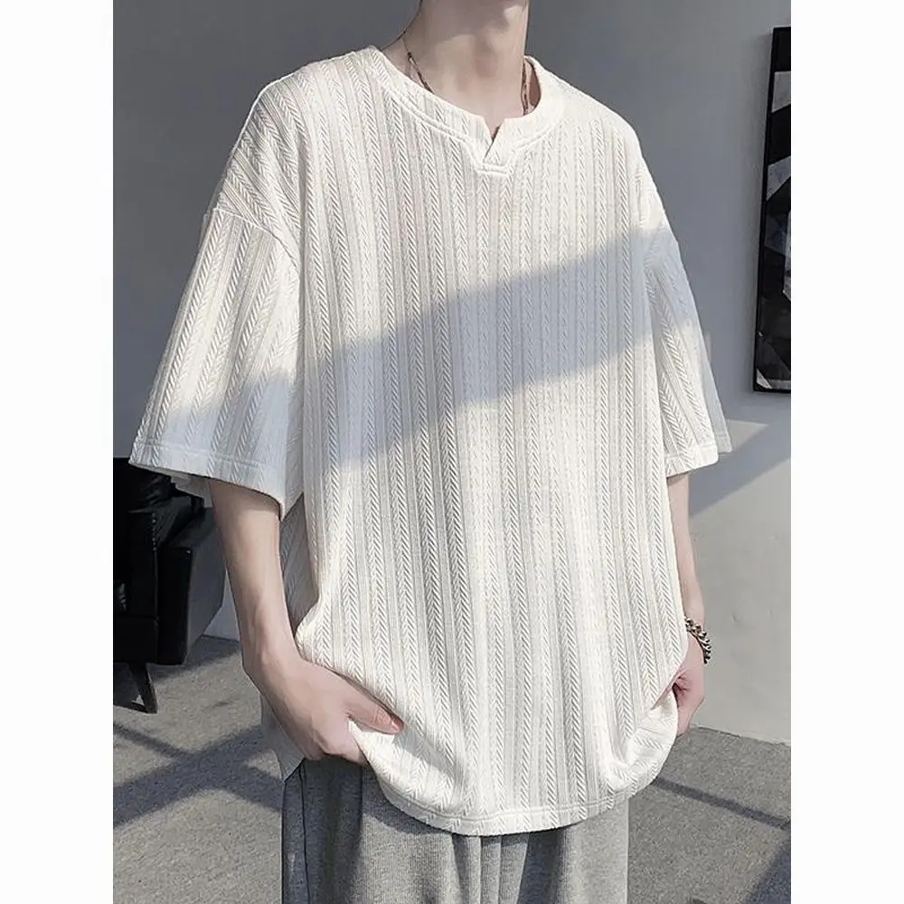 WIAOFELLAS - Mens T Shirts Summer New High-end Designed Advanced Fashionable Loose Casual Simple Niche Chic V-neck Short-sleeved T-shirt