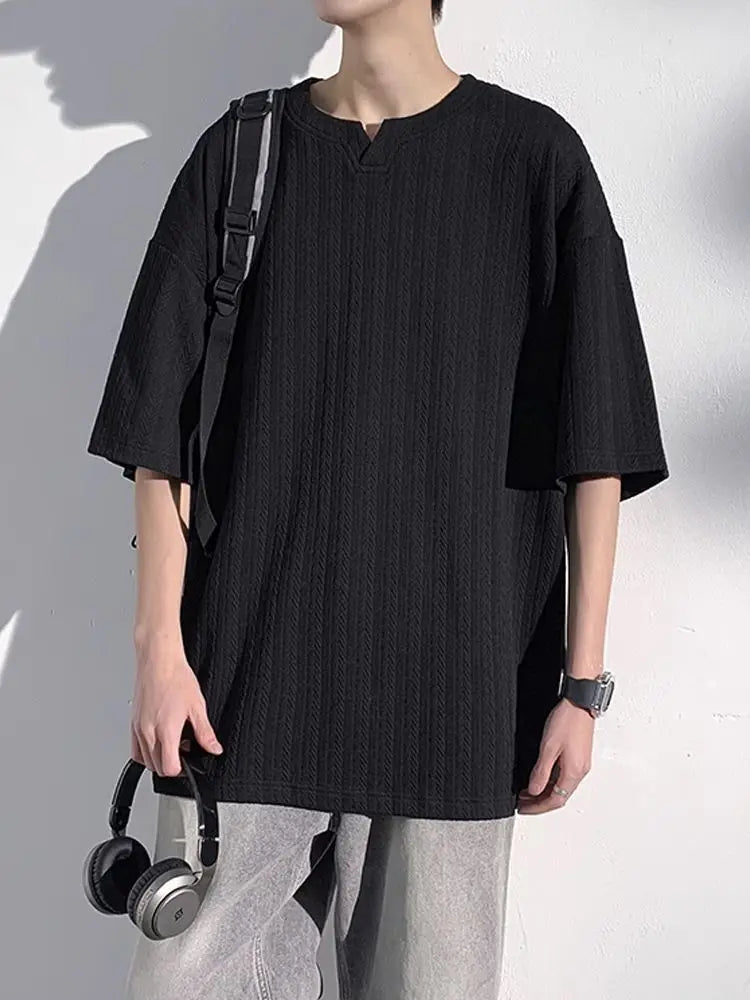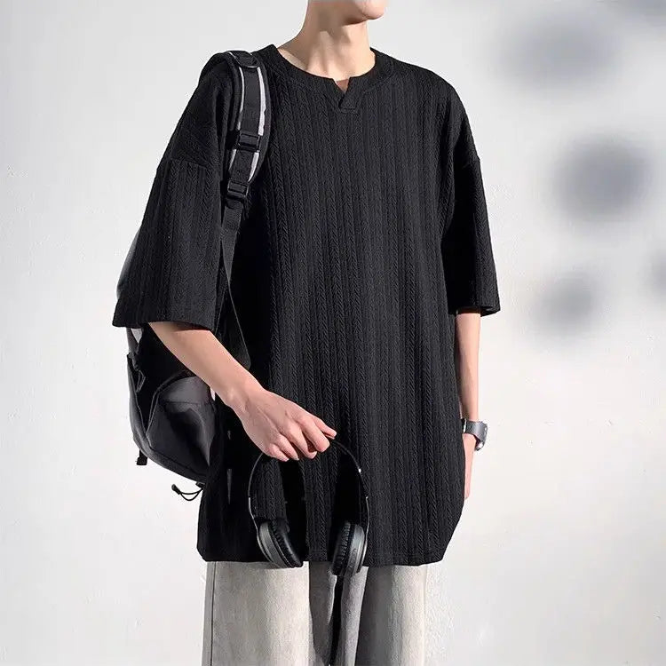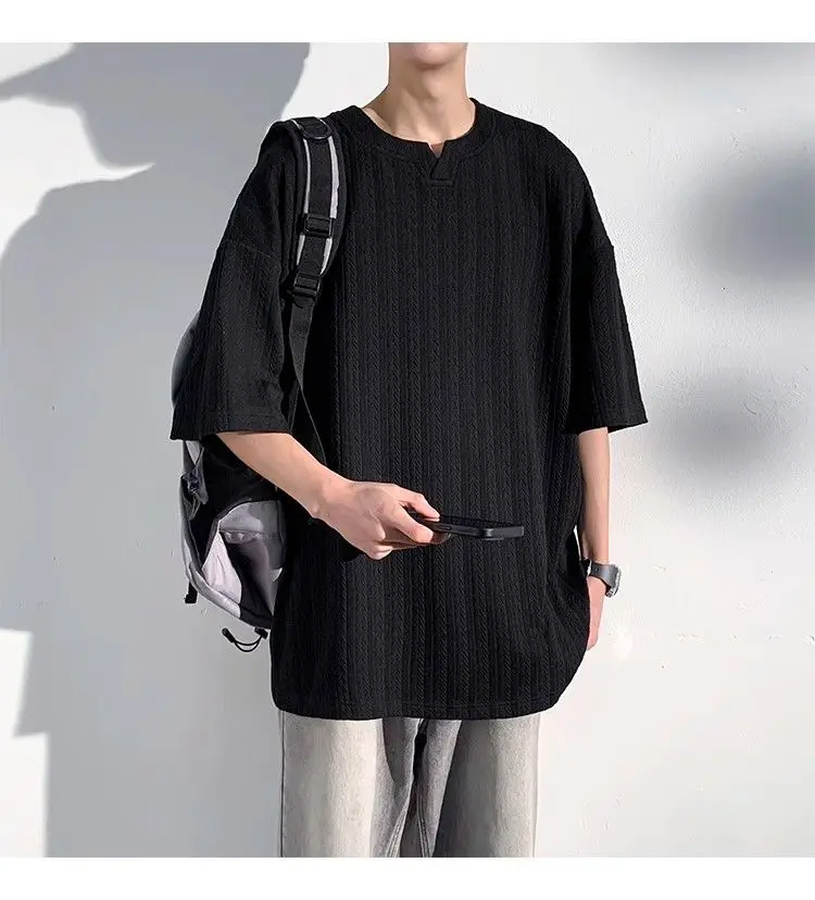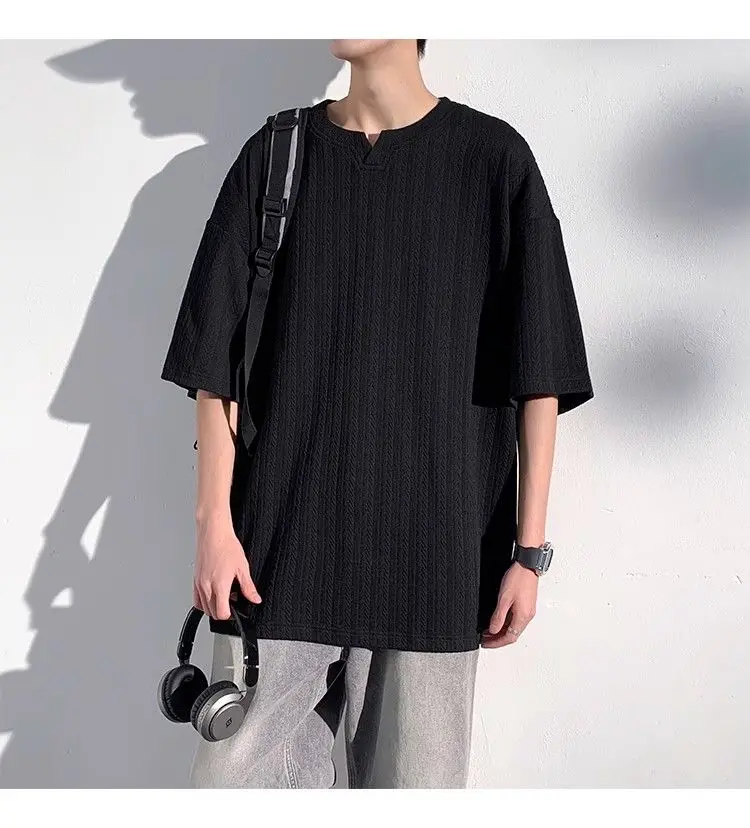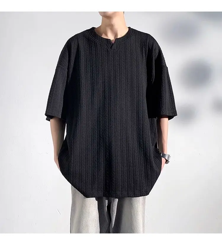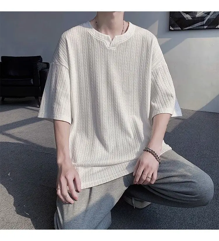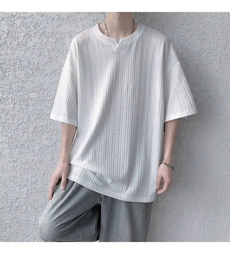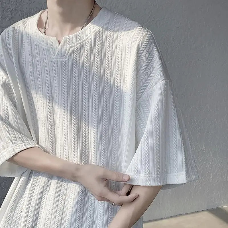 WIAOFELLAS - Mens T Shirts Summer New High-end Designed Advanced Fashionable Loose Casual Simple Niche Chic V-neck Short-sleeved T-shirt