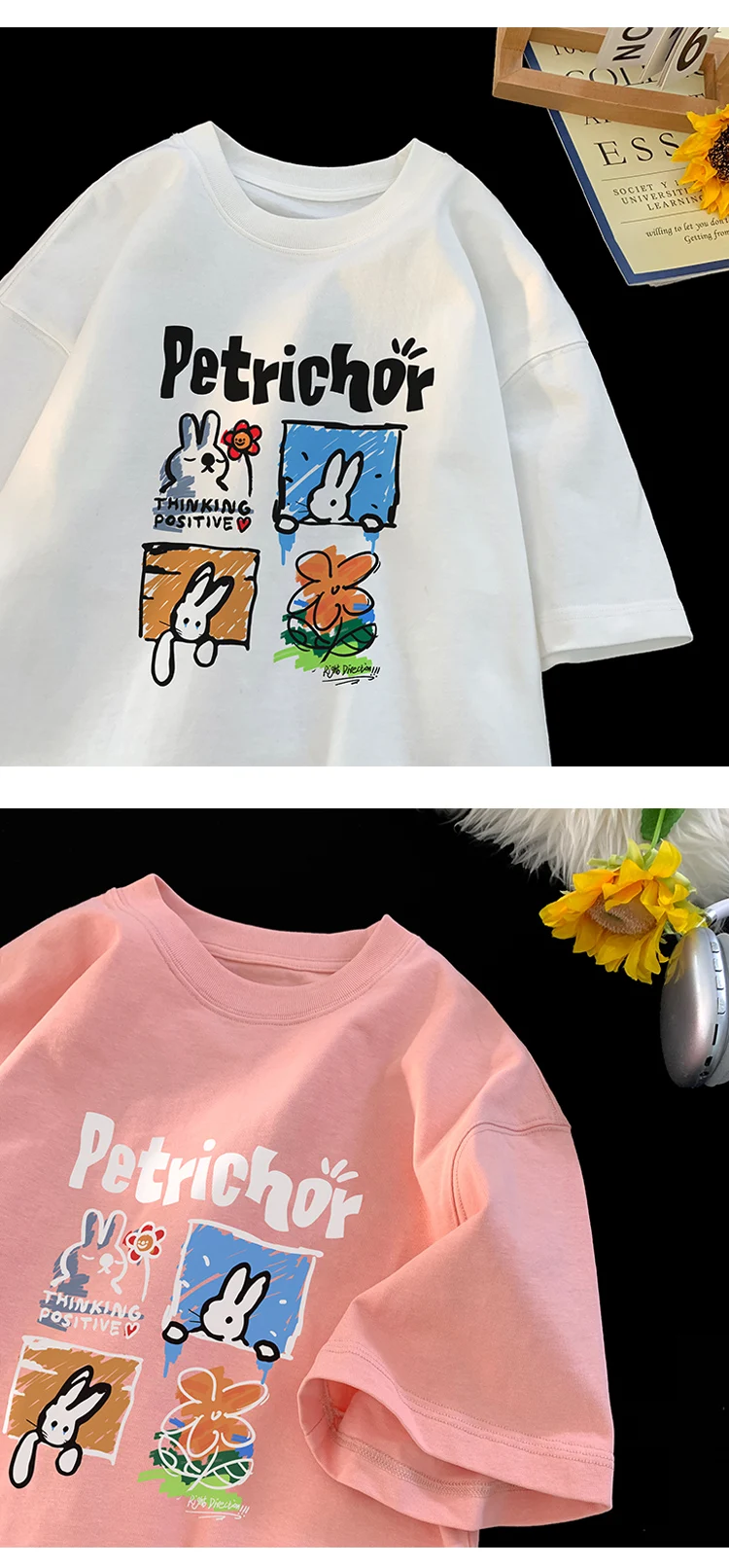 WIAOFELLAS  -  New Cute Cartoon T-shirt Rabbit Pattern Tops Unisex Round Neck Oversized T-Shirt Y2k Summer Tees Harajuku Sort Sleeve Tshirt