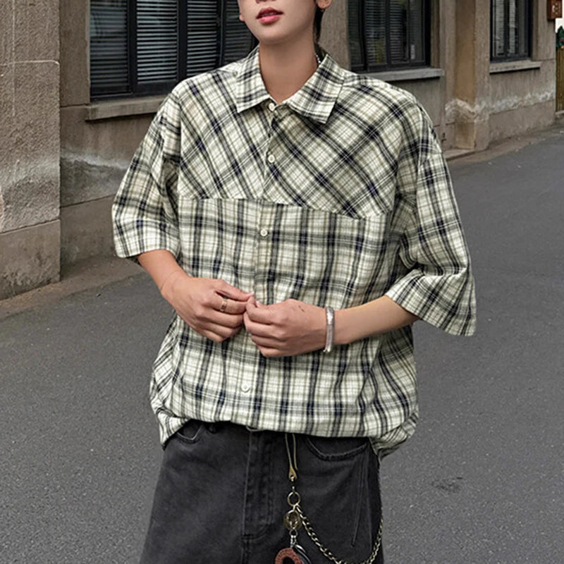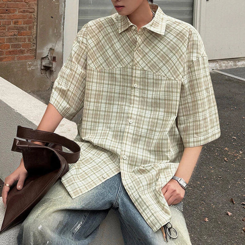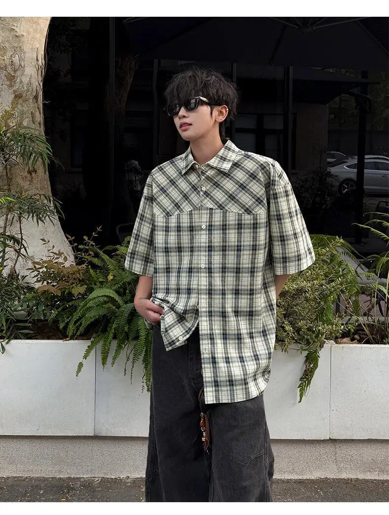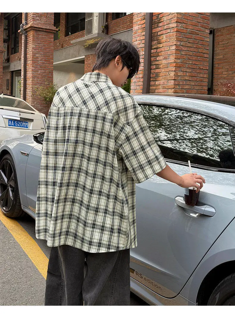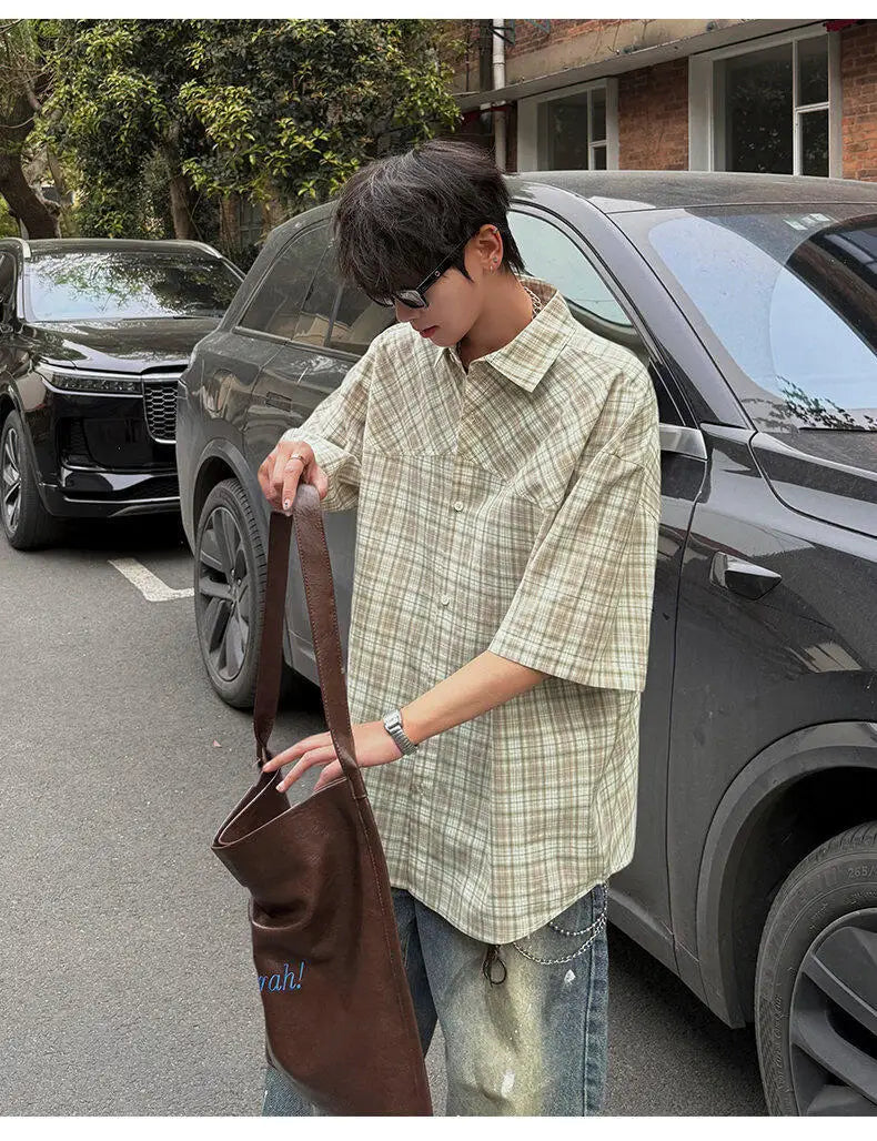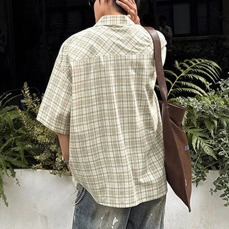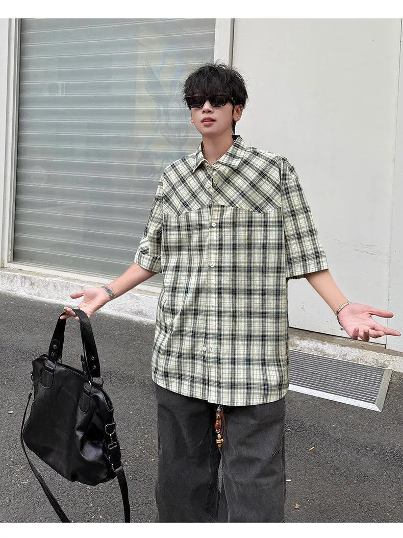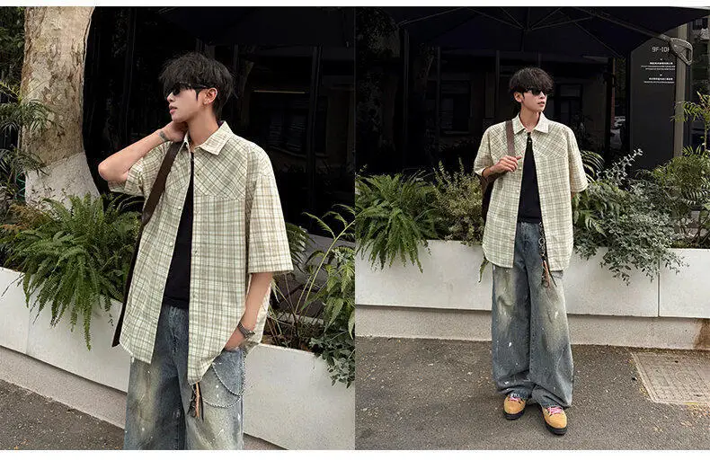 WIAOFELLAS - New Korean Style Men's Shirts Short Sleeve Plaid Design Lapel Summer Menswear Loose Single Breasted Male Tops 2025