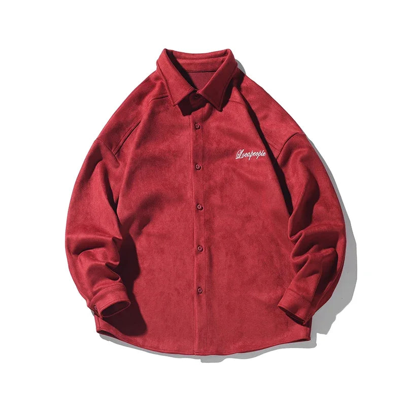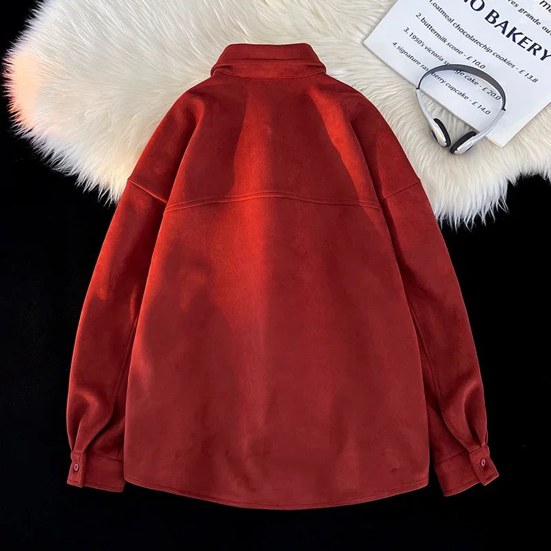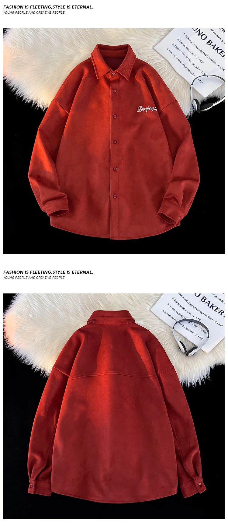 WIAOFELLAS - New Men Shirt Letter Printed Suede Long Sleeve Turn Down Collar Shirts Korean Streetwear Fashion Man Women Couple Coat