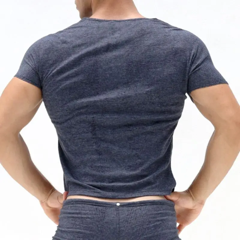 WIAOFELLAS - New Men's Tight Fit Solid Color T-Shirt Basic Stretch Cotton Tee Slim Casual Shirt Summer Breathable Top Male Fashion
