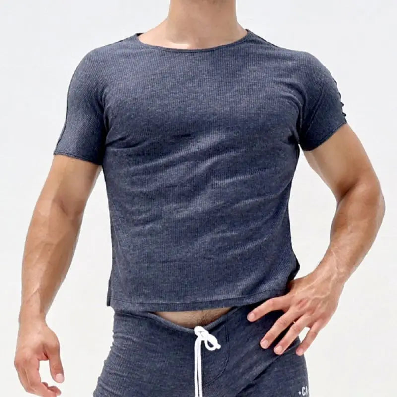 WIAOFELLAS  -  New Men's Tight Fit Solid Color T-Shirt Basic Stretch Cotton Tee Slim Casual Shirt Summer Breathable Top Male Fashion