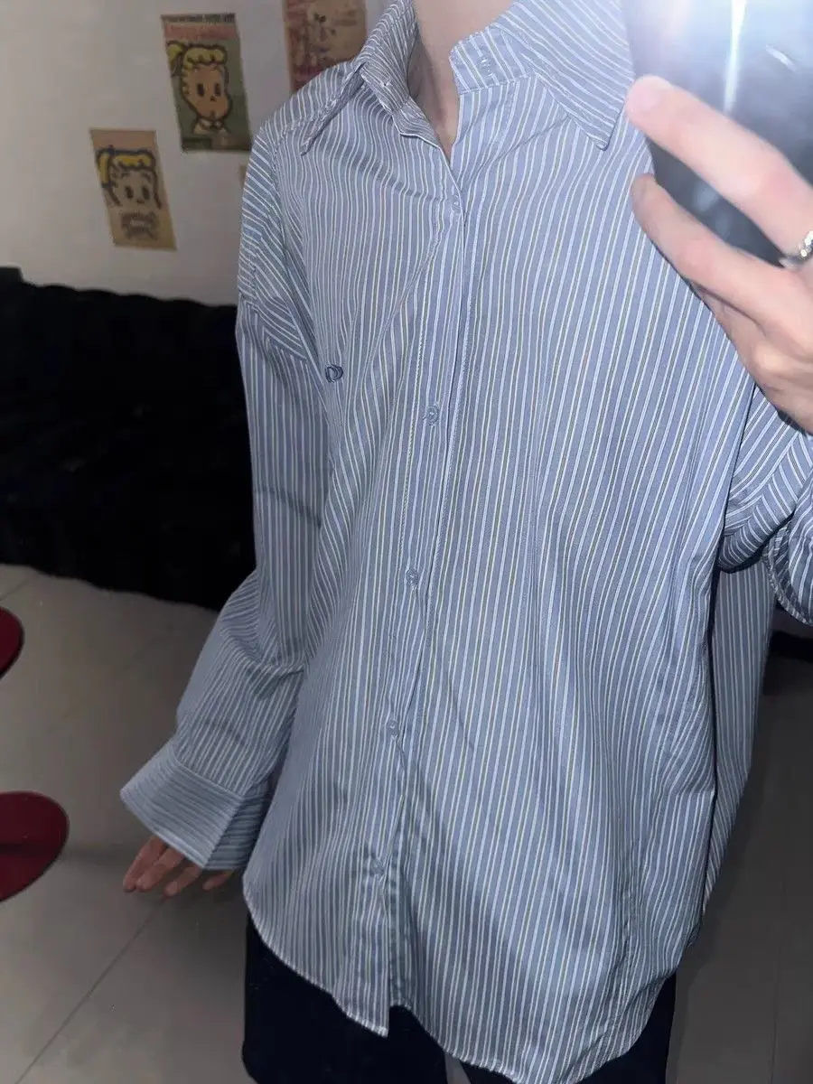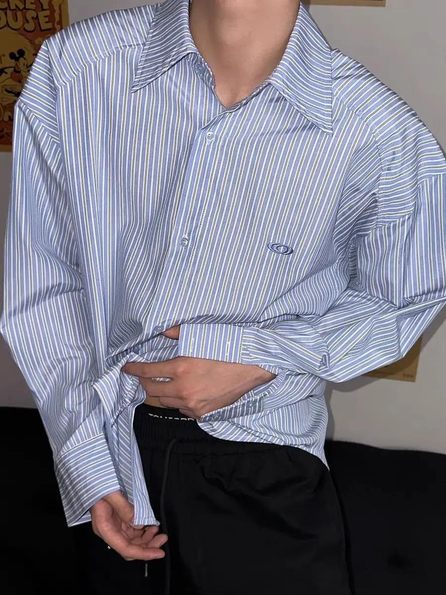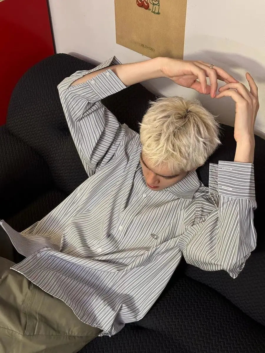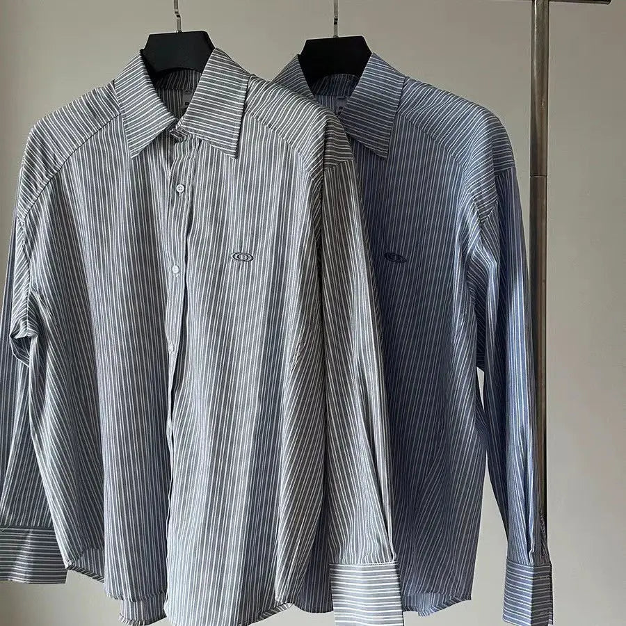 WIAOFELLAS - New Striped Versatile Long Sleeve Shirt Casual Loose Japanese Style Hong Kong Trend Coat
