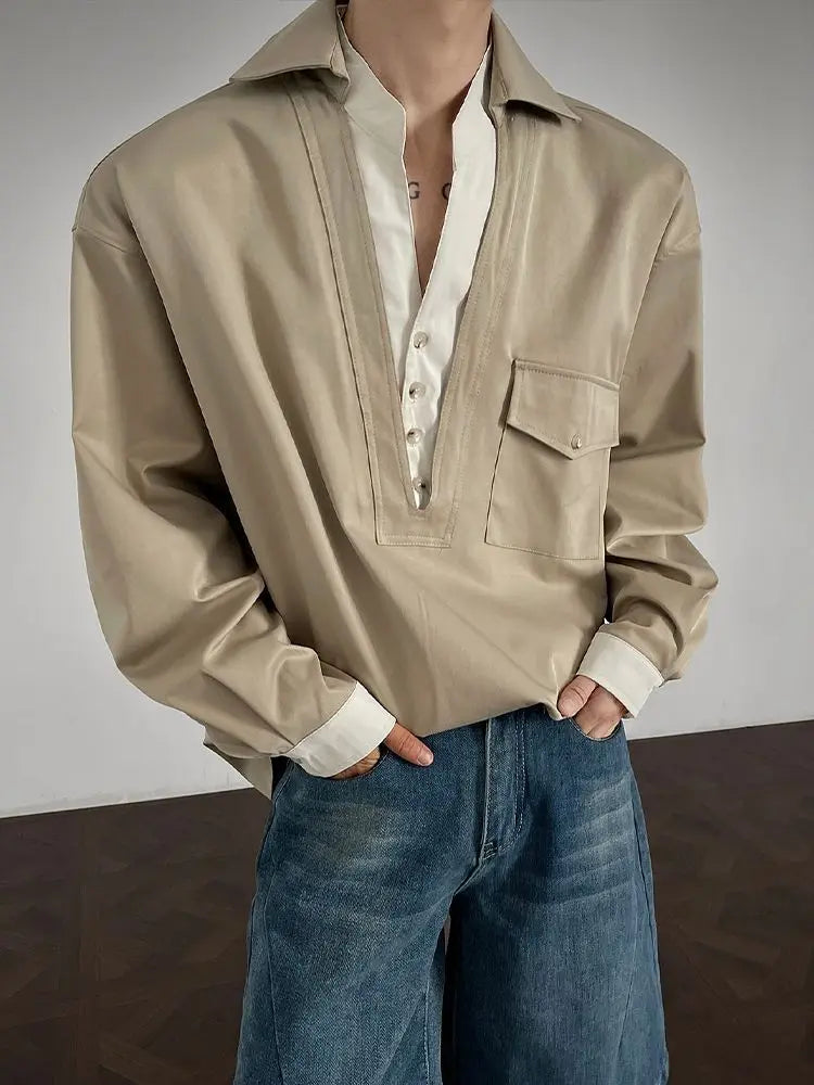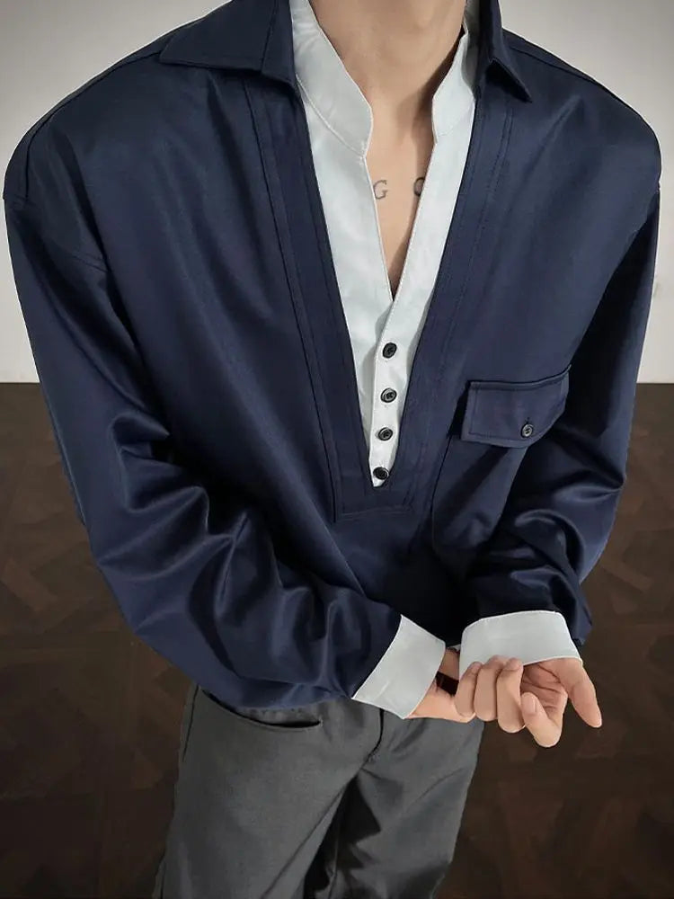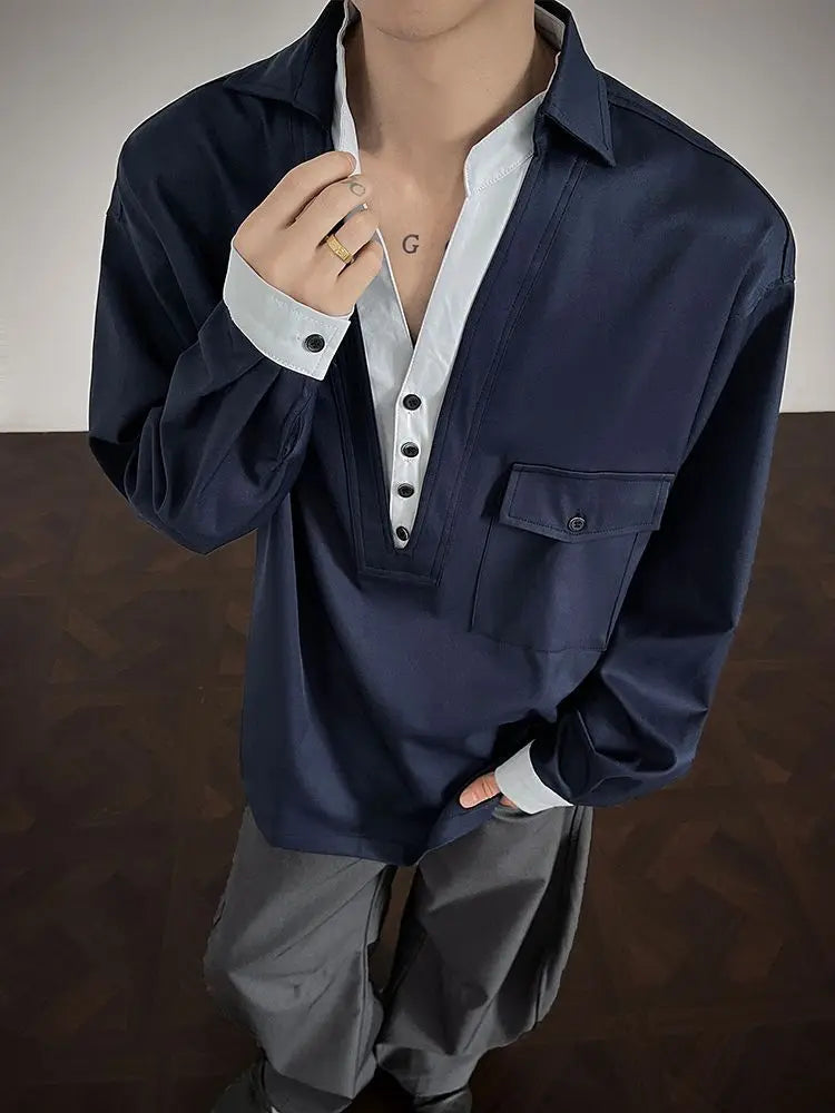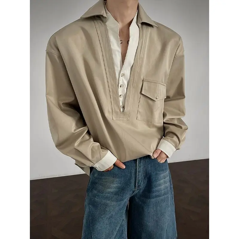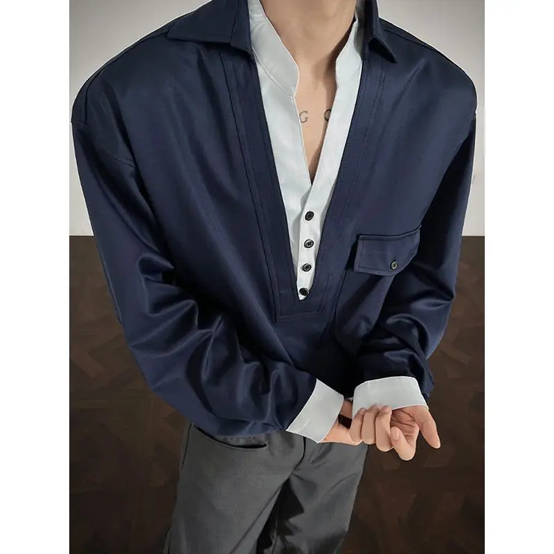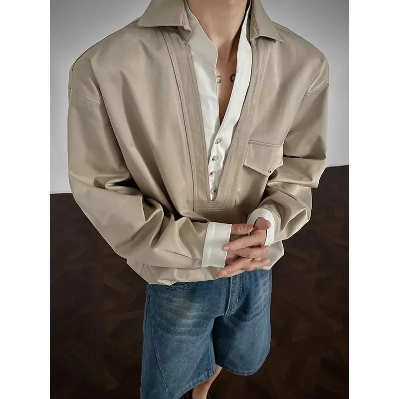 WIAOFELLAS - Newbies Old Qianfeng Fake Two-piece Double-collar Long-sleeved Shirt Men's 2025 Autumn and Winter Sexy High-end Shirt Jacket