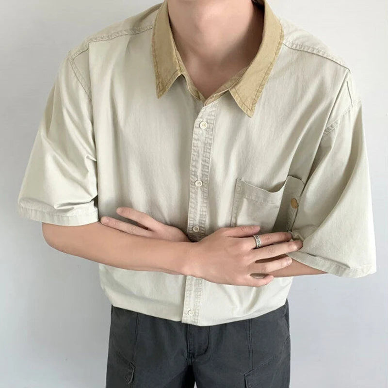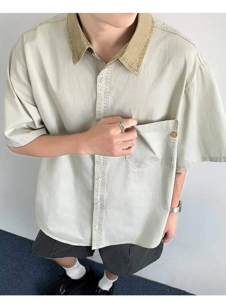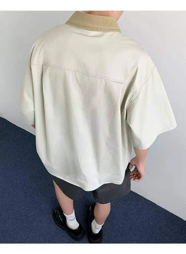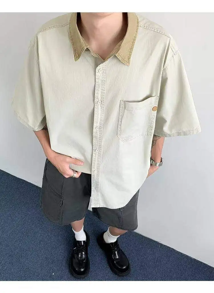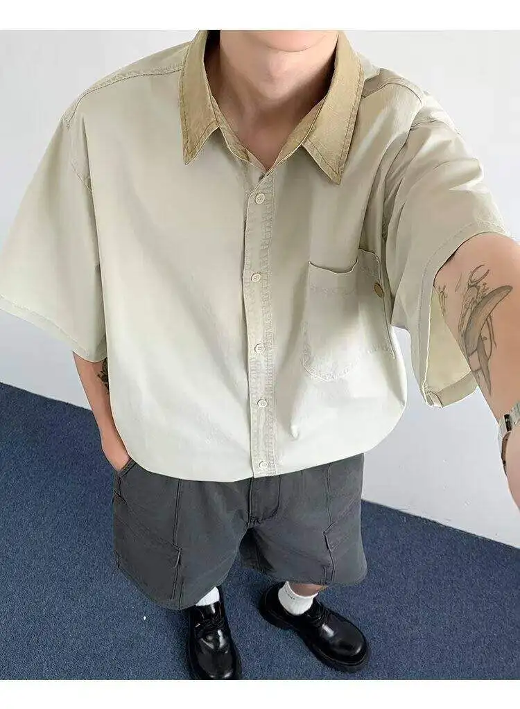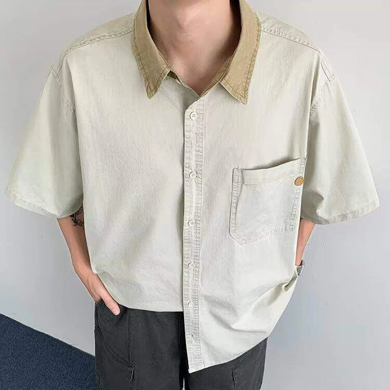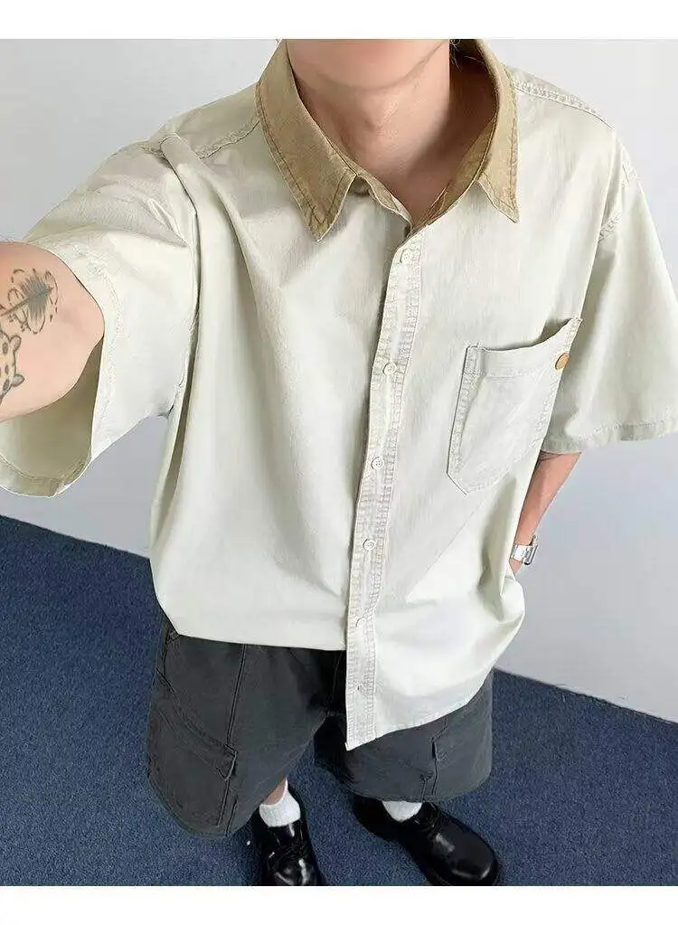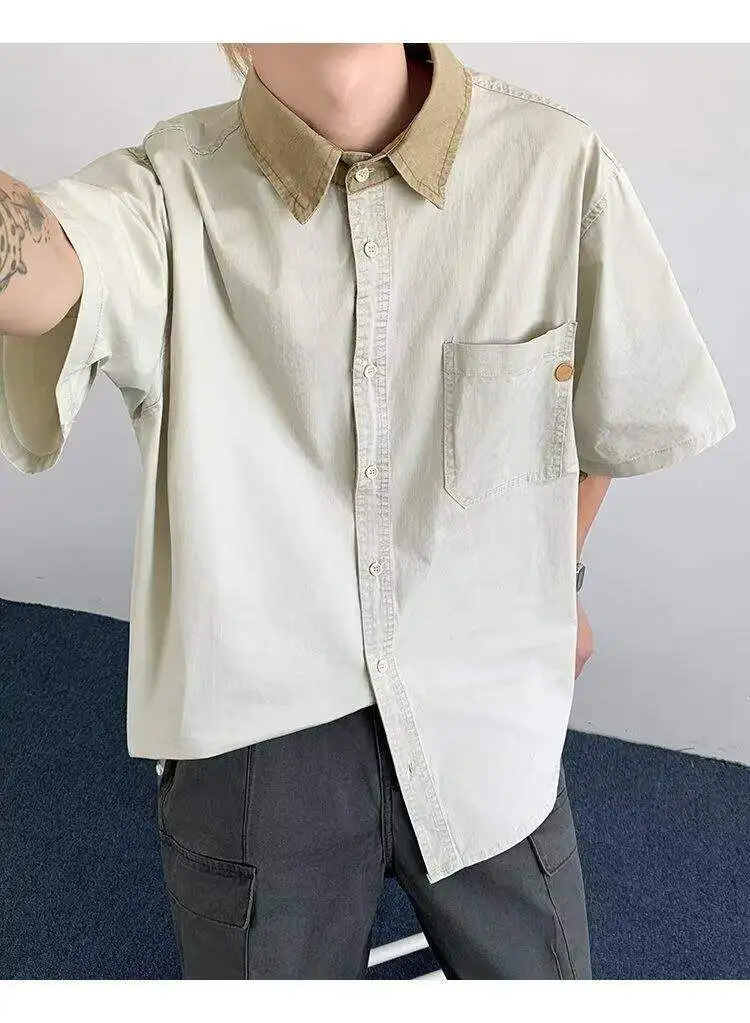 WIAOFELLAS  -  Niche Design Men's Shirts Turn-down Collar Contrast Color Pocket Short Sleeved Single Breasted Loose Male Clothing